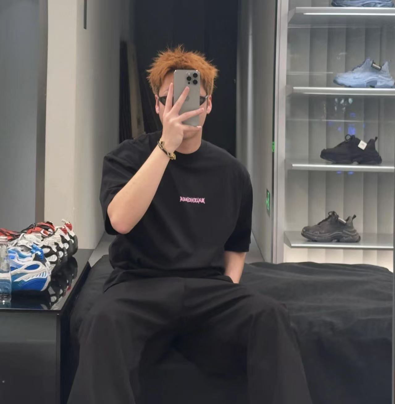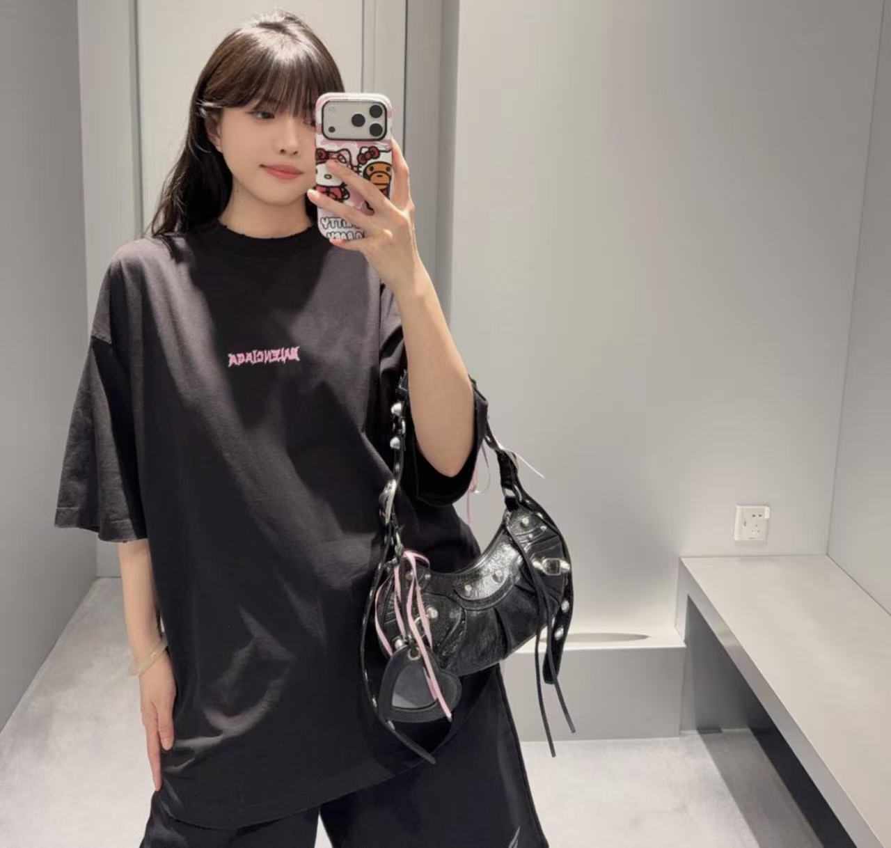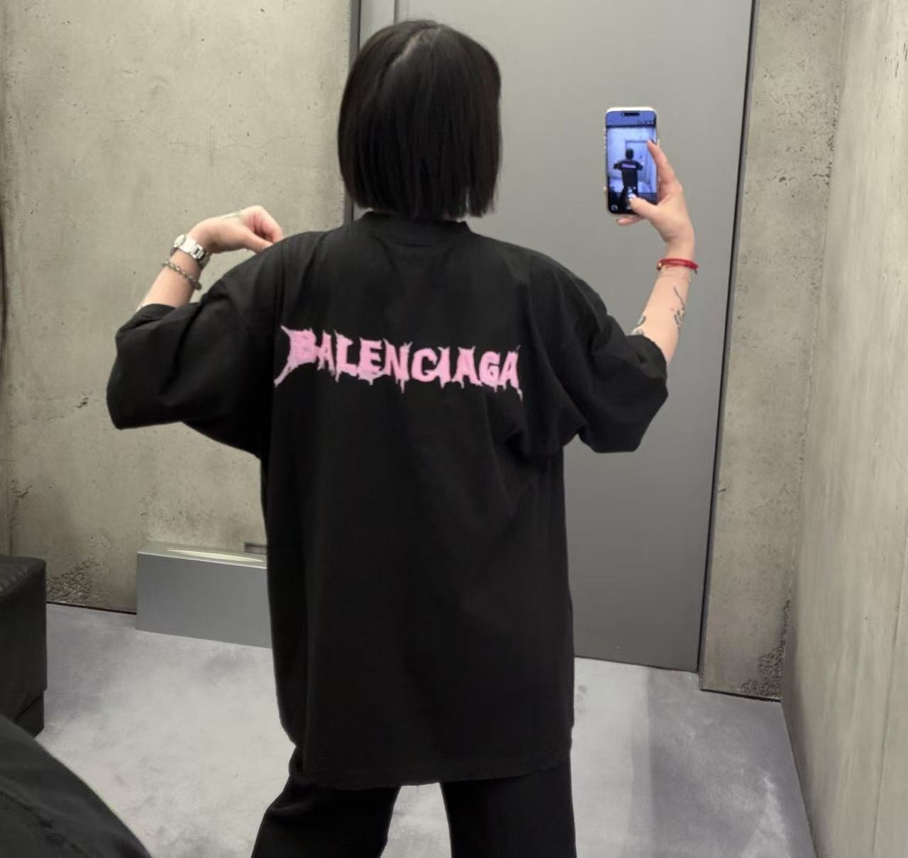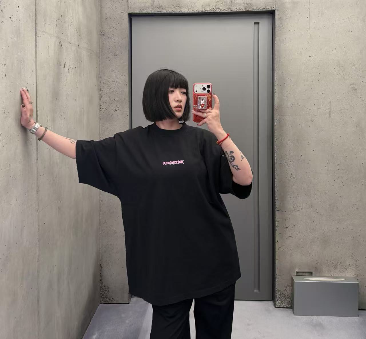 在 Demna 的美學語境中,粉紅色從不代表嬌弱,而是一種極具侵略性的街頭主張。這次分享的 2026 春夏(26SS)粉色印花刺繡圓領短袖,完美展現了品牌標誌性的「毀滅與重生」設計哲學。