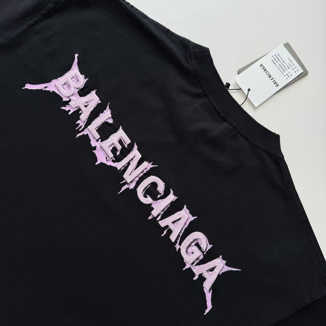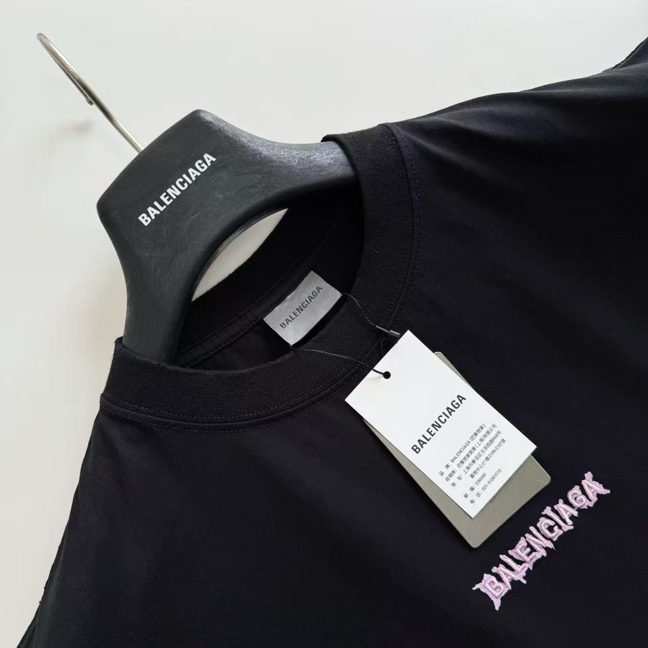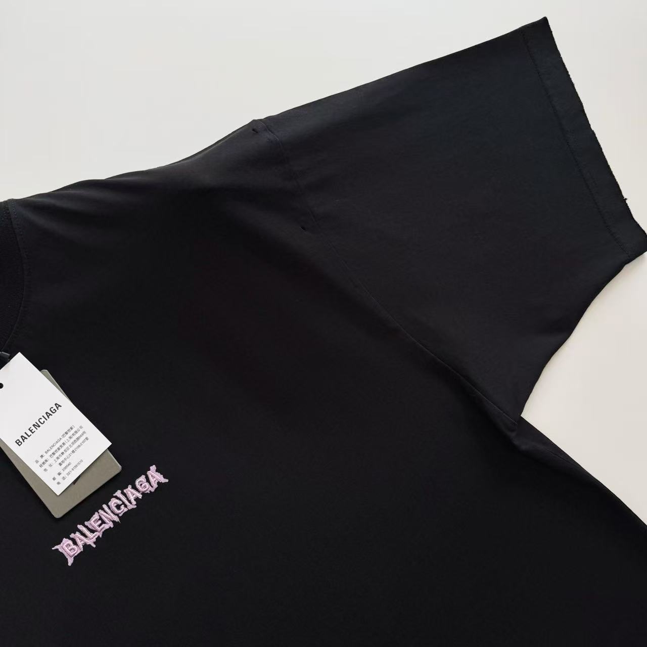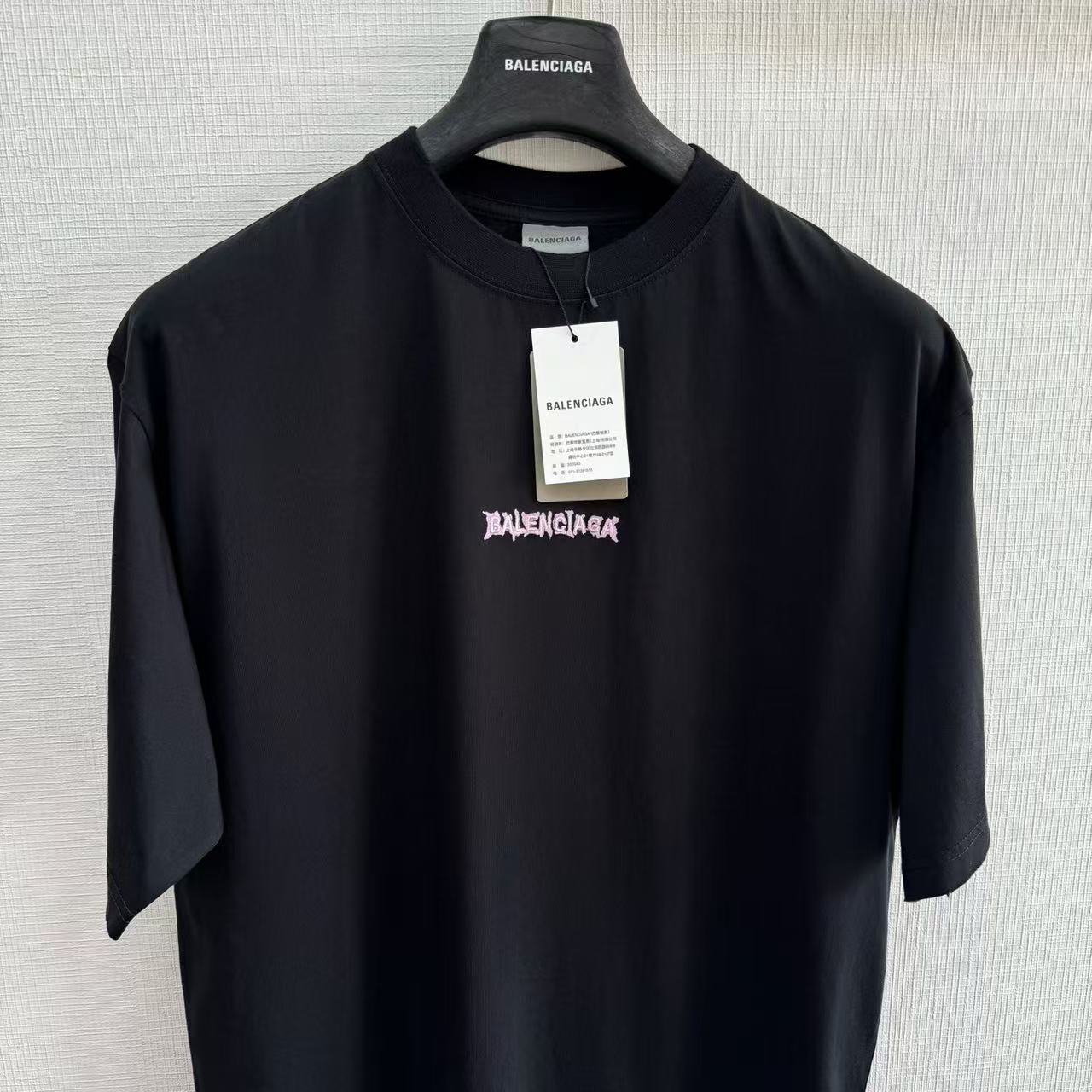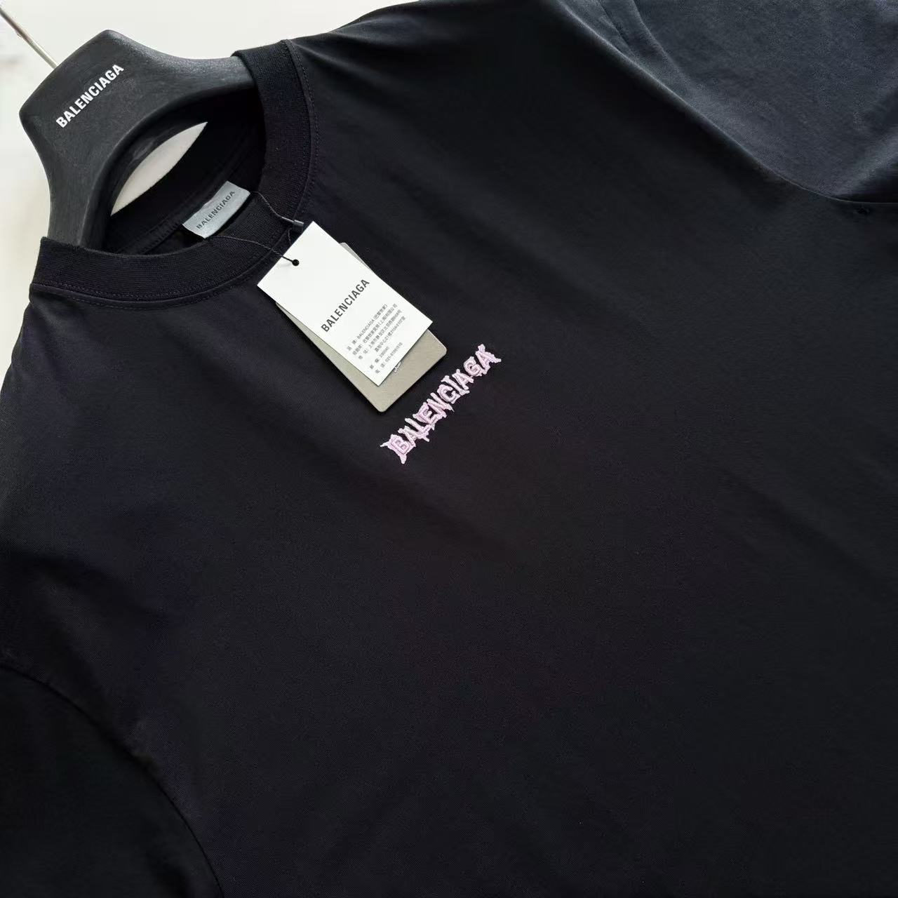 在 Demna 的美學語境中,粉紅色從不代表嬌弱,而是一種極具侵略性的街頭主張。這次分享的 2026 春夏(26SS)粉色印花刺繡圓領短袖,完美展現了品牌標誌性的「毀滅與重生」設計哲學。