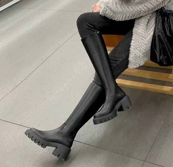 修飾腿型:它是及膝不過膝設計,靴筒立體修身剪裁,雖然是無彈力皮面,但比 5050 更寬鬆舒適,靴筒留有空隙不緊繃,但依然超級顯瘦,同時營造出帥氣中筒顯腿直的視覺效果。