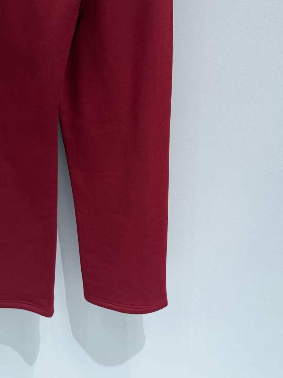寬鬆剪裁把慵懶隨性直接拉滿,經典馬銜扣刺繡點綴在衣身與褲側,細膩針腳融入新年紅韻,低調卻超有辨識度!