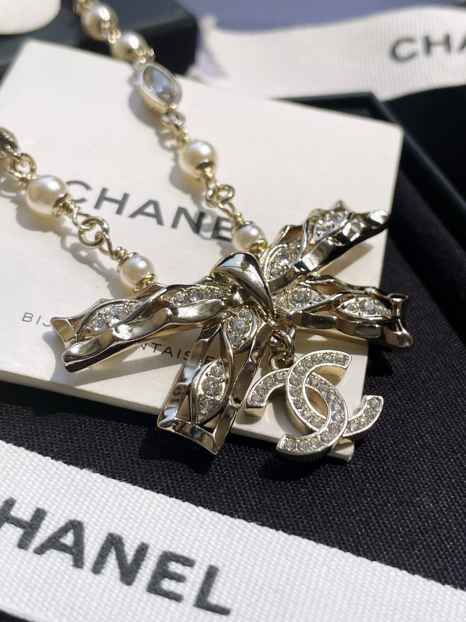 《尺寸》項鍊鏈長約34CM,另有延長鏈約7CM,蝴蝶結寬約4.5CM,雙C寬約1.5CM