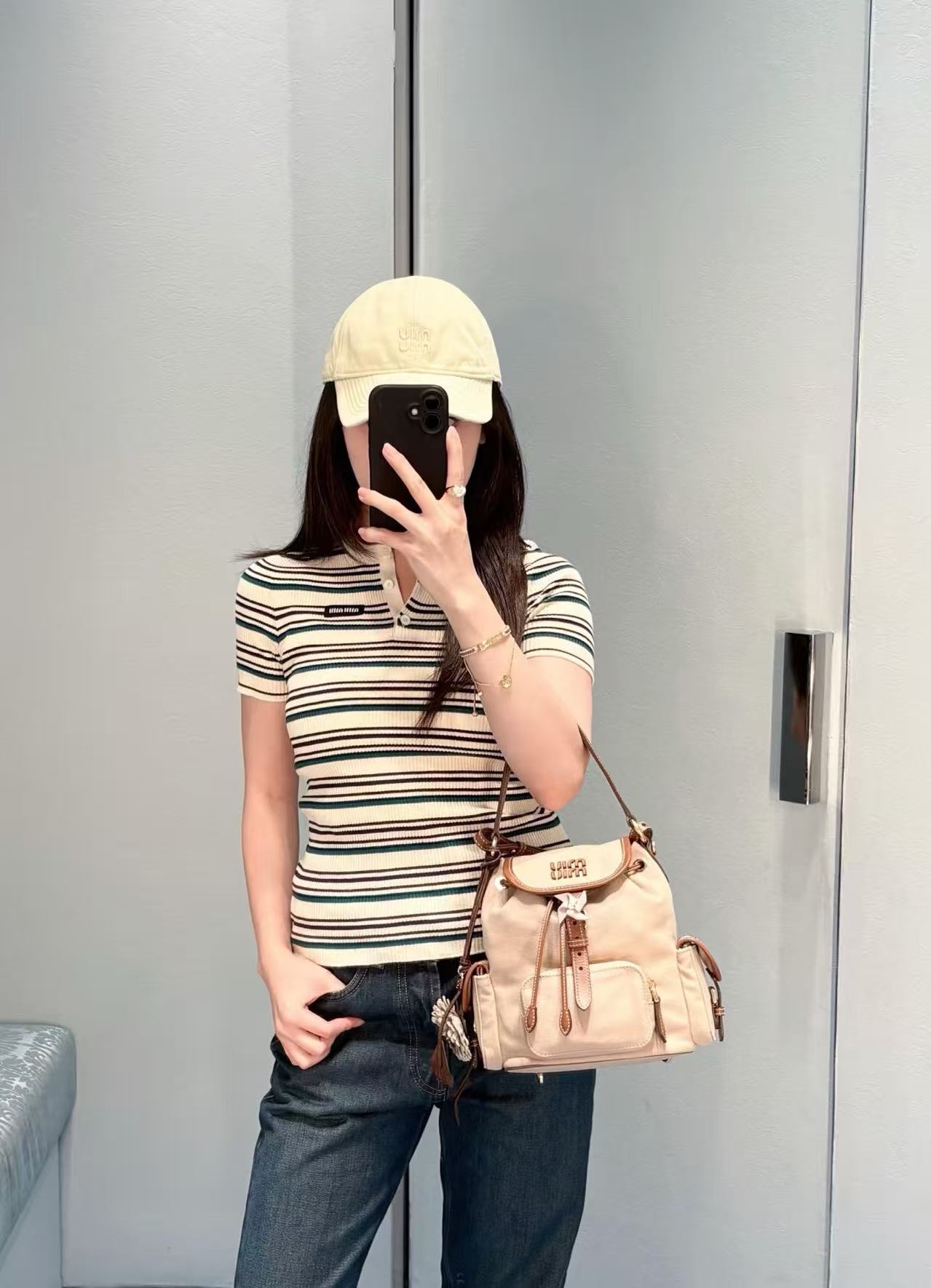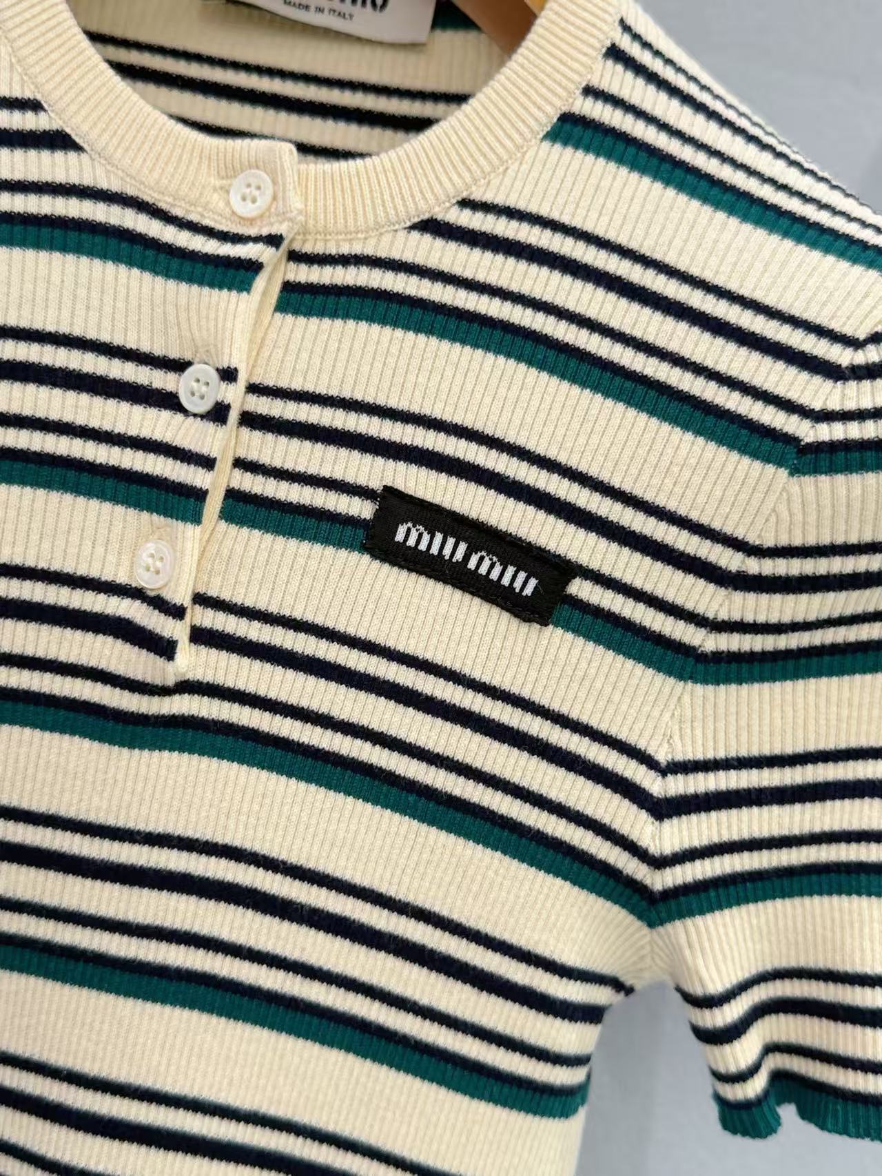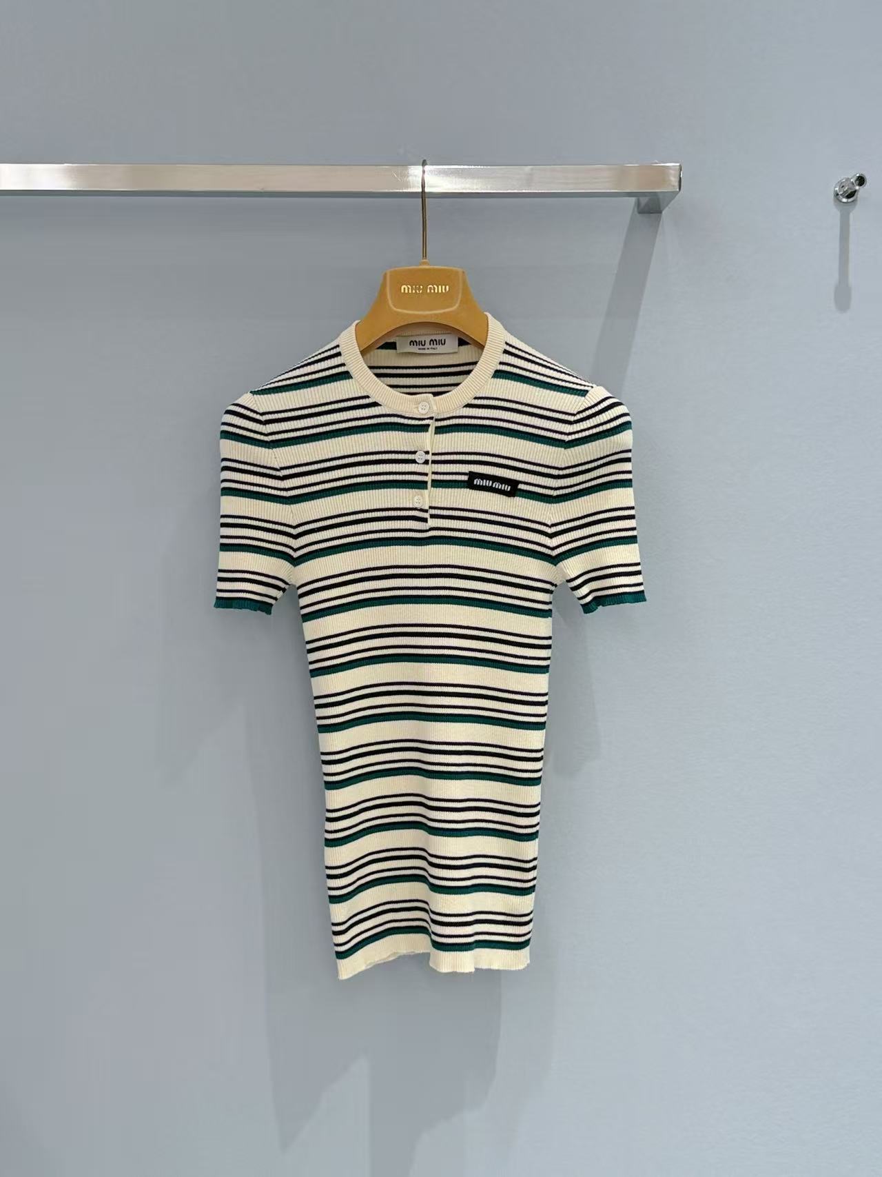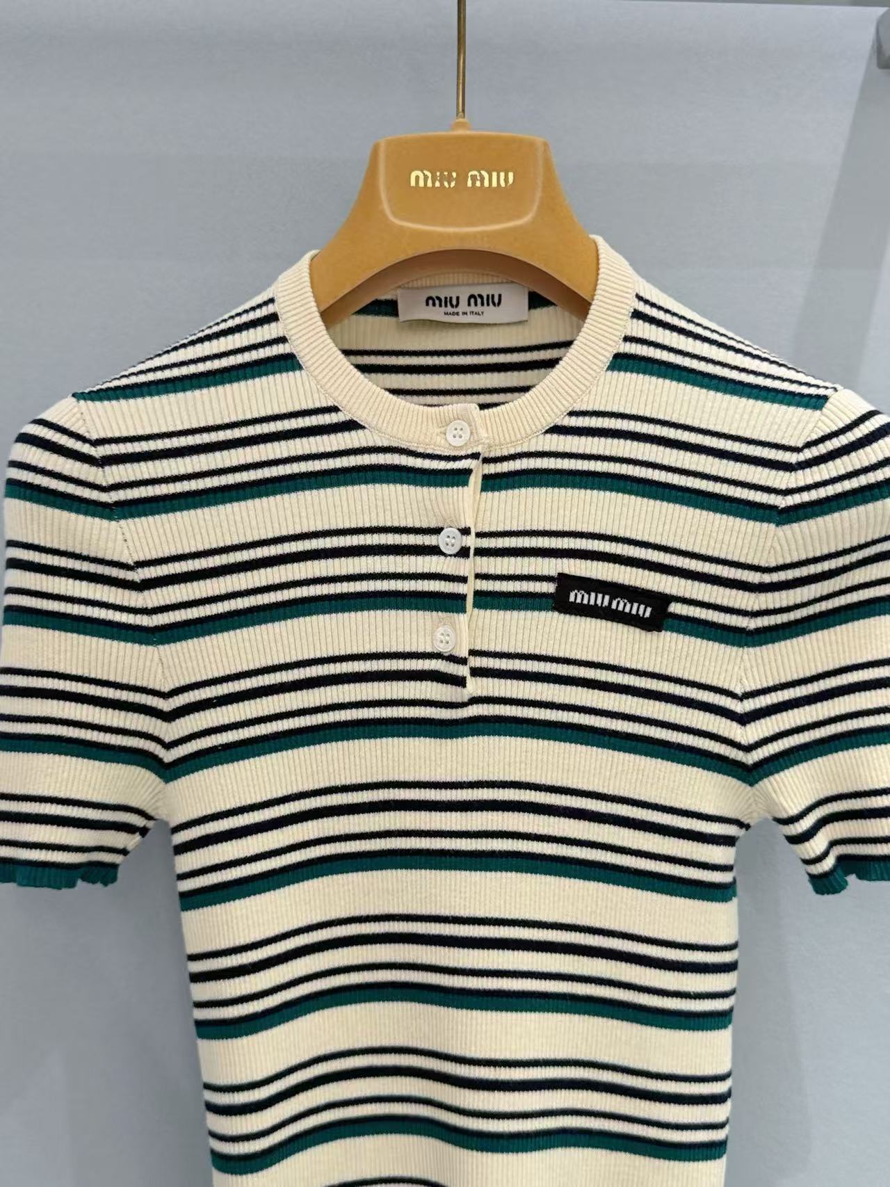2026早春  Miu家 條紋亨利領針織短袖