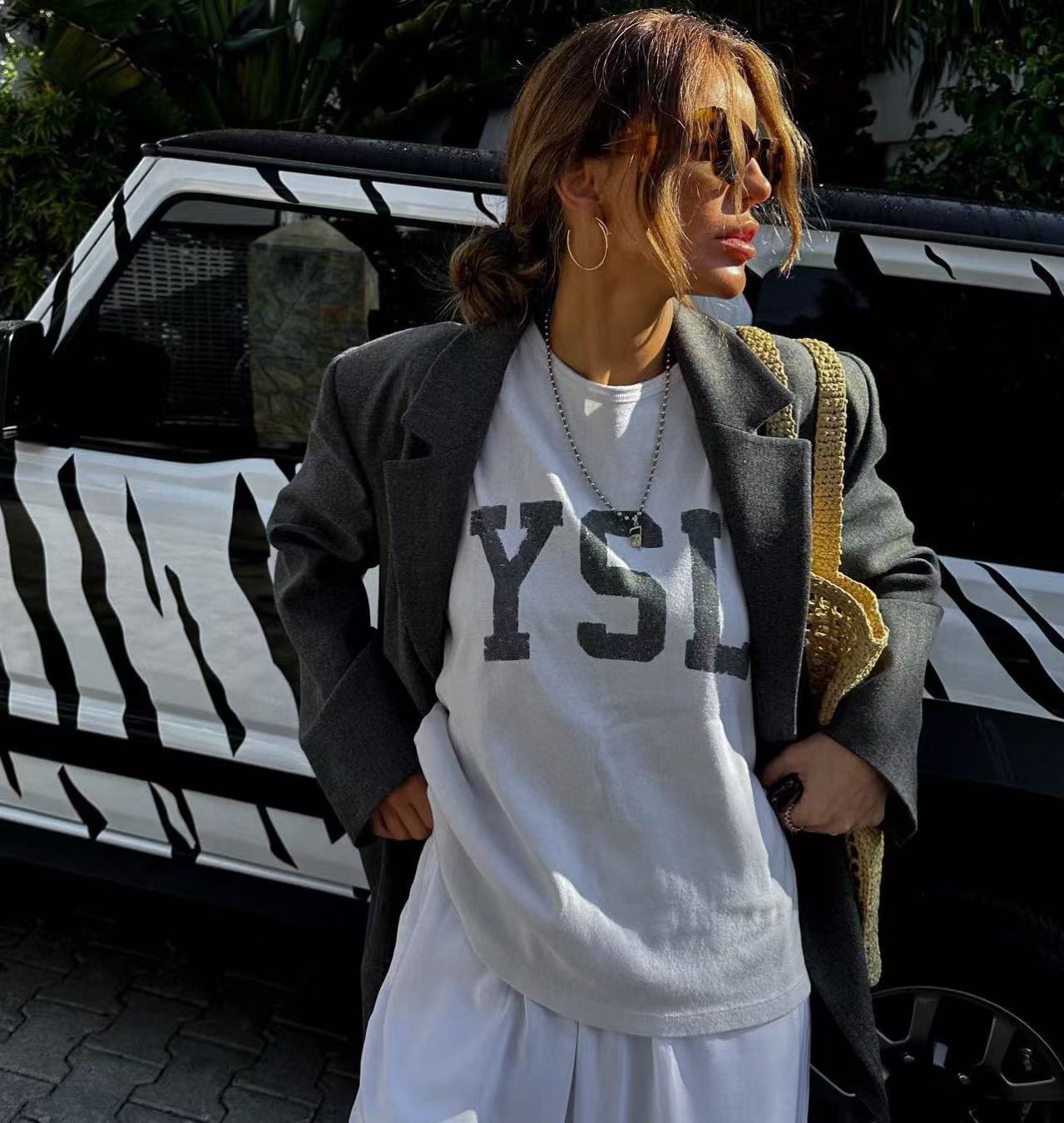 2024秋冬經典款 Y家復古裂紋字母短袖 簡約設計