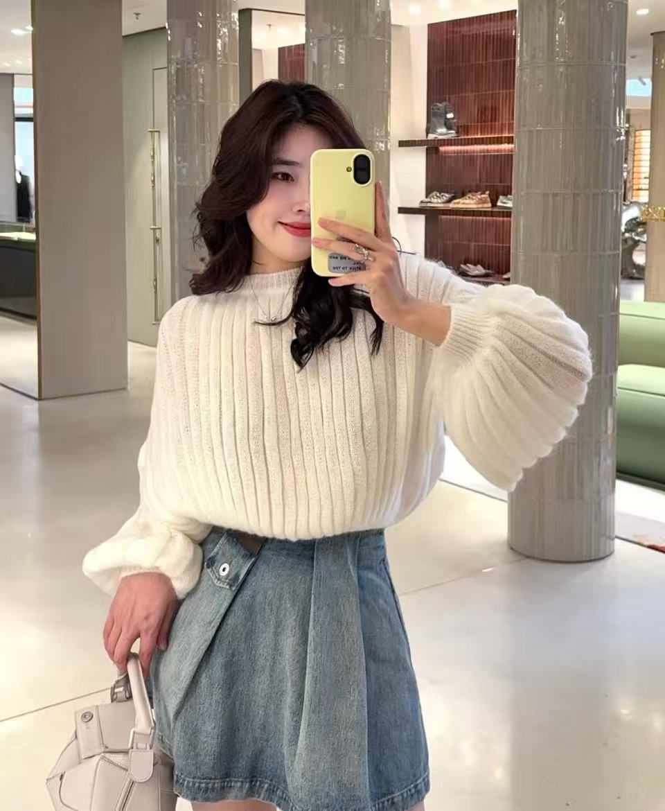 2025 秋冬 LEW家 新款奶白色燈籠袖毛衣