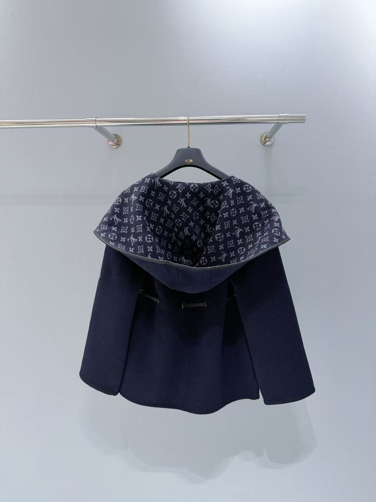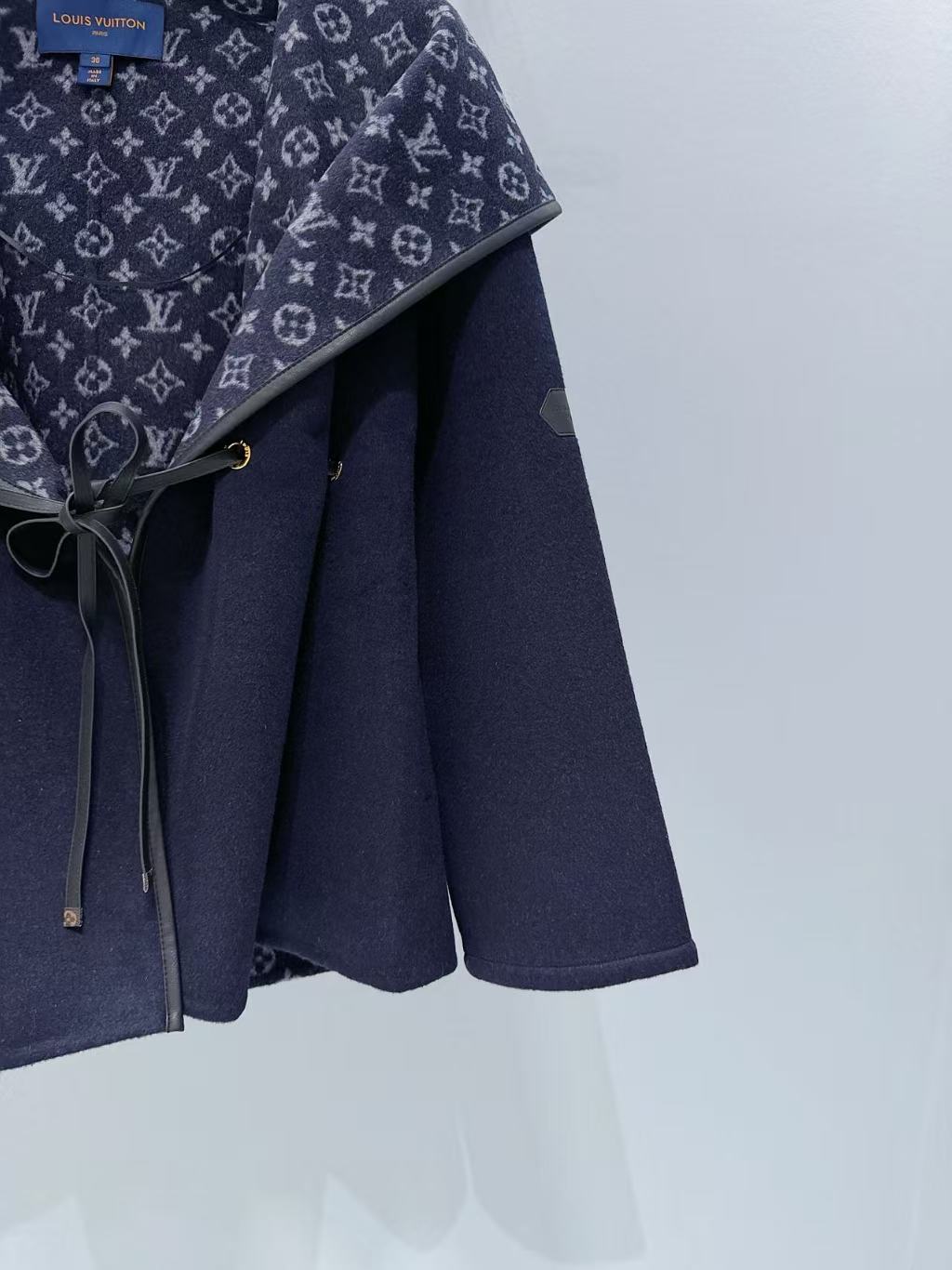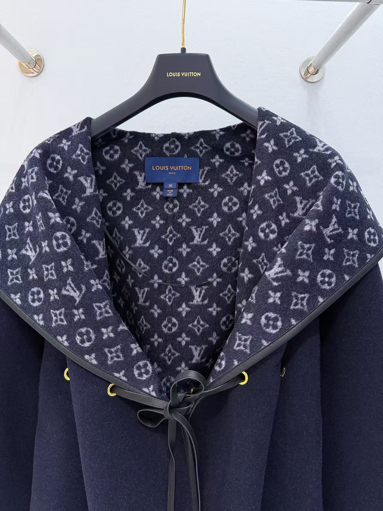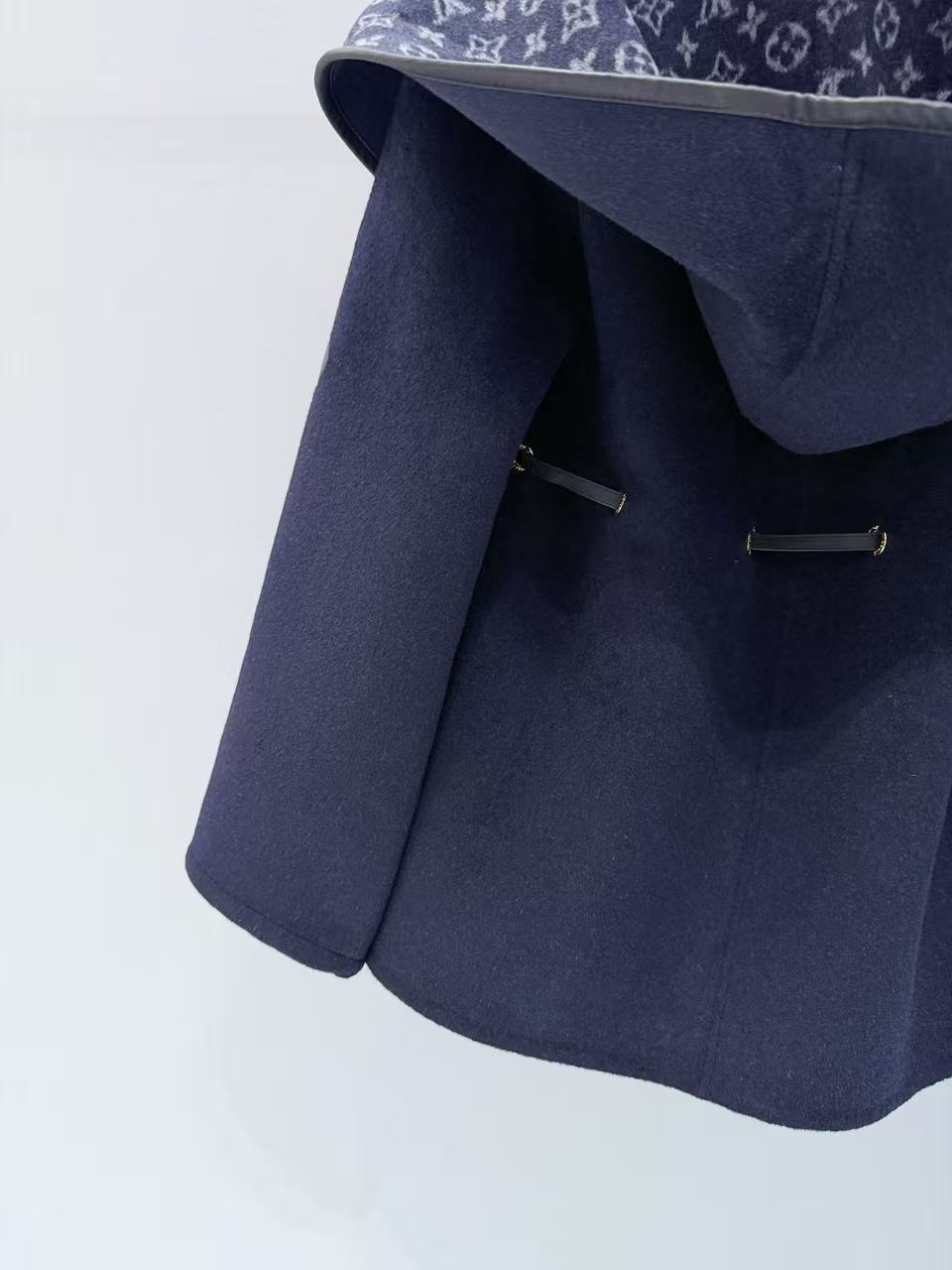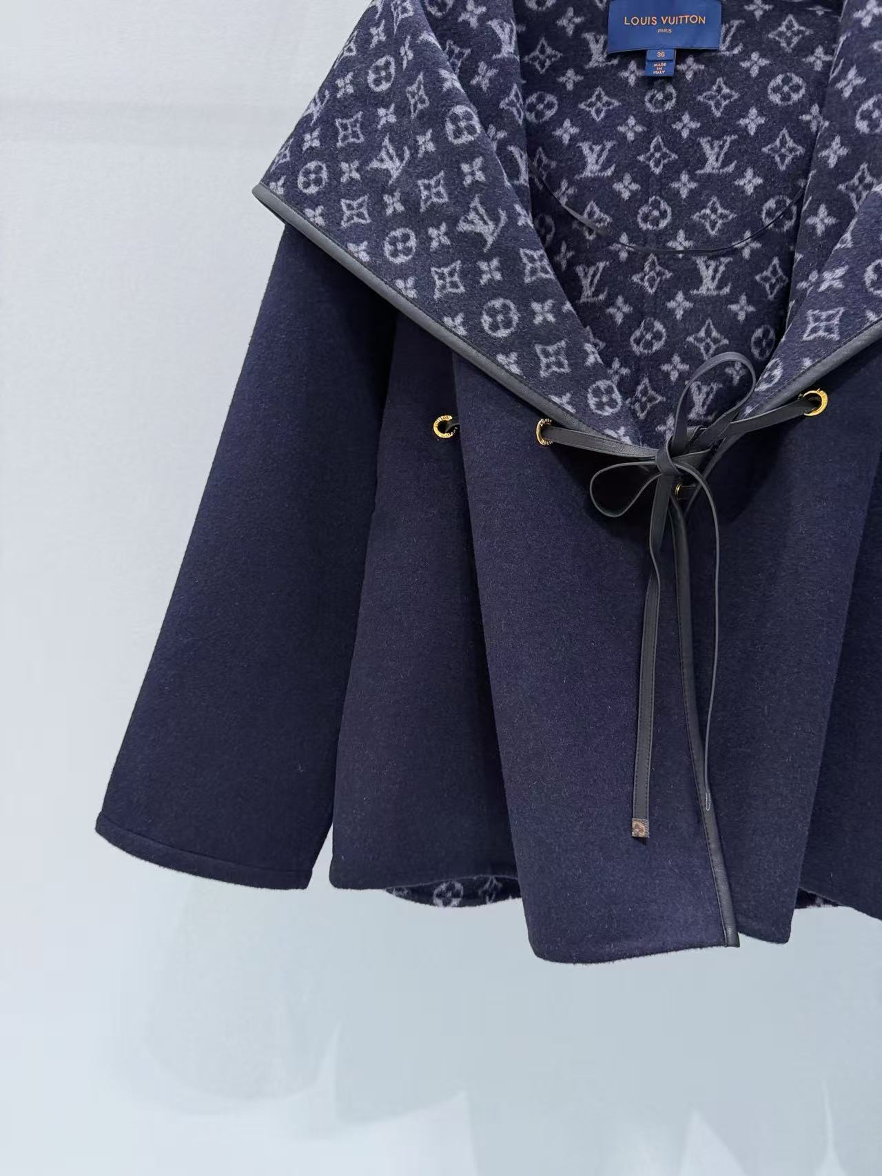 2025秋冬 L家 深藍羊毛斗篷繫帶短款大衣