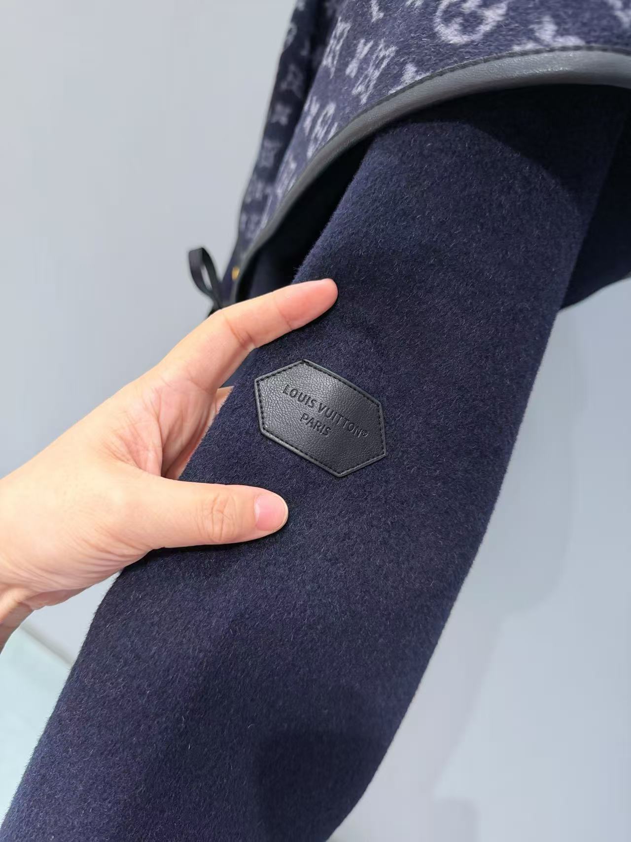 100% 頂級雙面羊毛,手感細膩柔軟得像頂級圍巾,輕盈卻保暖到不行,零負擔。材質帶自然光澤,深藍色在光線下會微微泛霧面藍調,拍照直接美到發光。