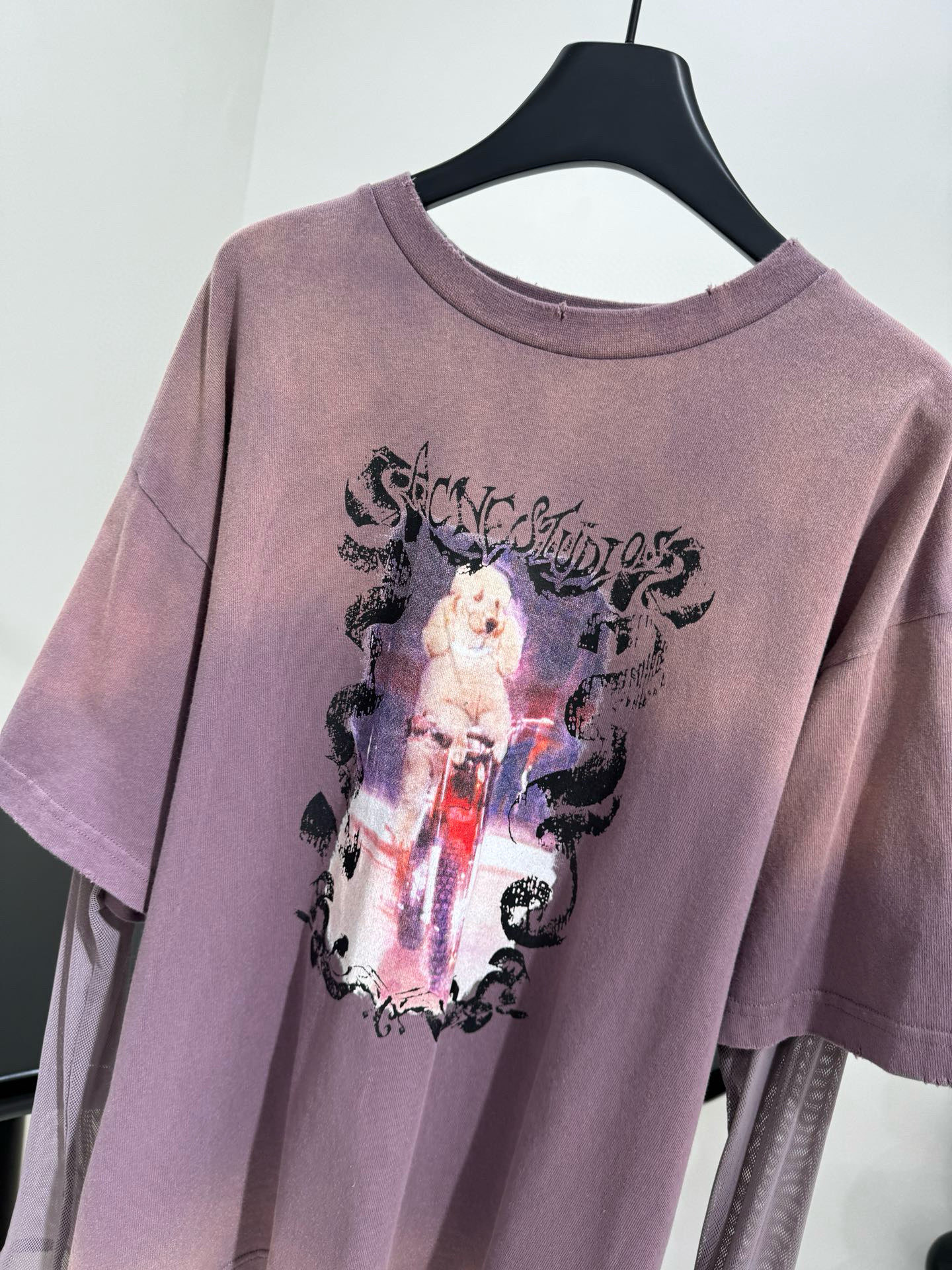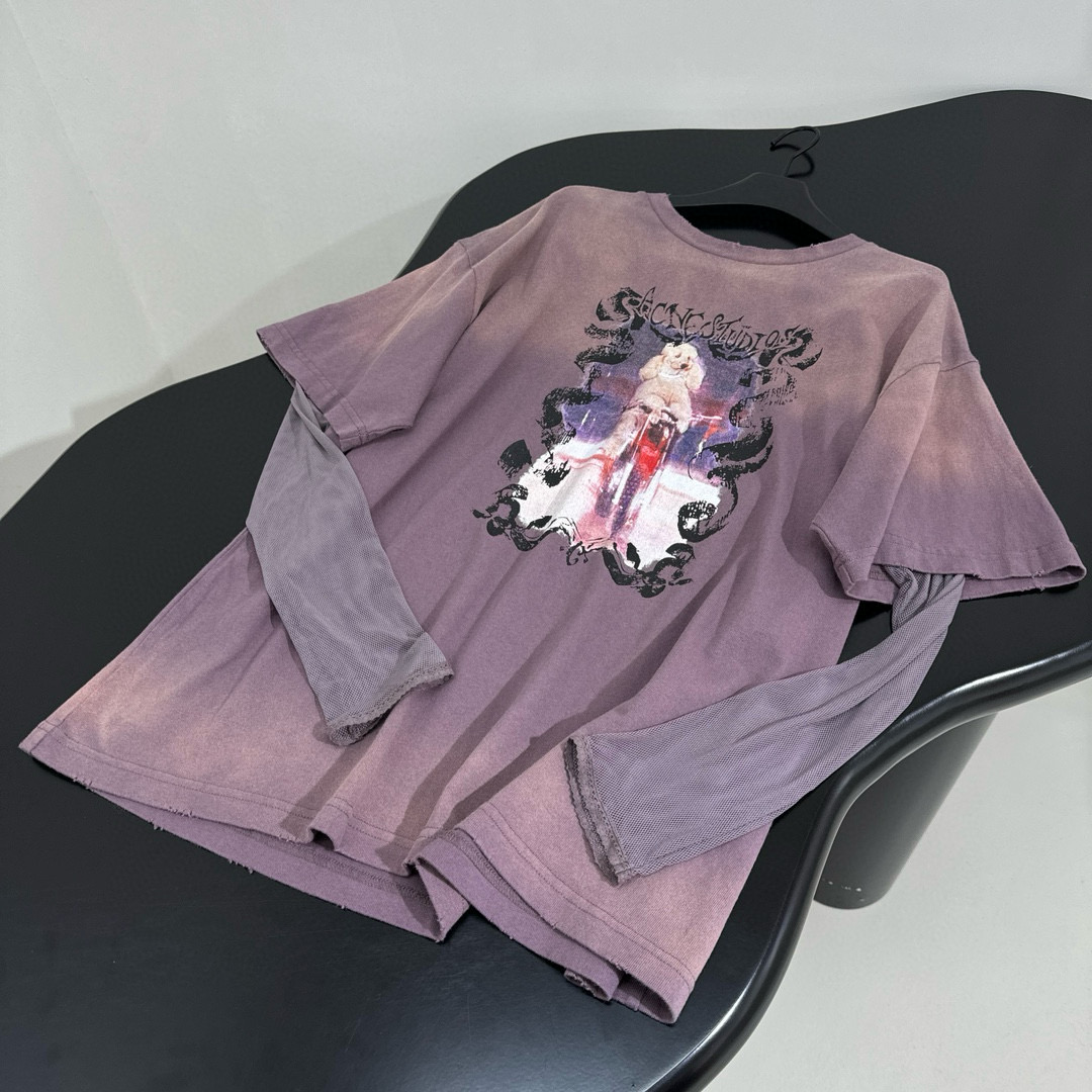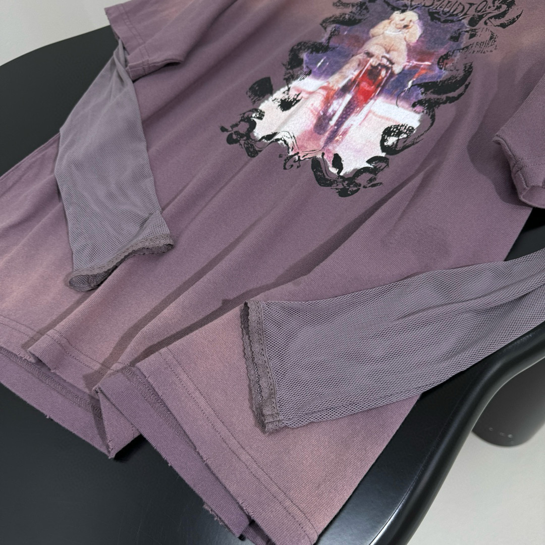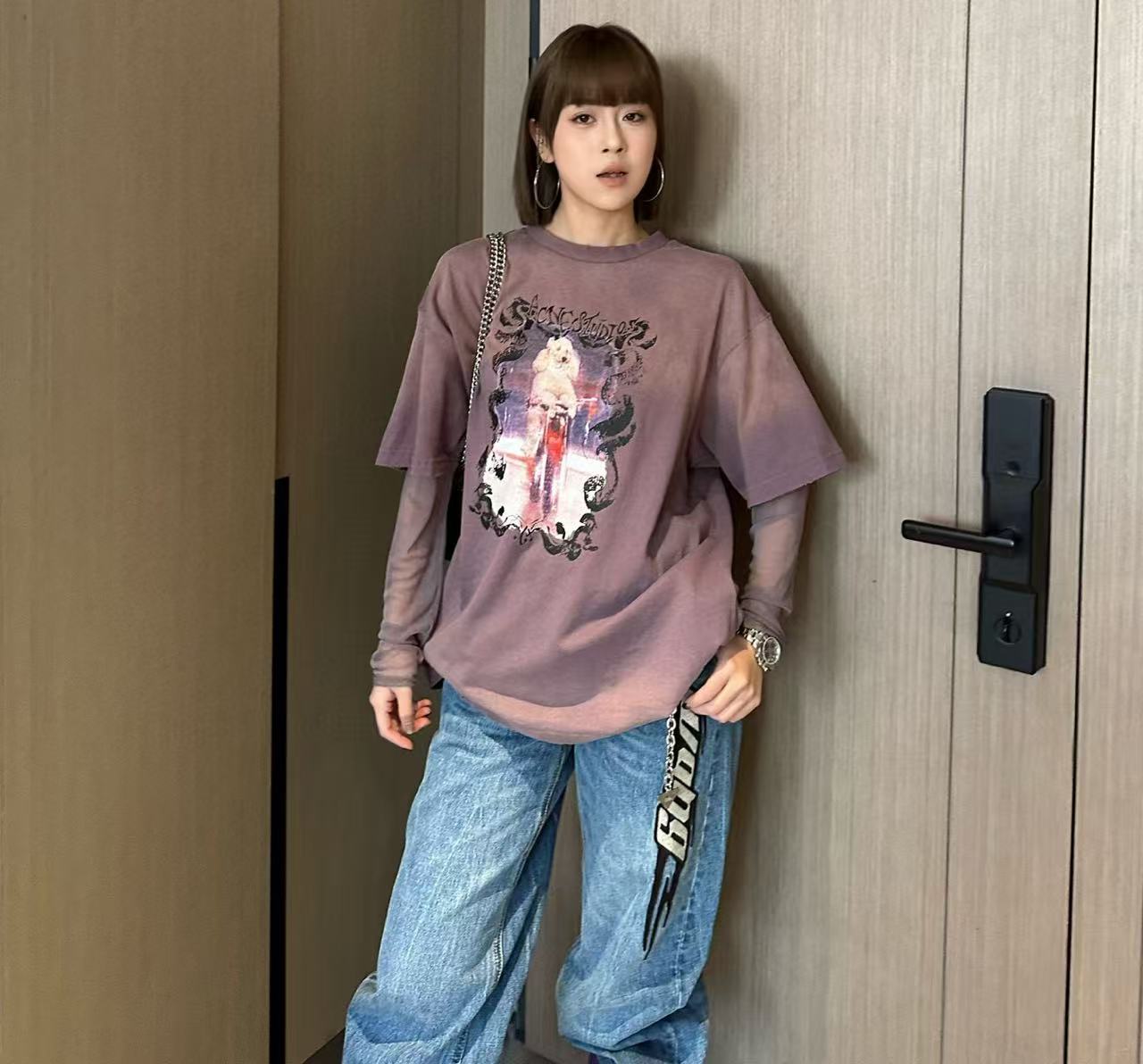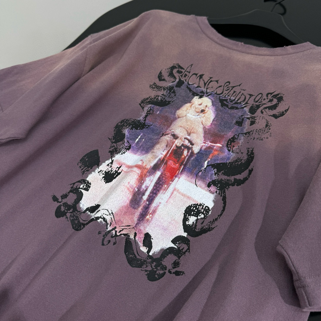 2025早春新品 AC家假兩件狗狗摩托車印製圖案上衣
