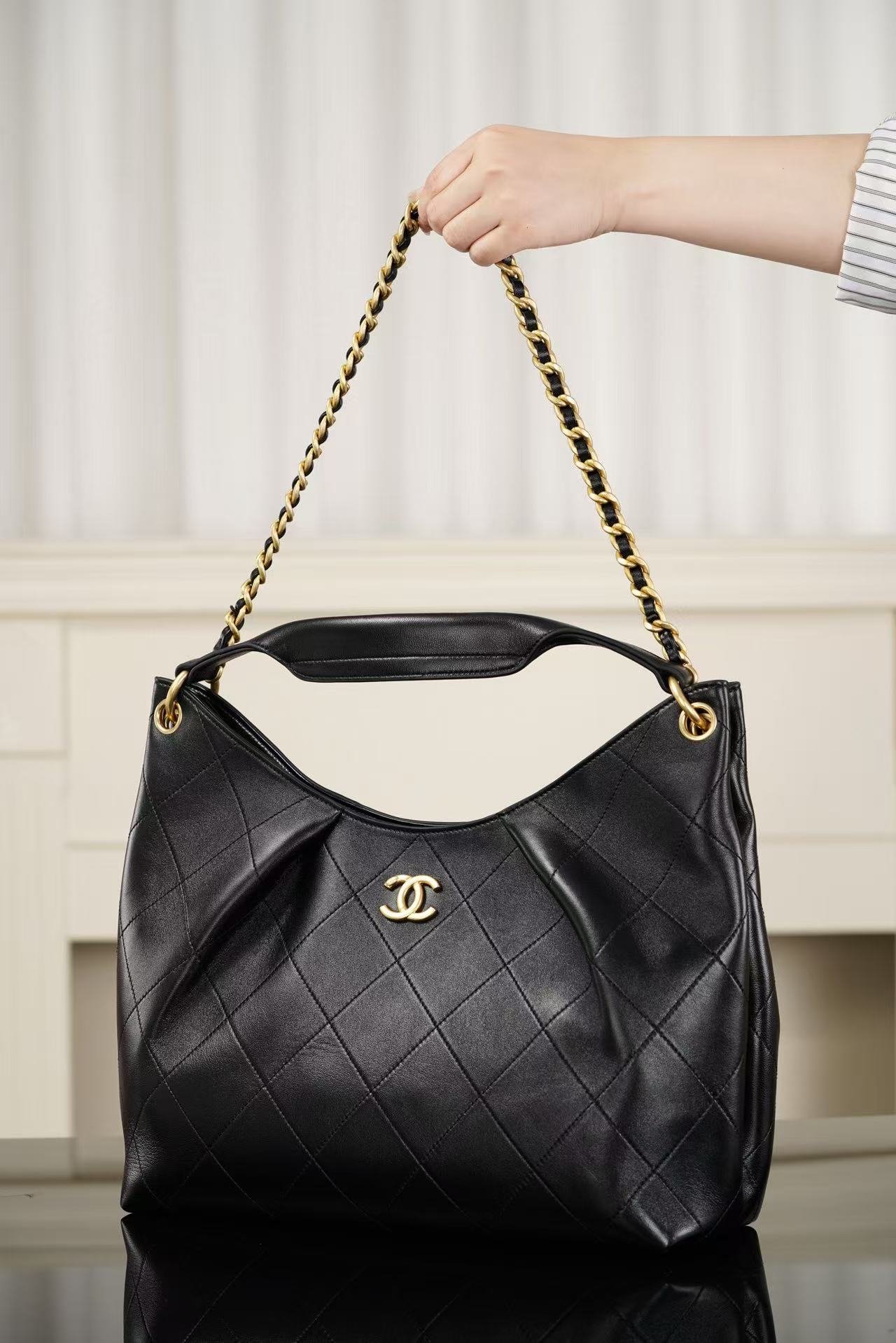 黑金經典配色 搭配流動感十足的捏褶設計,消解了大包容易帶來的笨重感,呈現出一種精緻的「流浪美學」,完美適配從高端商務到週末度假的所有場景。