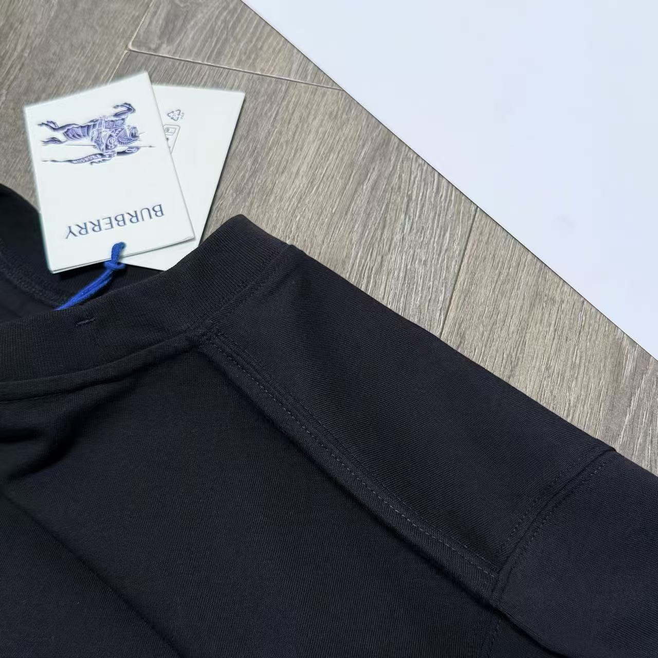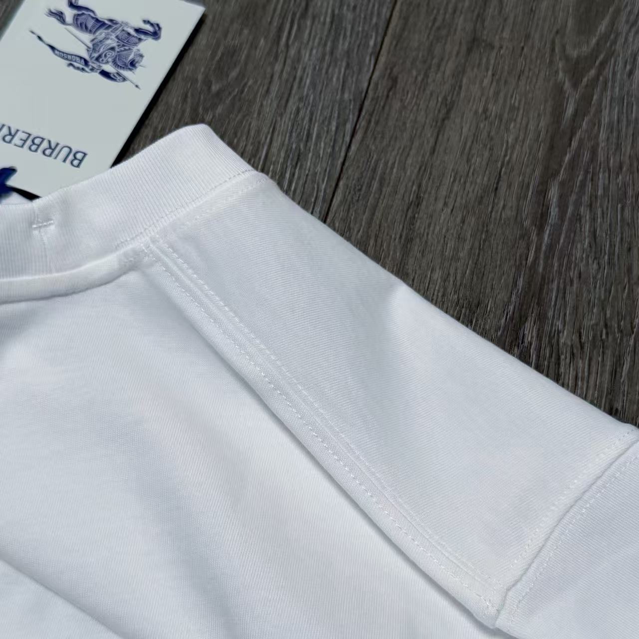 領口設計巧妙結合了小寬領螺紋與內側加固工藝,徹底解決了精品 T 恤常見的洗滌後鬆垮問題。