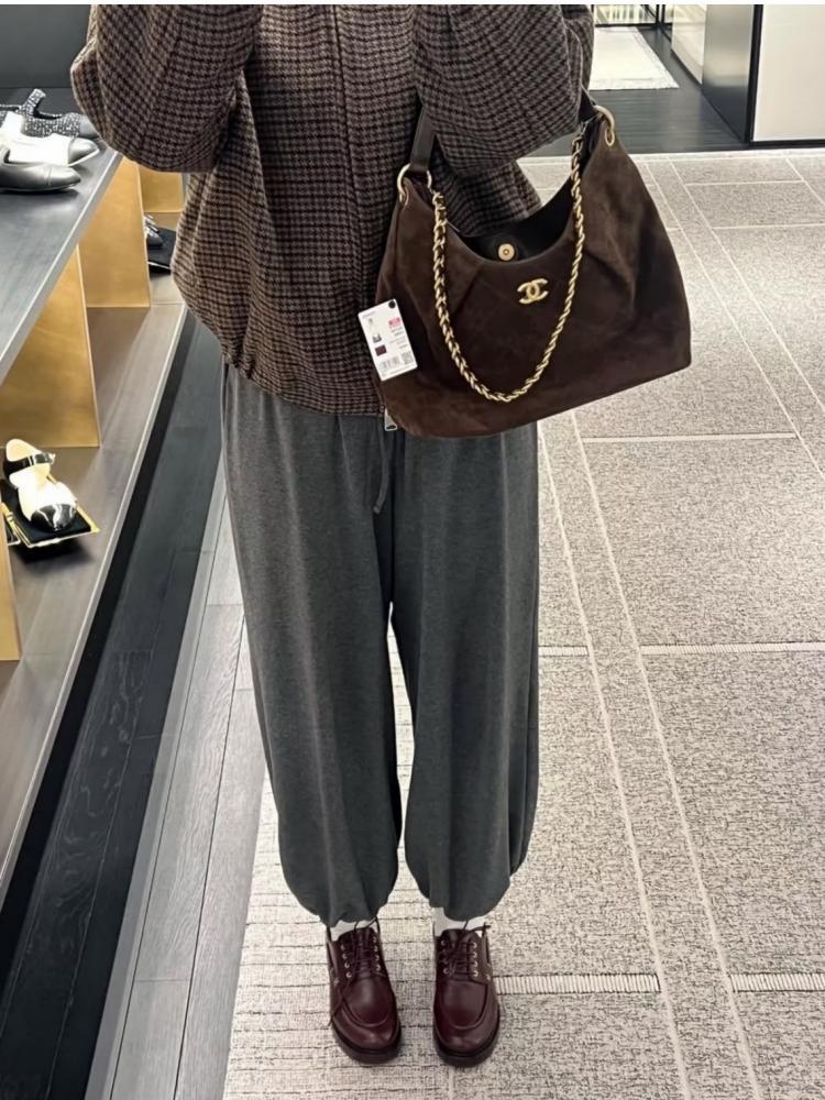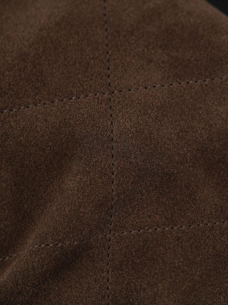 麂皮棕色調溫潤耐看,特別適合早春到秋冬季節,整體氛圍低調卻很有質感。