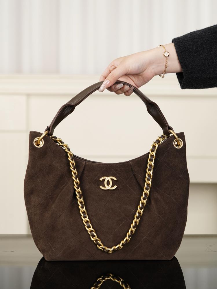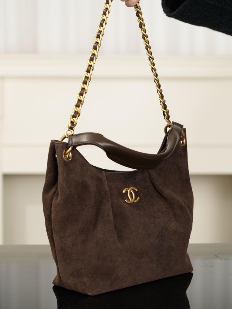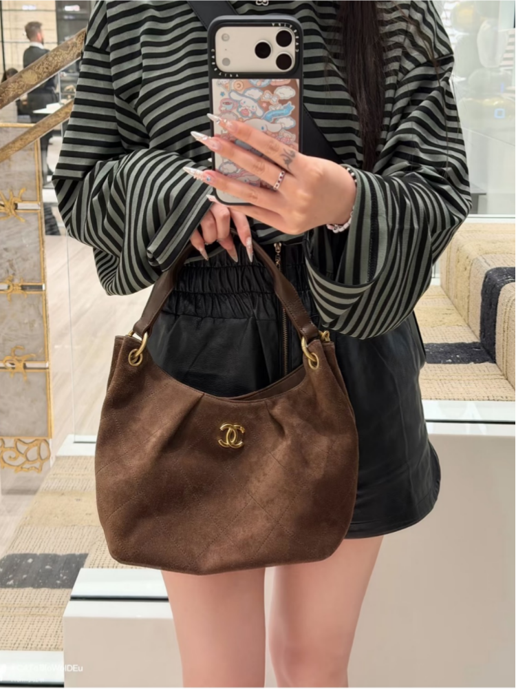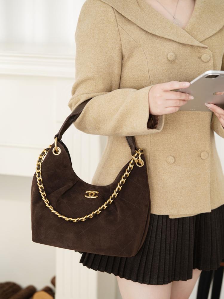 2026早春新品 C家 26c麂皮棕Hobo包(小號)