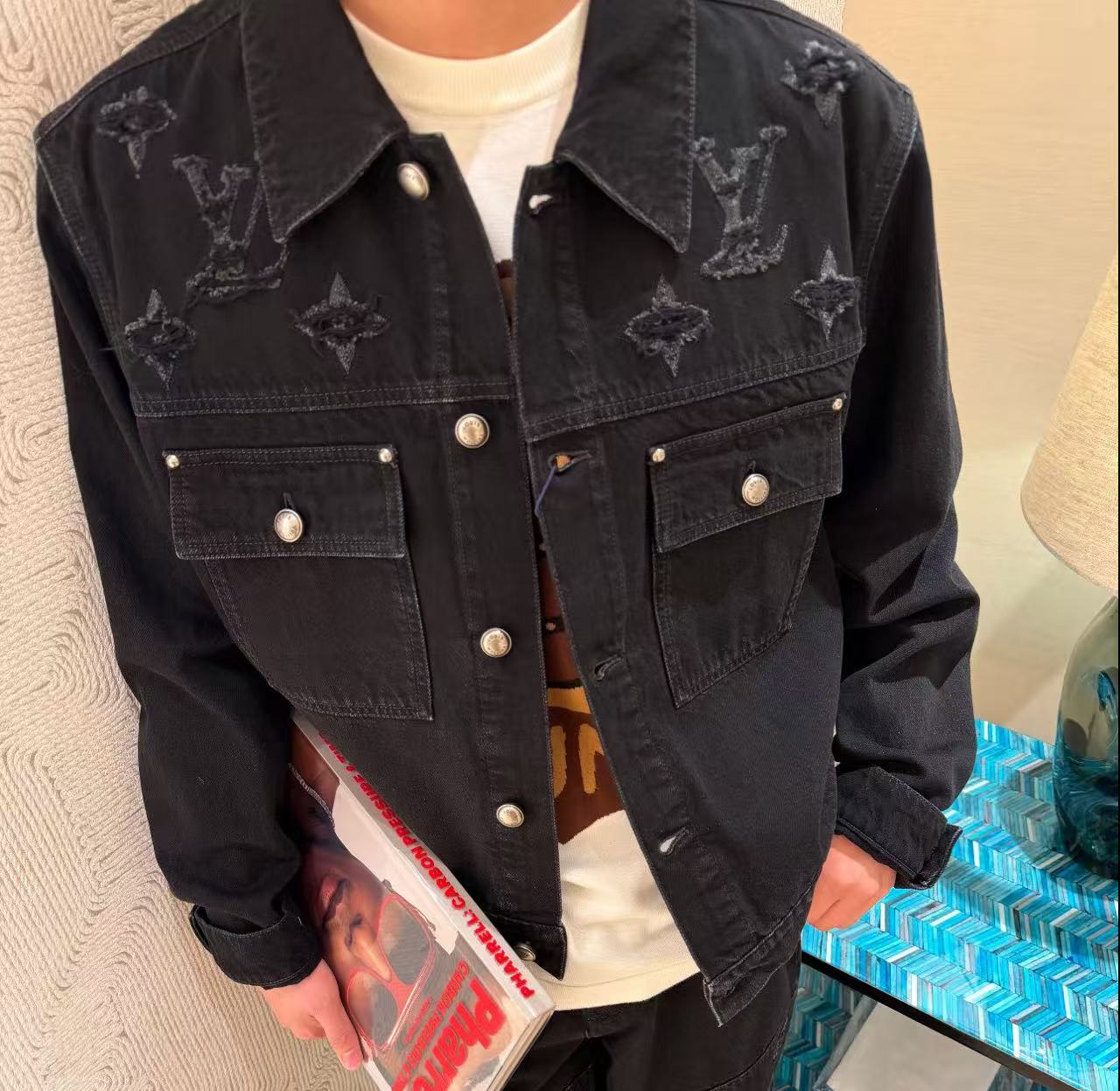 這款 25秋冬系列外套,將粗獷的單寧材質與精緻的 Monogram 元素重新拆解,展現出極具實驗性的時尚語彙。