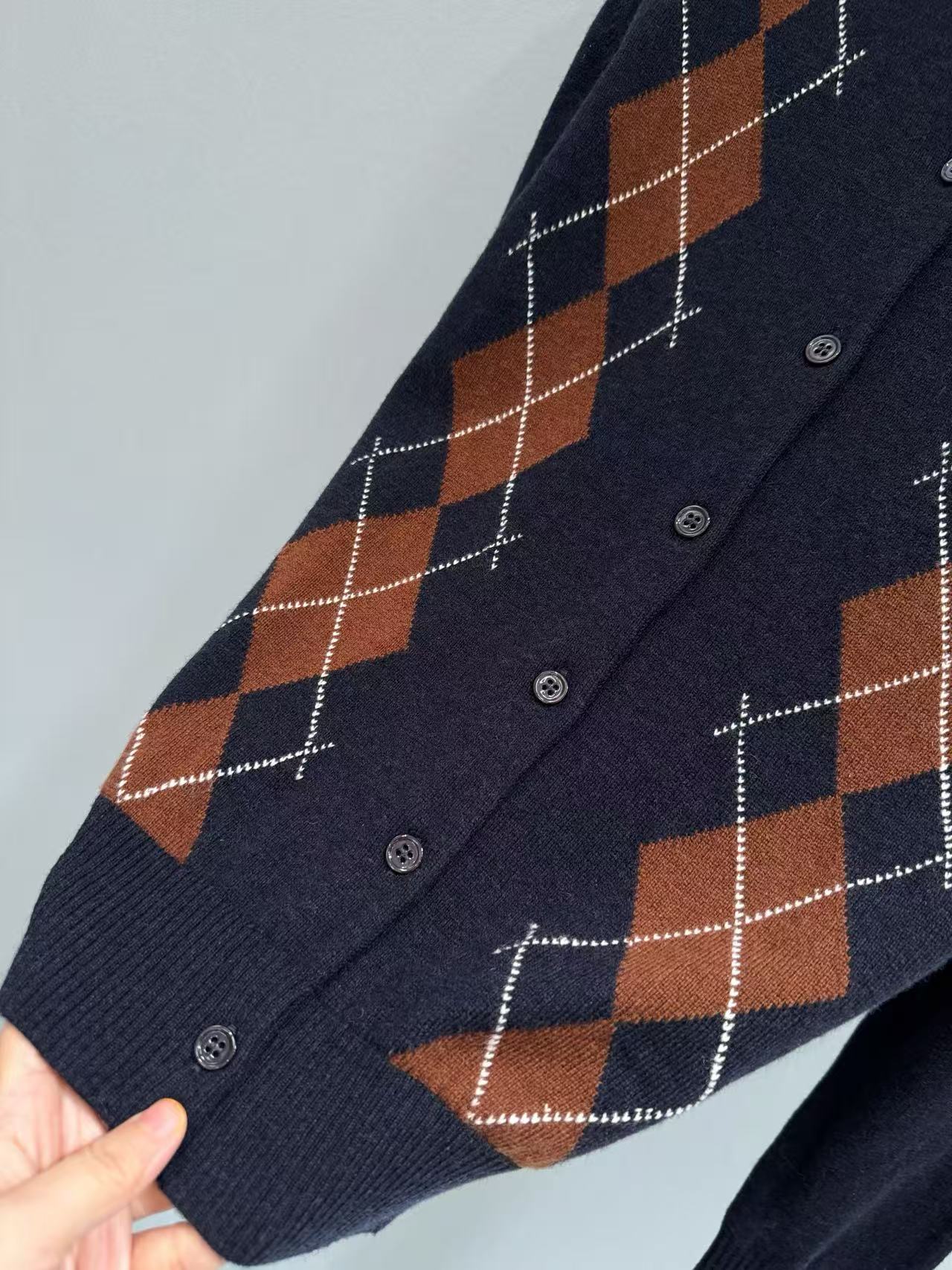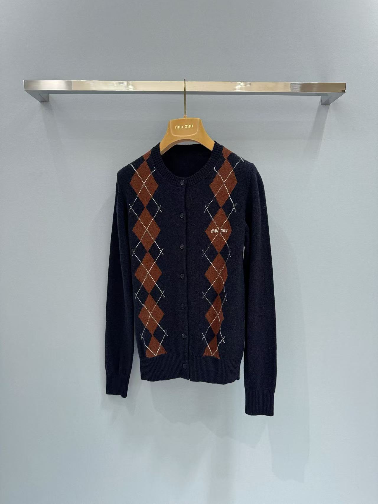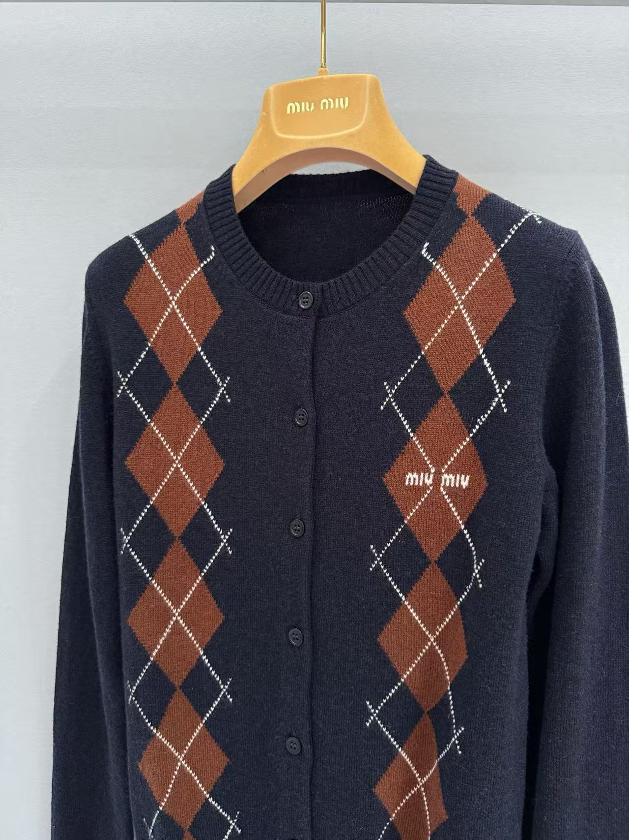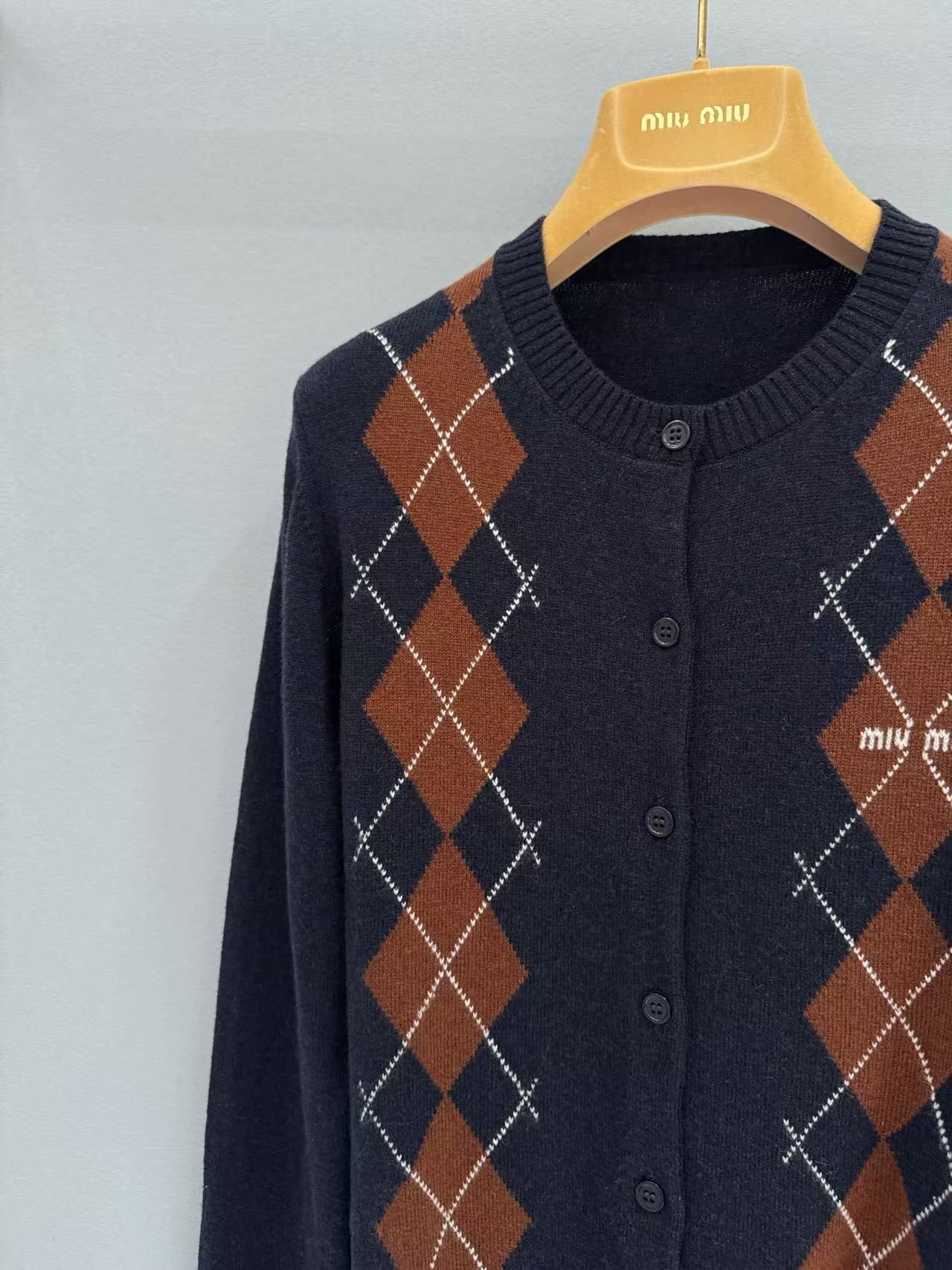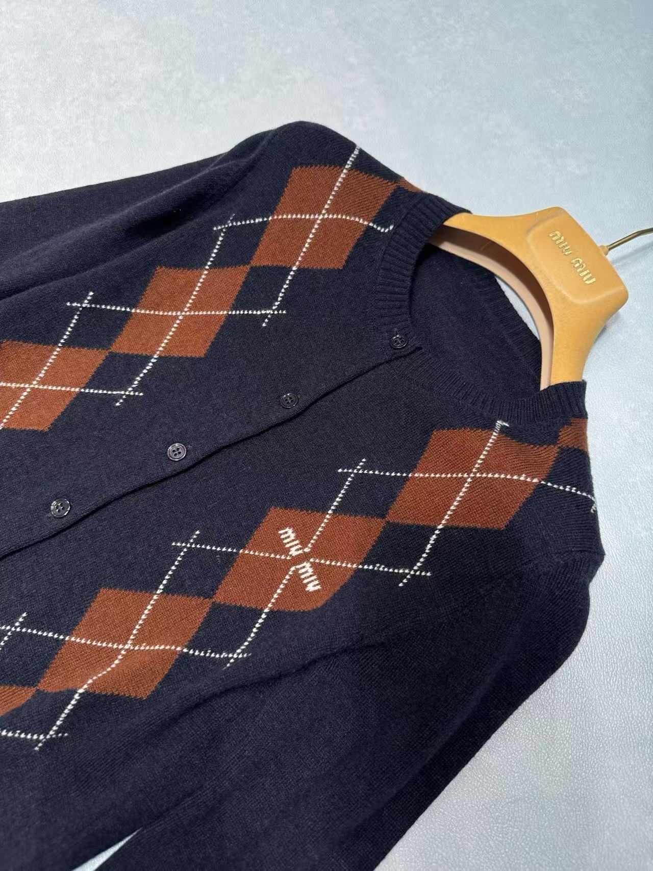 2025早秋 Miu家 撞色菱格羊絨針織開衫,乖甜復古的少女心單品!