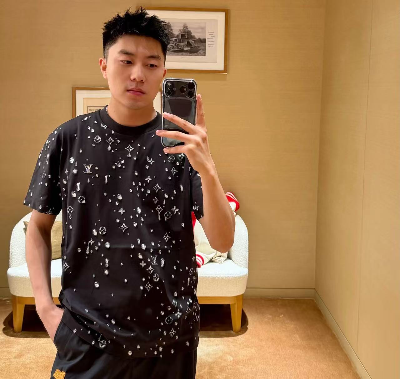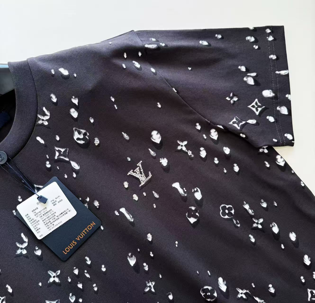 近看才發現胸前那顆經典LV標誌居然是整片真萊茵石手工燙鑽,陽光一打整個胸口在發光,閃到路人都會幫你轉頭,卻又低調到只給懂的人看,貴氣直接從T恤噴出來,懂的人自動懂~