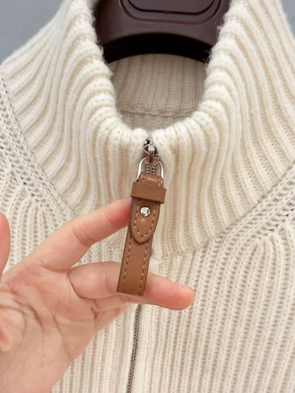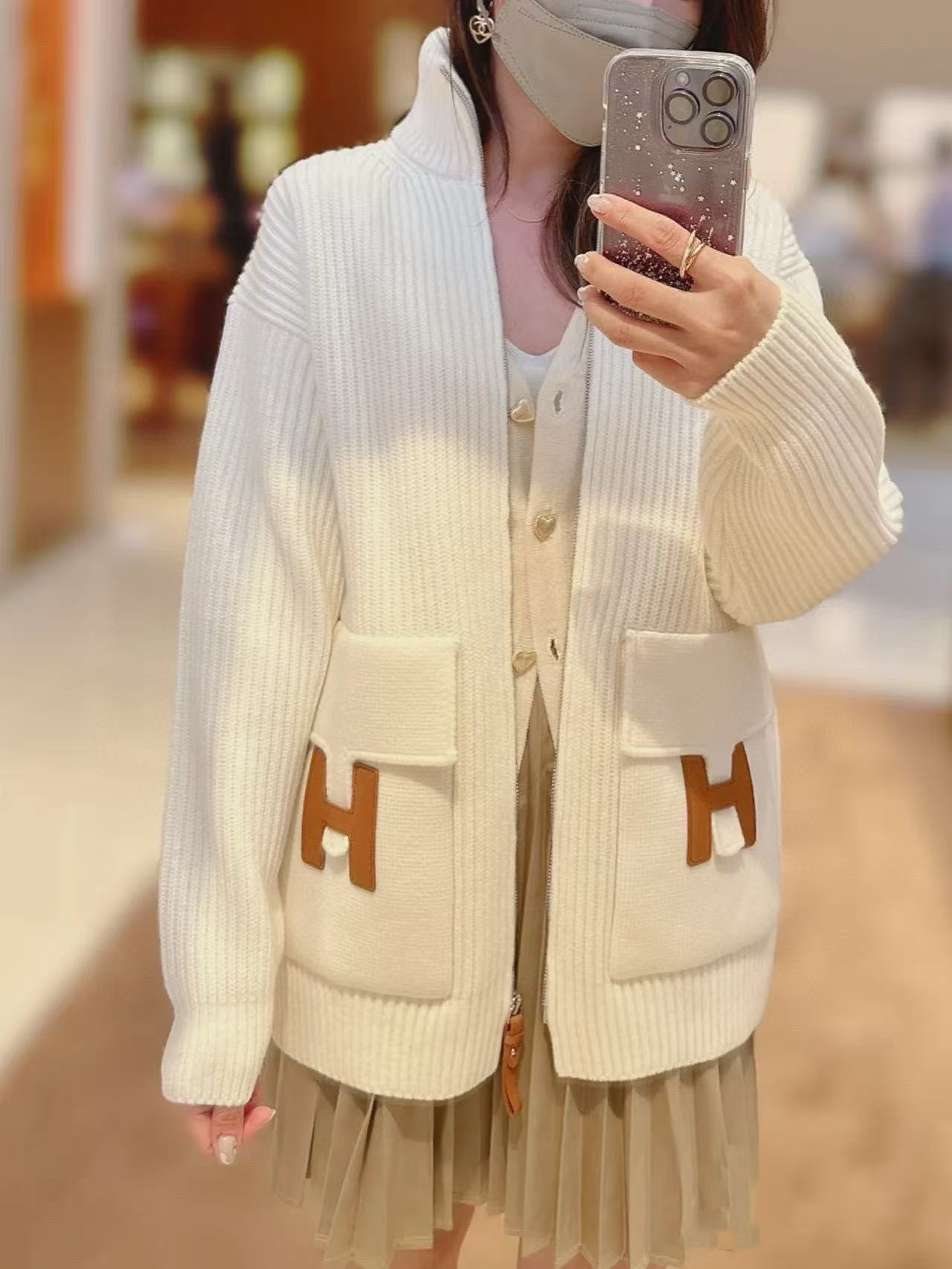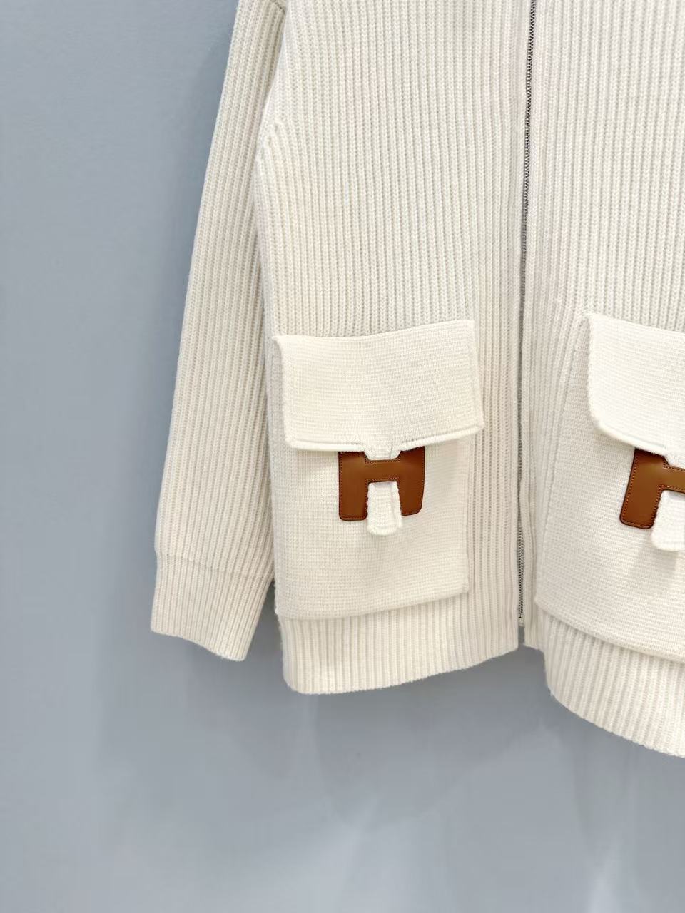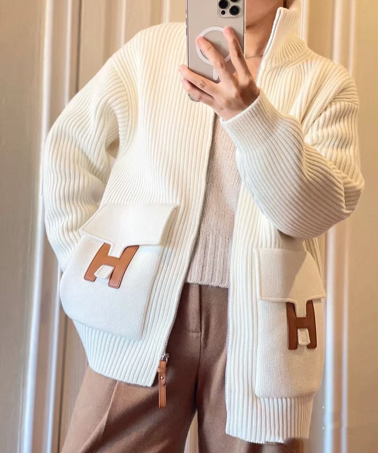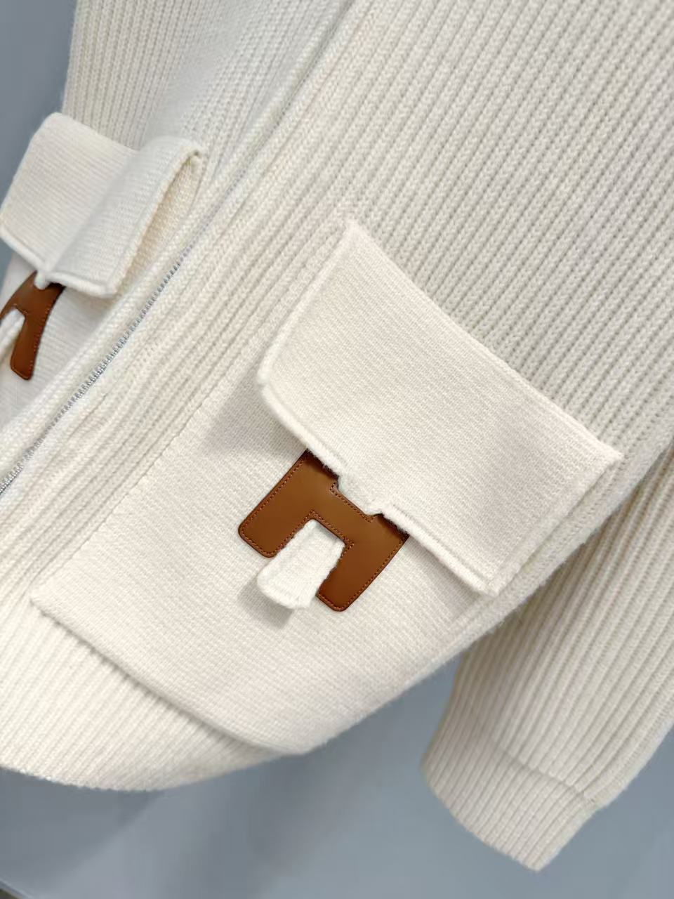 2025早秋 H家 口袋H針織拉鏈外套|奶油白的秋冬柔光感