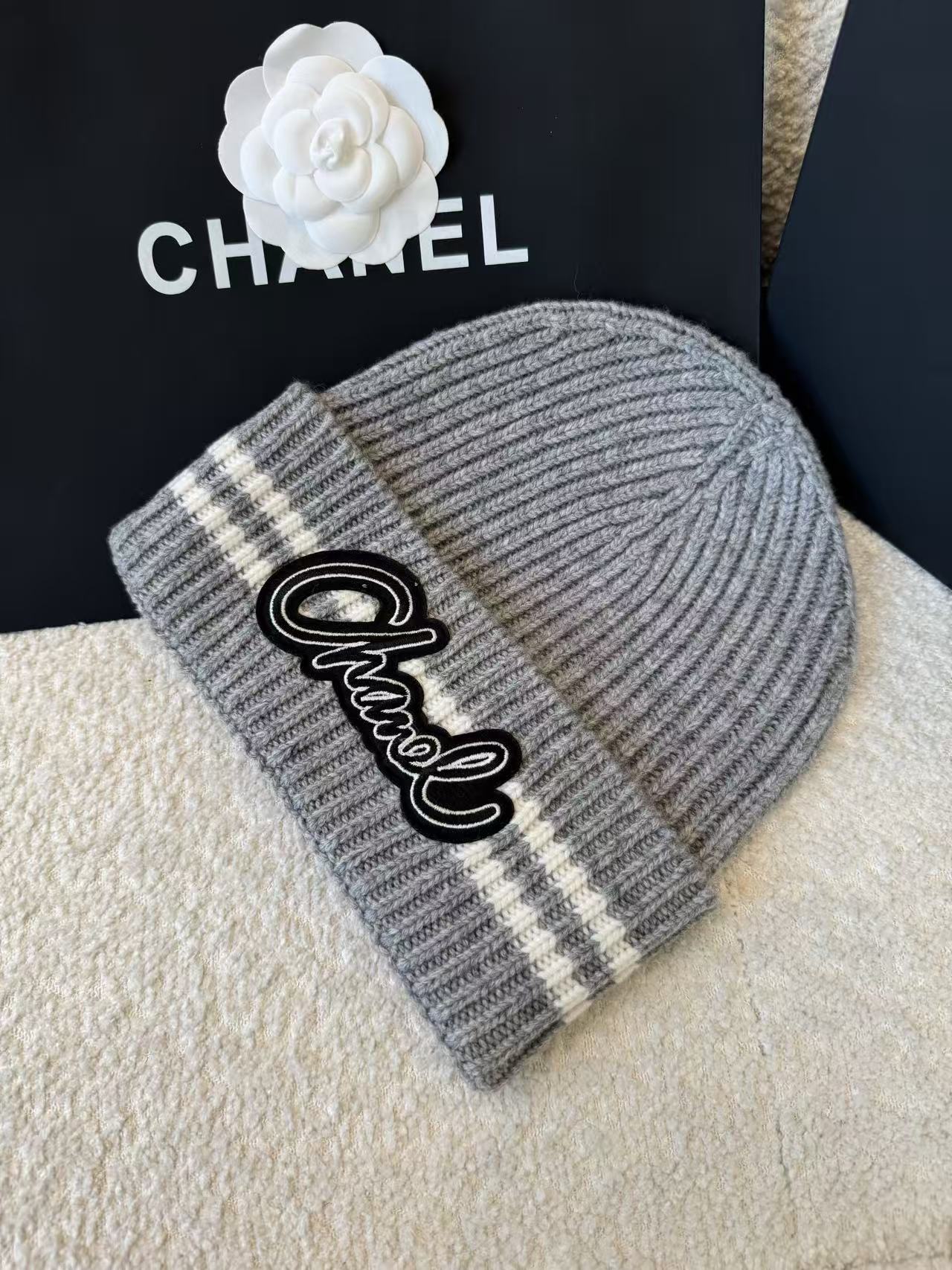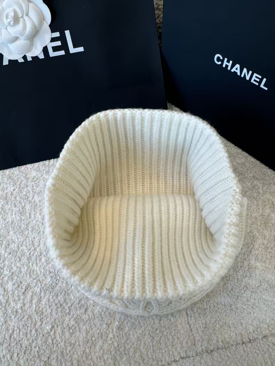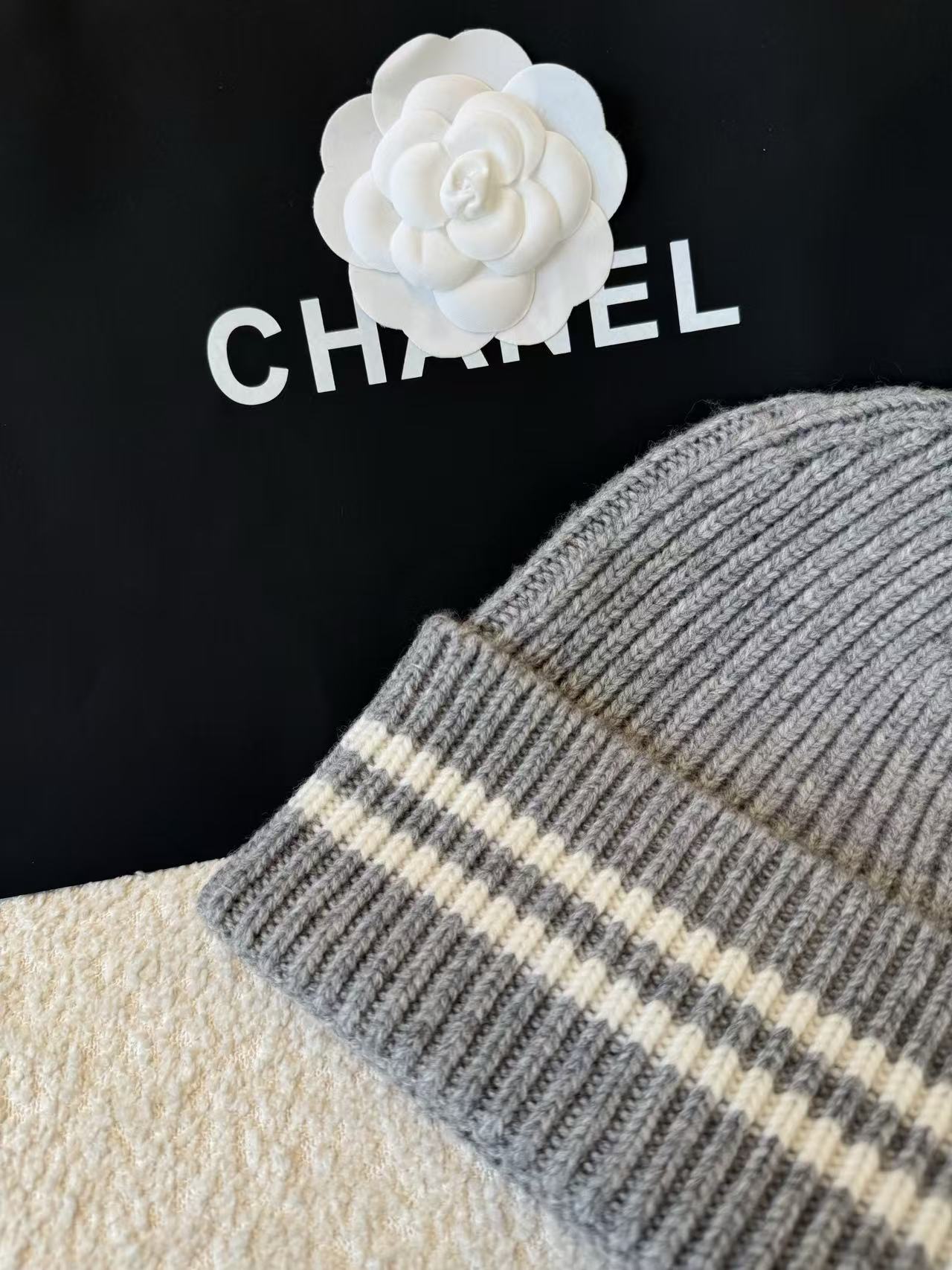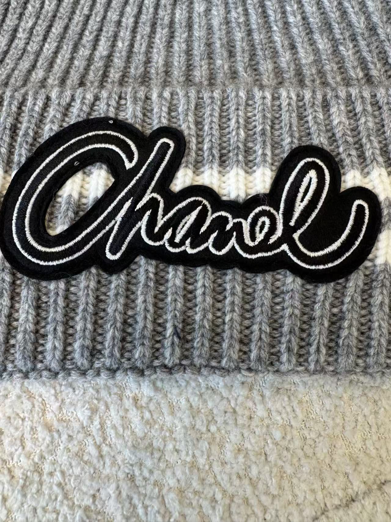經典黑底毛帽,帽身前面直接繡上白色雙C Logo,兩側再各加一道白色粗細雙槓