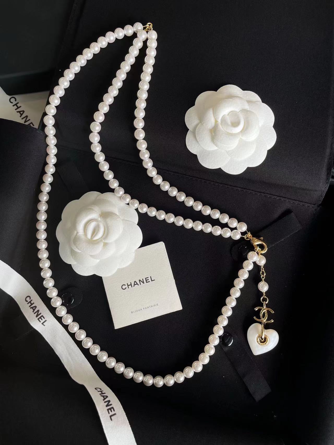 2024春夏 C家雙C白色愛心珍珠腰鏈