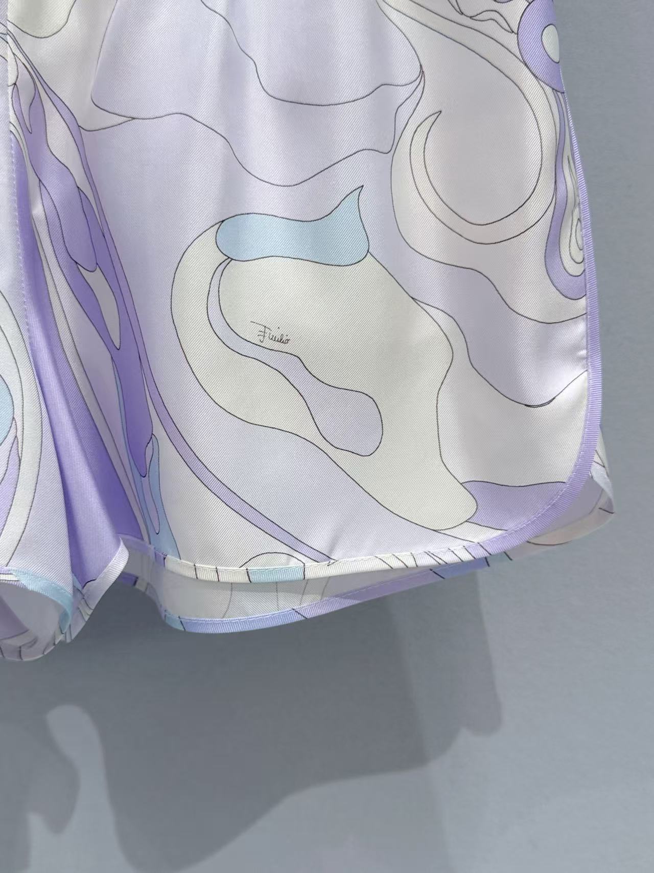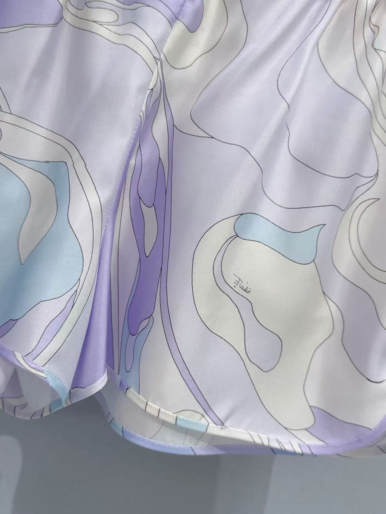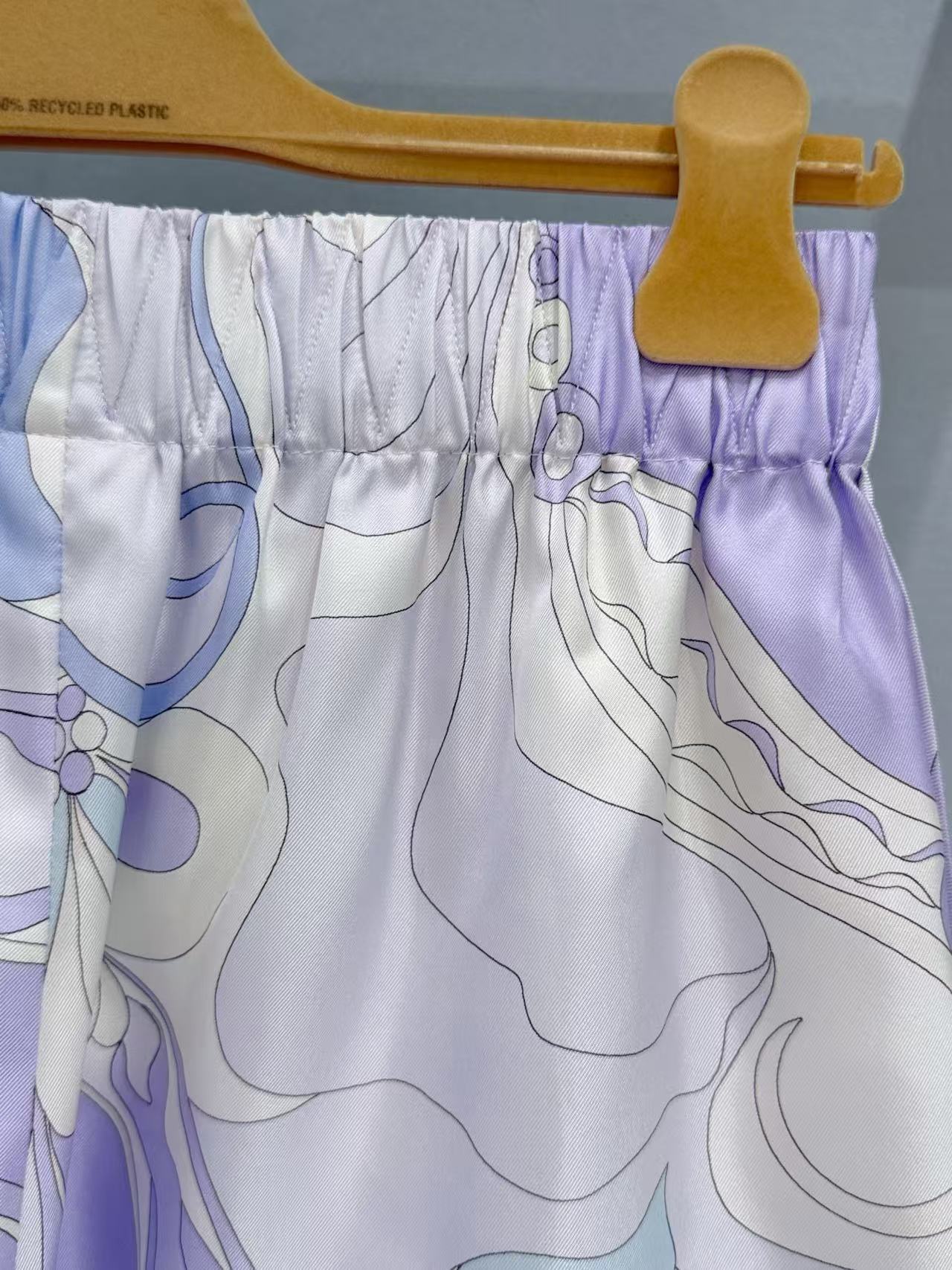 2026早春 Pu家 鳶尾花紫絲綢短褲