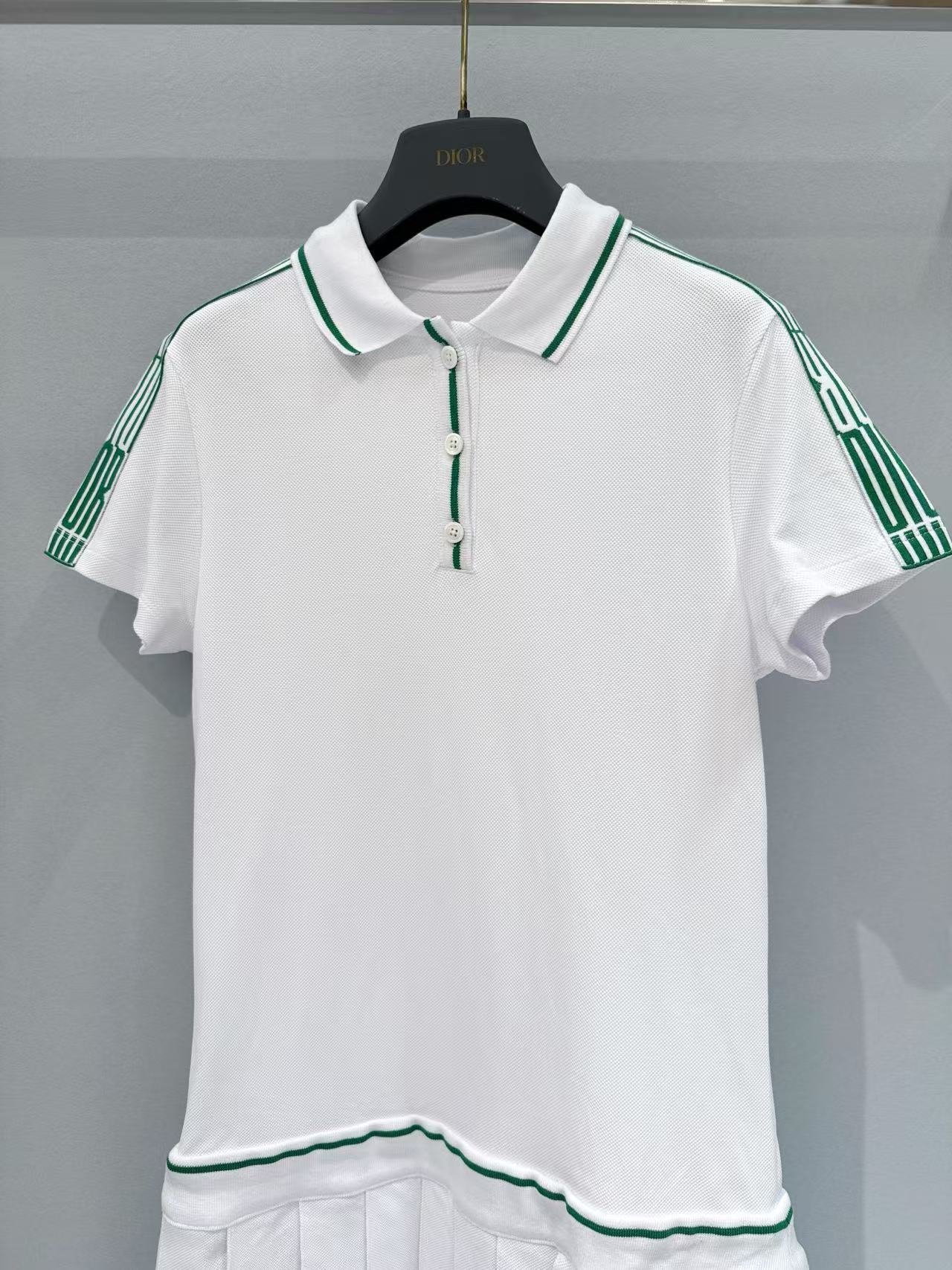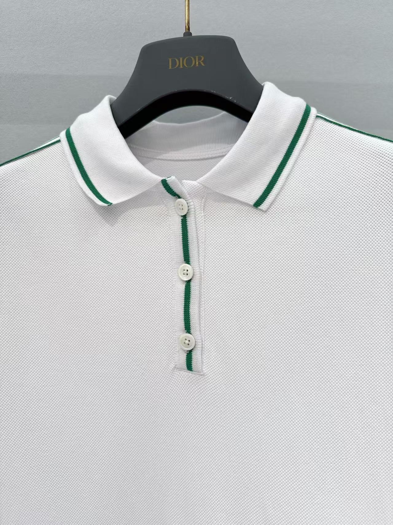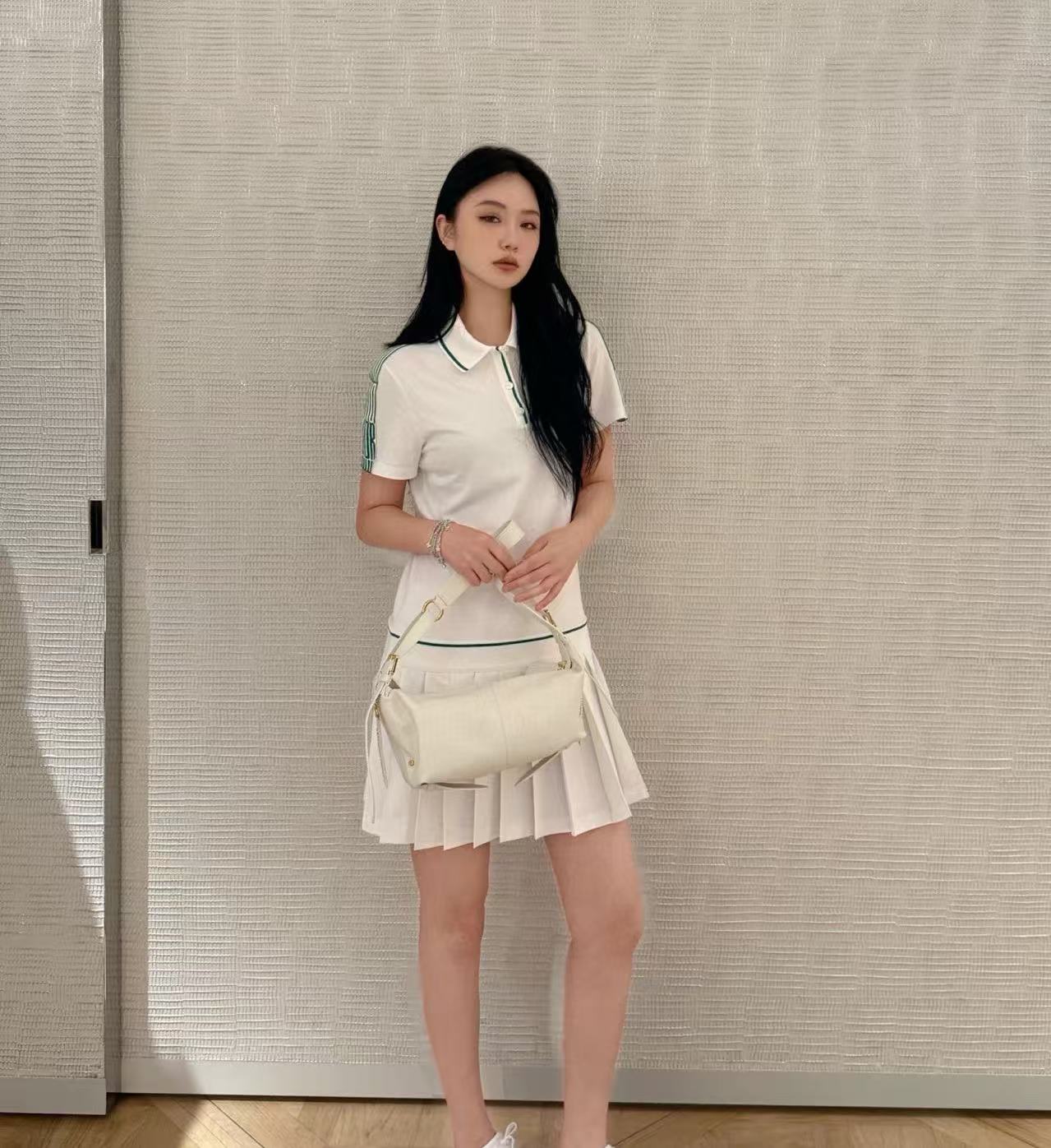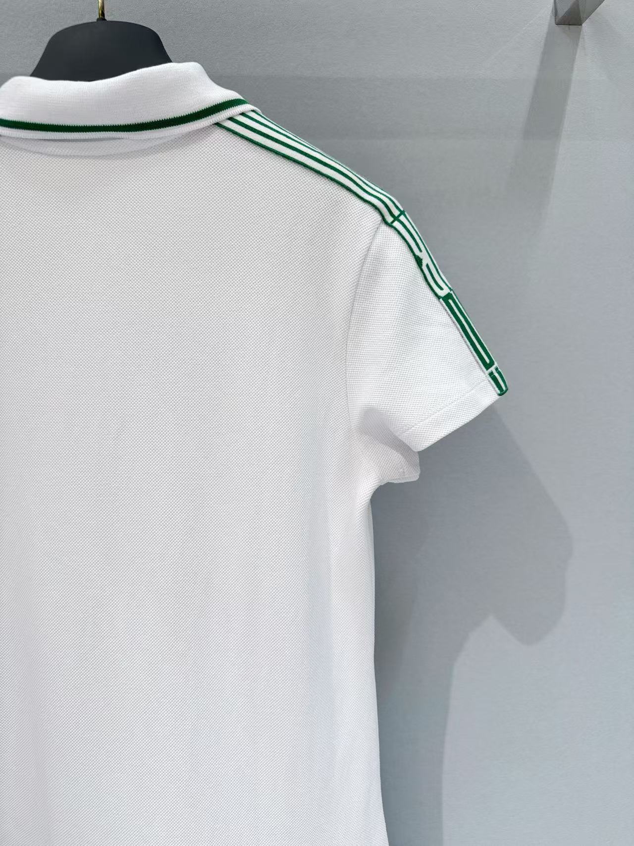 這件真的太有青春感了!以經典 Polo 領作為設計主軸,綠白織帶拼接細節恰到好處,不僅保有運動風格的活力,還融入一點復古學院氣質,整體調性優雅又俐落,