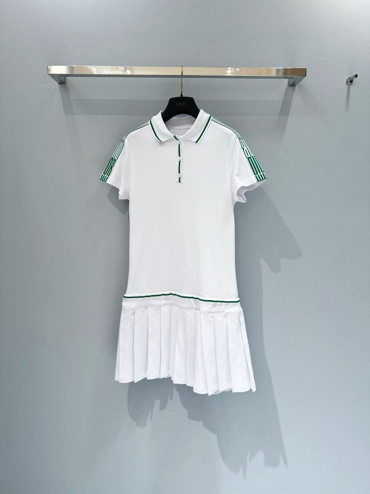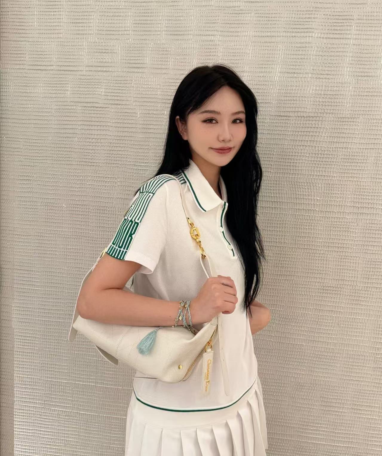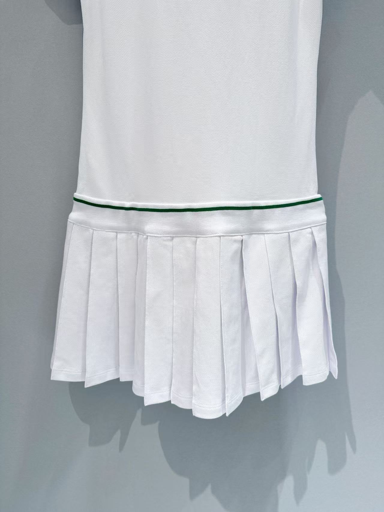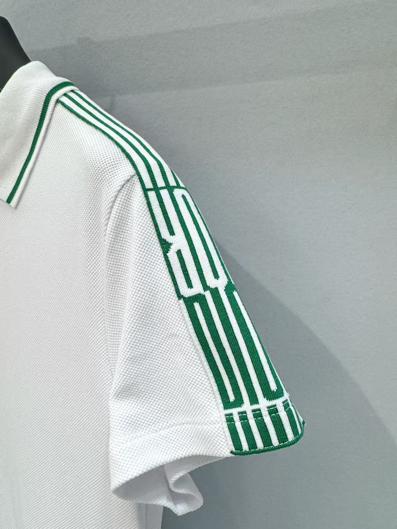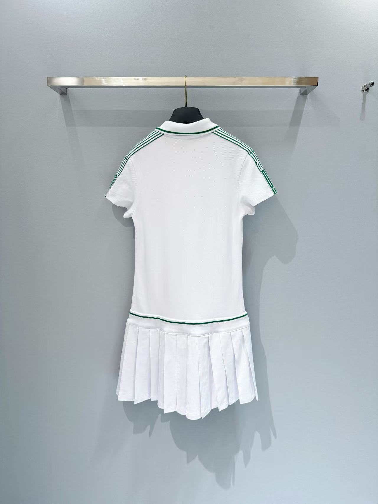 這件真的太有青春感了!以經典 Polo 領作為設計主軸,綠白織帶拼接細節恰到好處,不僅保有運動風格的活力,還融入一點復古學院氣質,整體調性優雅又俐落,