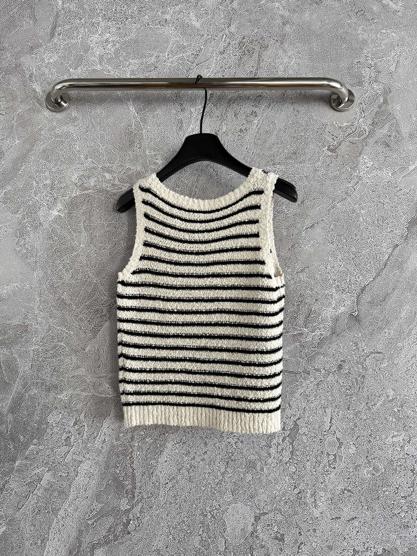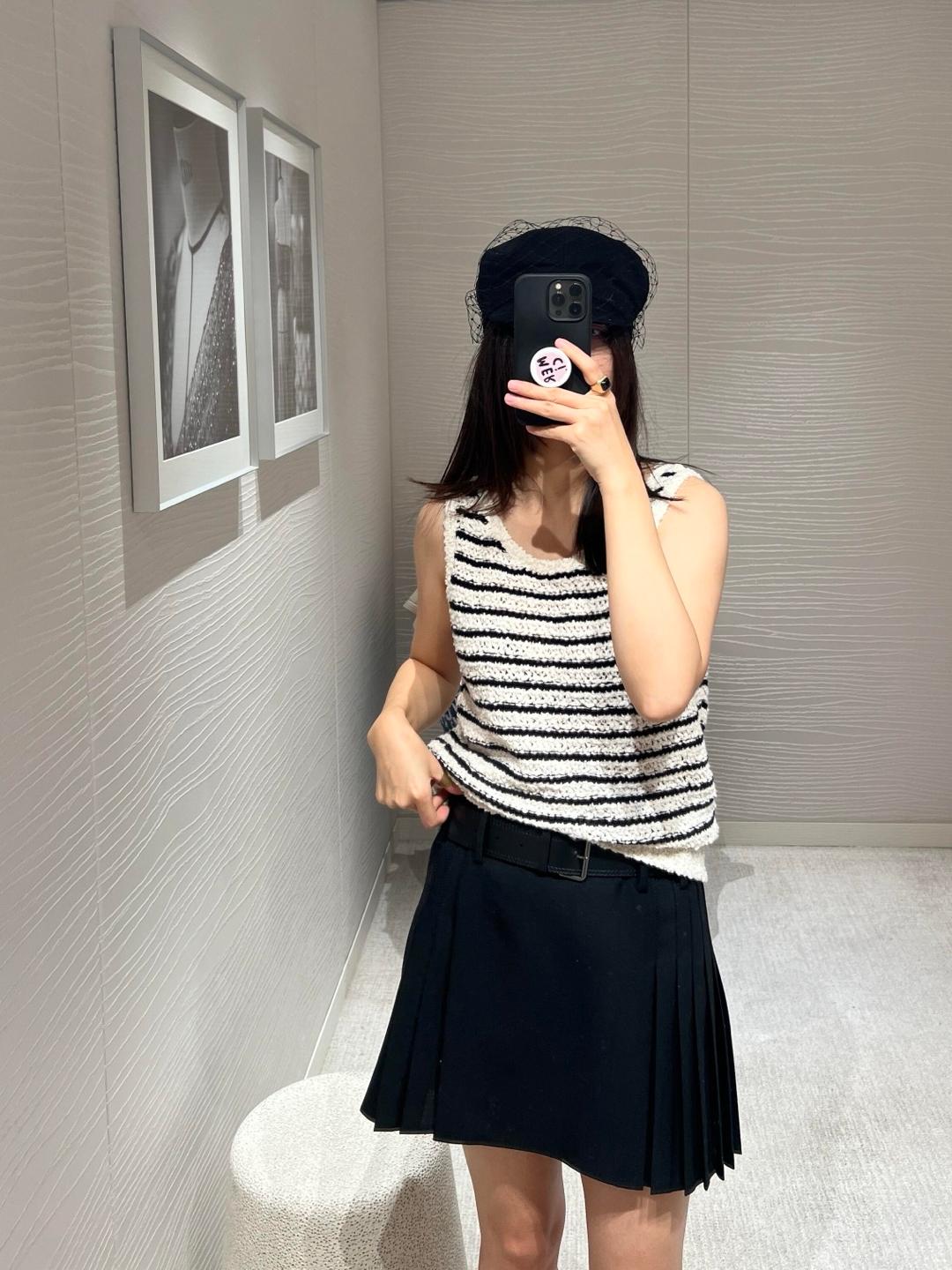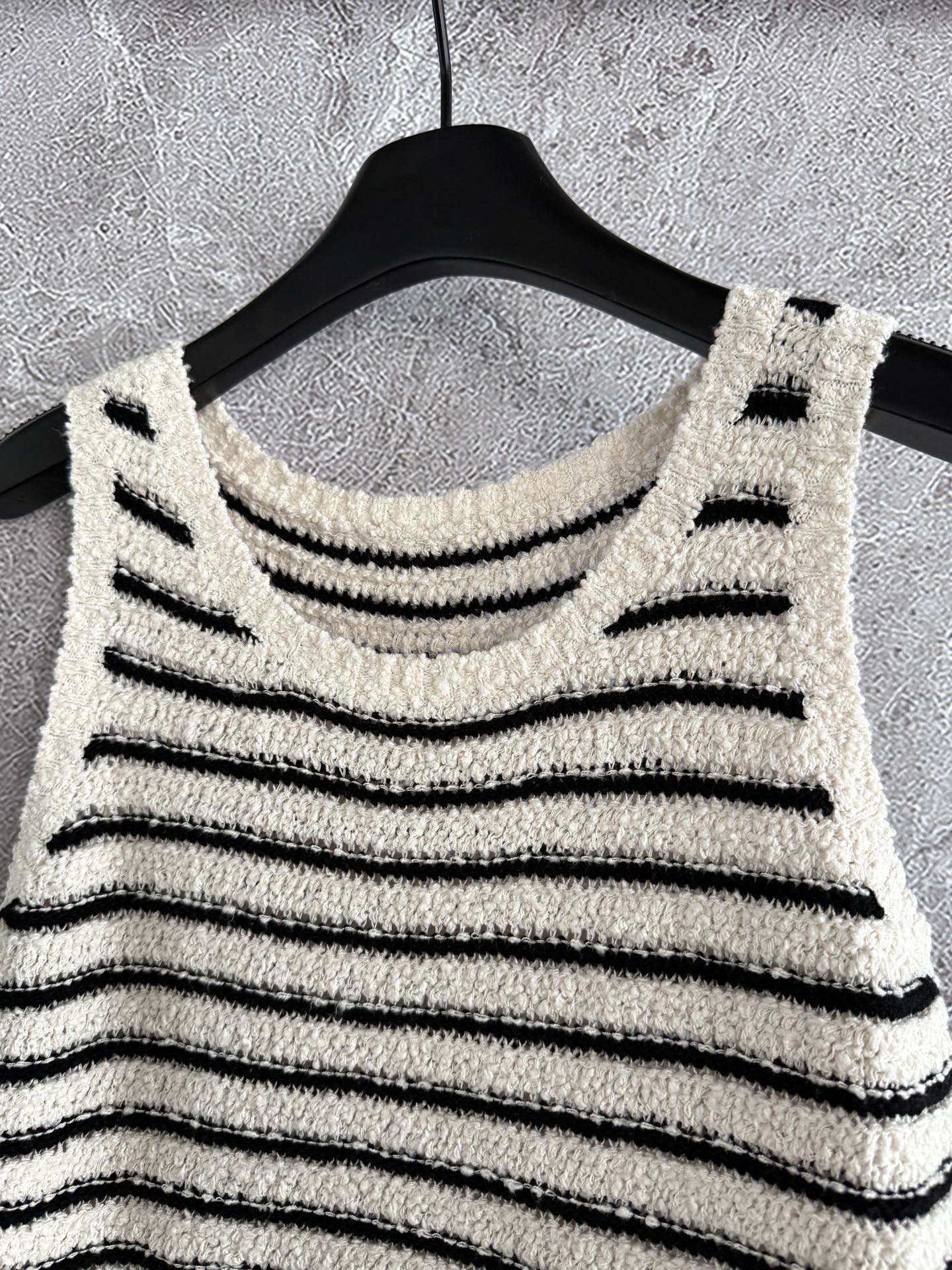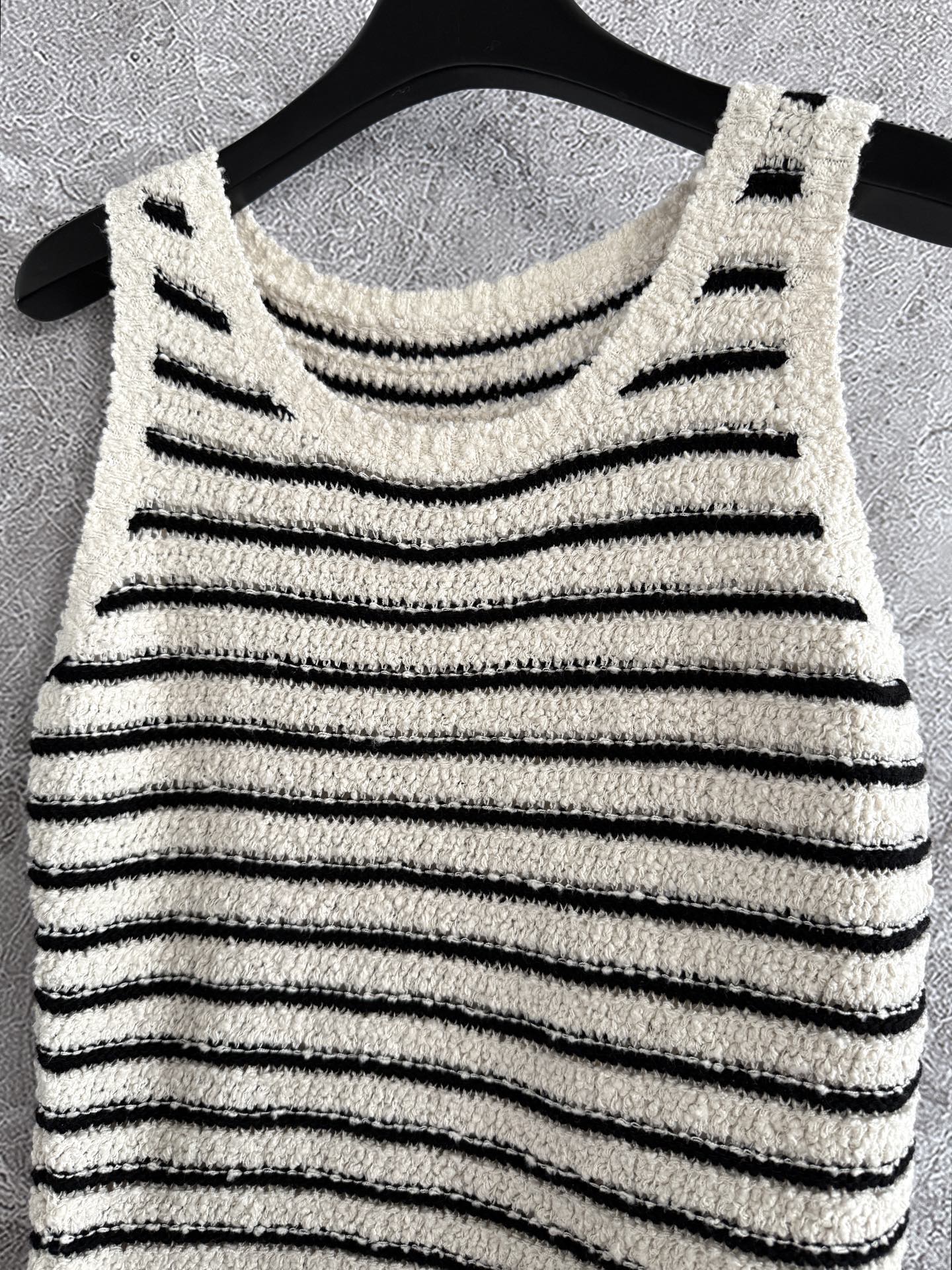 這件條紋背心屬於那種「低調卻耐穿」的單品。版型設計上沒有過度浮誇的細節,反而是靠著質地與氛圍取勝,正因如此,它的穿搭利用率極高。