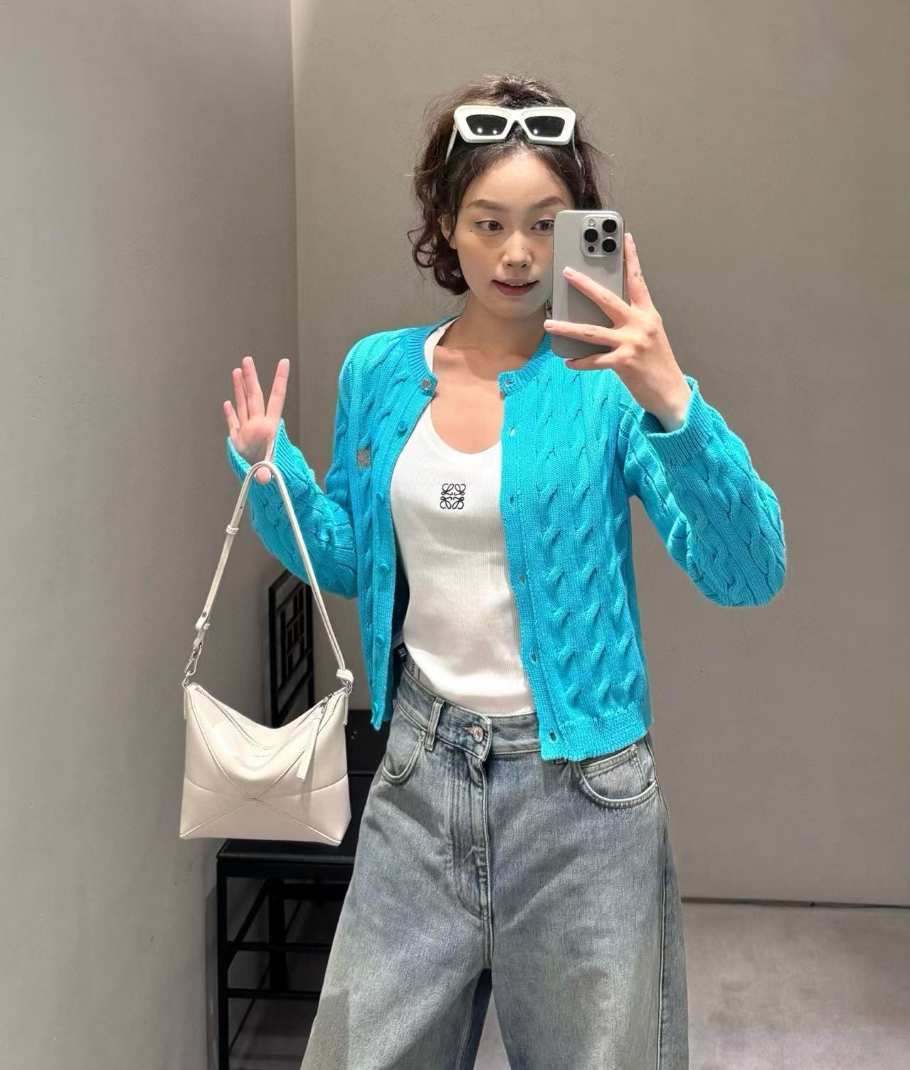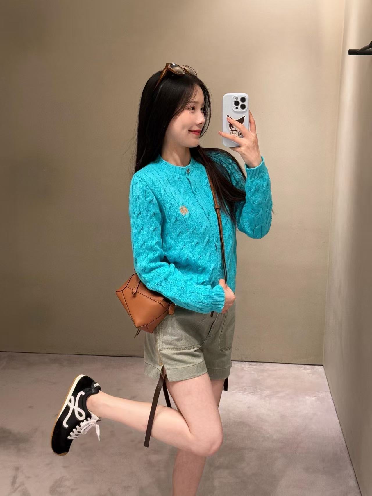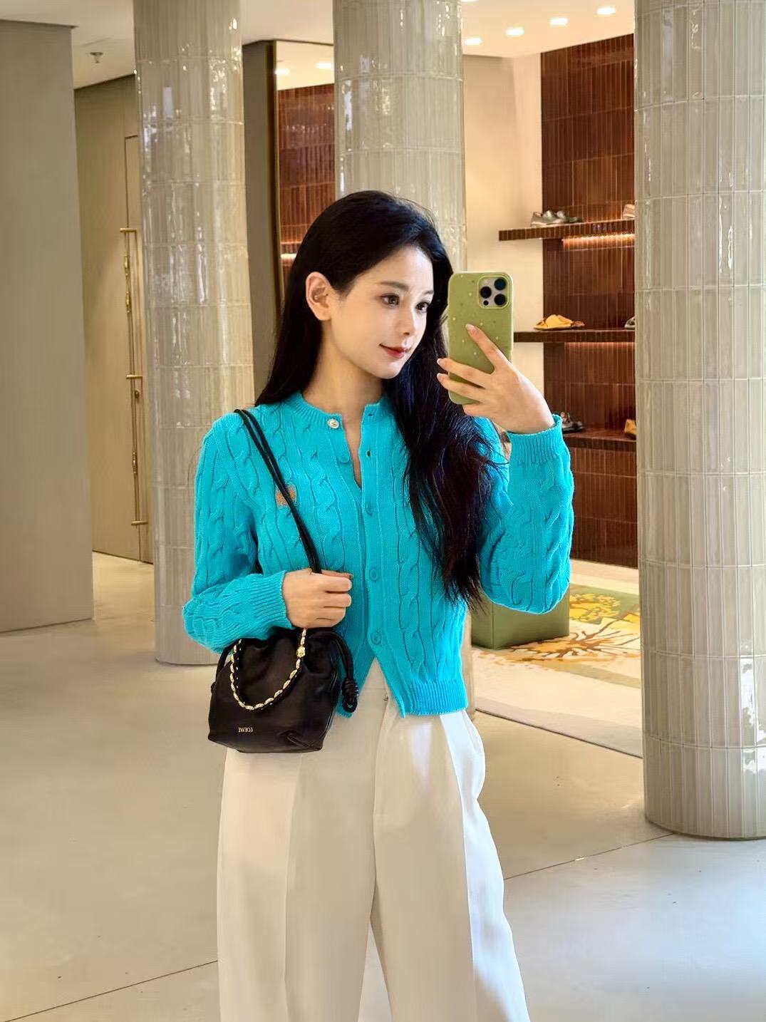 麻花紋理以精湛針織工藝呈現,立體感十足;胸前微標刺繡低調奢華,湖藍色調清新脫俗。