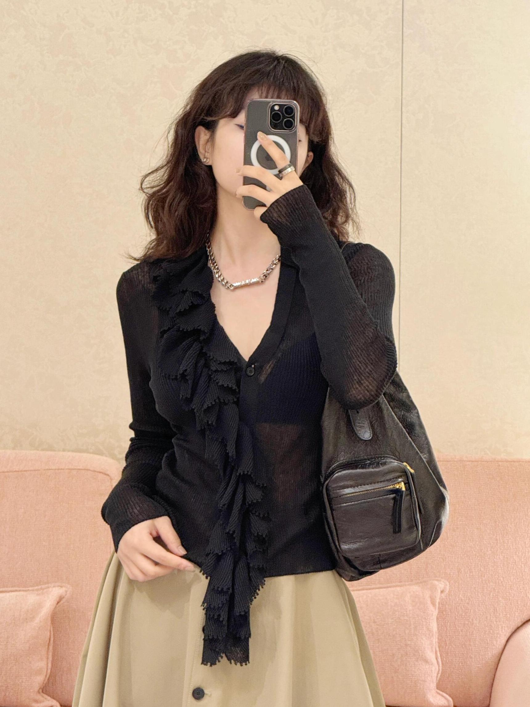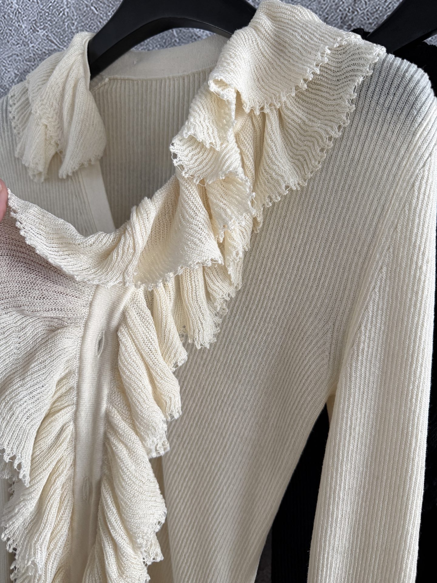 不論是工作日的通勤,還是週末的約會與聚會,這款褶邊領針織衫都能讓你輕鬆駕馭多種場合。