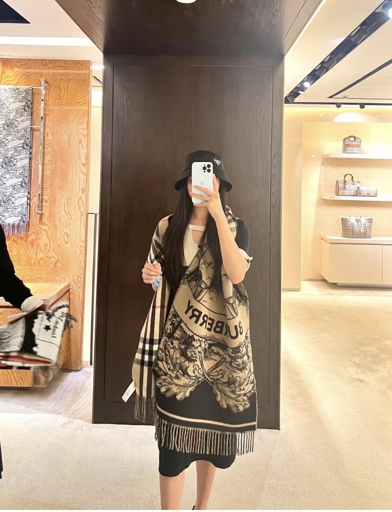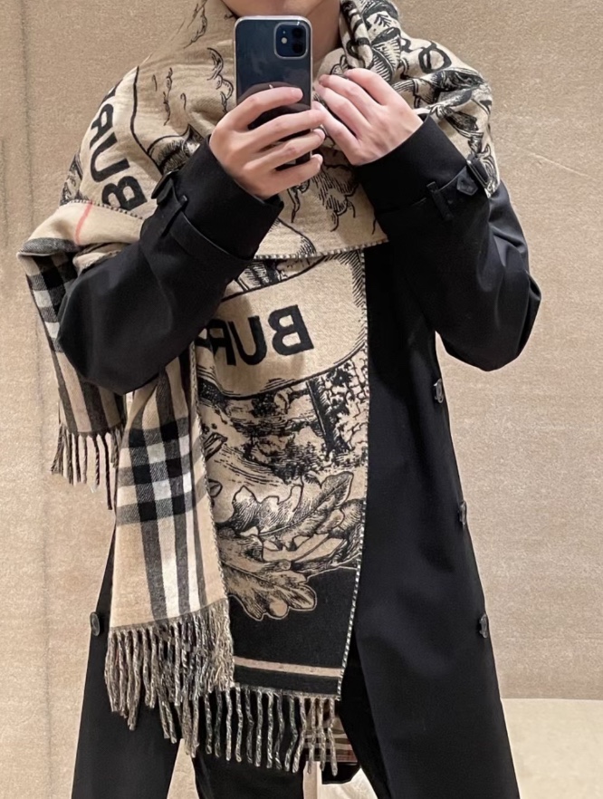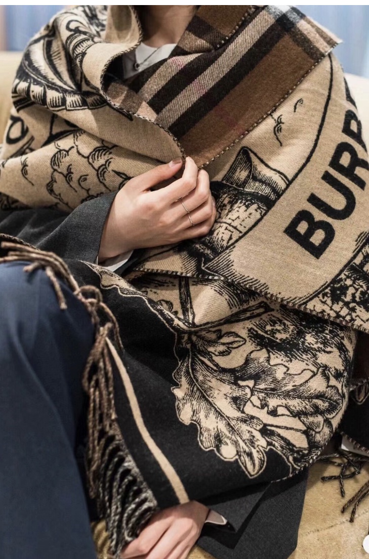 2025秋冬新品 BUR家 戰馬印花雙面羊絨圍巾