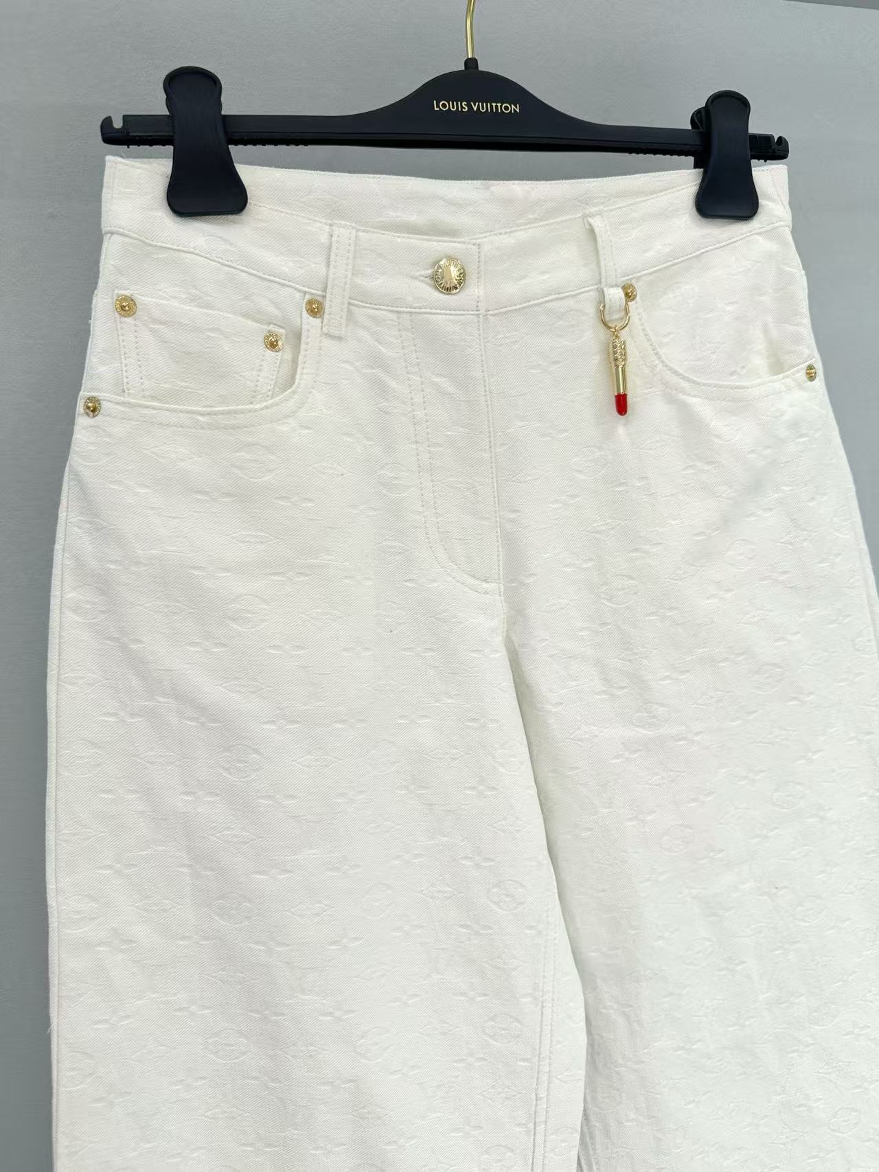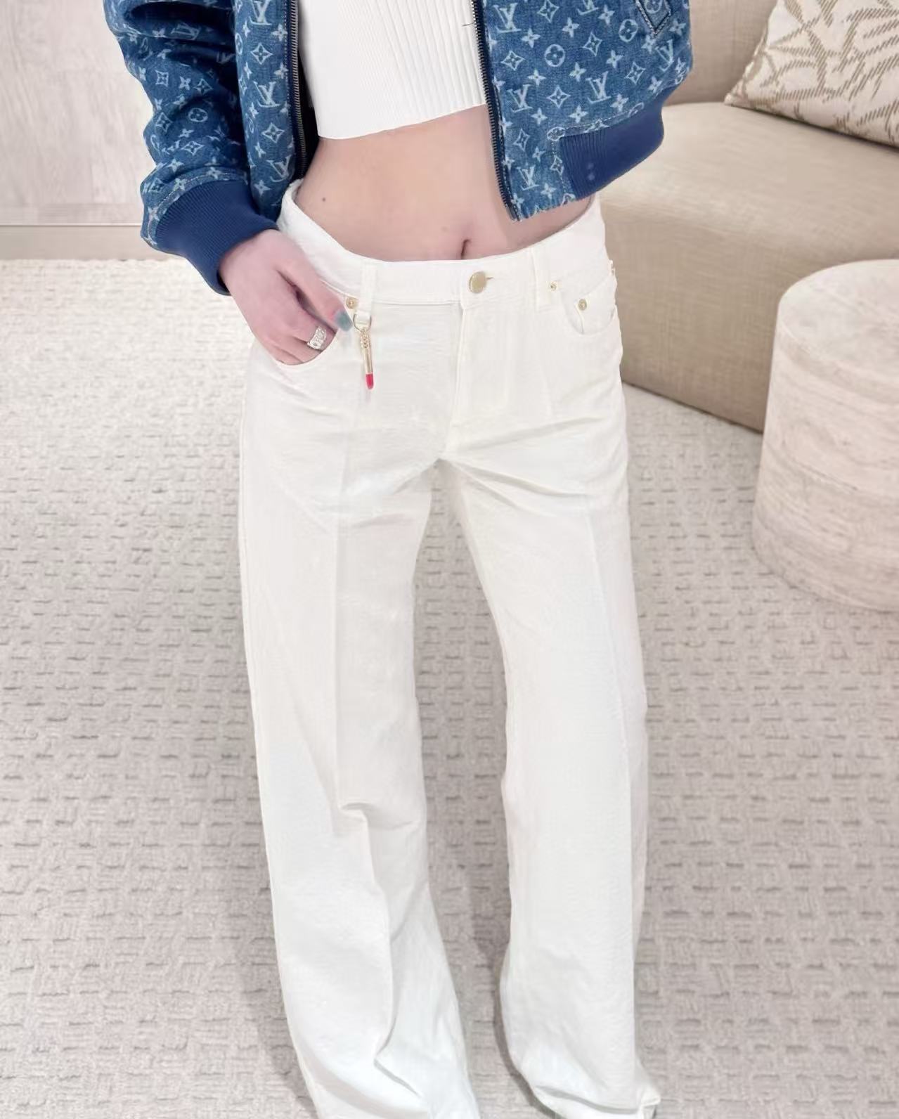 2025早秋 L家 白色滿版壓花牛仔褲,低調奢華的時尚單品!