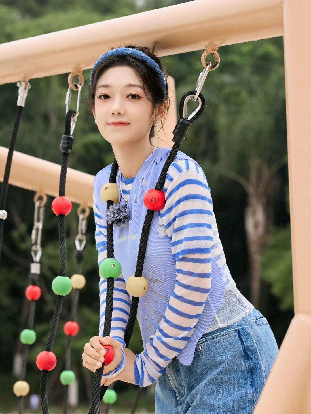 那種「不經意的時髦」,輕鬆就能擁有。清爽藍調搭配閃爍亮片,讓夏日造型更有活力,隨便搭都超有氣勢又不失可愛。