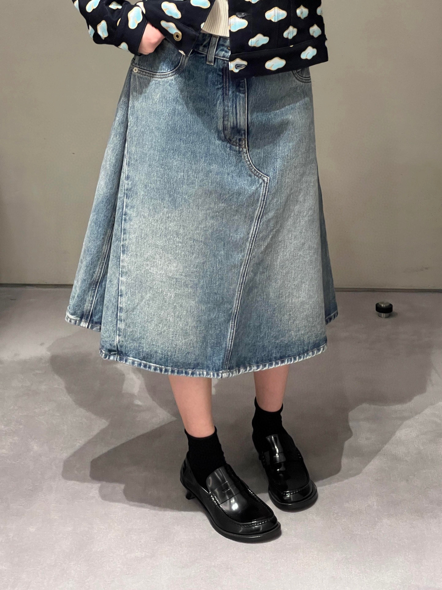 這款不規則牛仔半裙真的超有特色!水洗復古色調加上獨特的版型設計,完全讓人一眼就愛上。