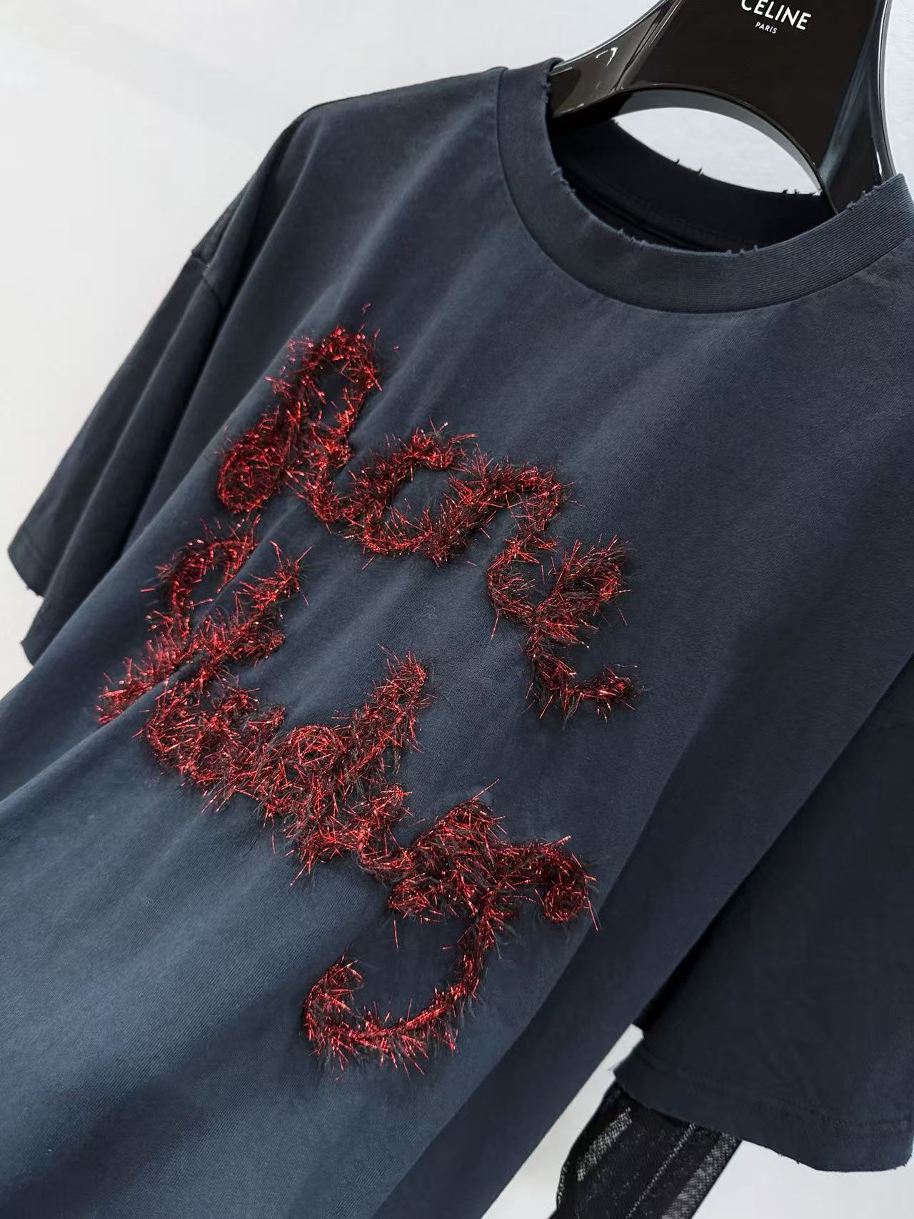 破碎感金屬 Logo 胸前的「ACNE STUDIOS」字母以特別材質製作,營造出略帶破碎感金屬光澤,瞬間吸引目光,彰顯不羈態度。