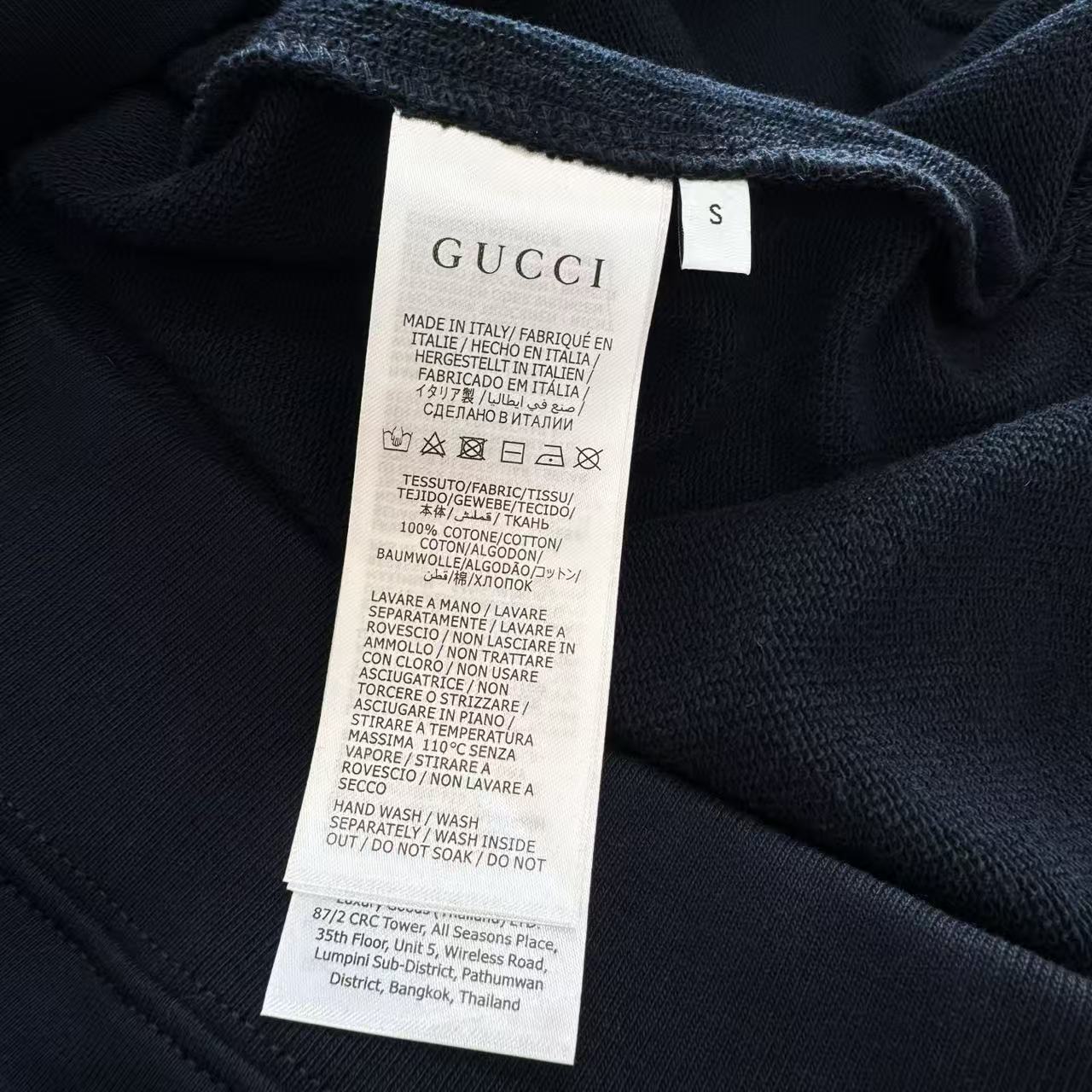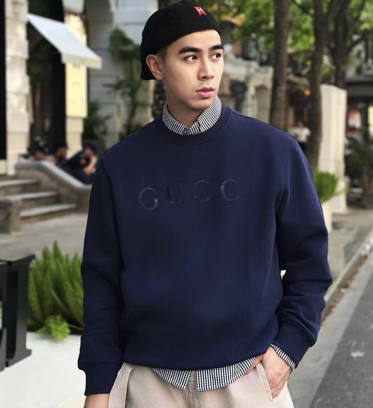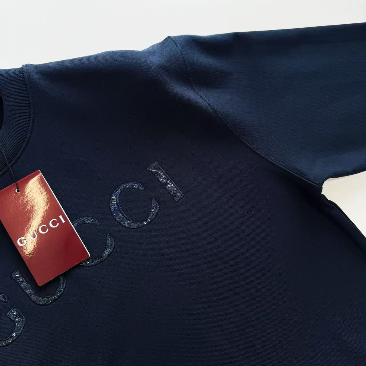 這件衛衣最最讓人心動的細節 就是胸前的 亮片Gc標誌刺繡。它不是一般的印花 而是採用了超級複雜的複合刺繡工藝 將微小的閃片和繡線完美結合。