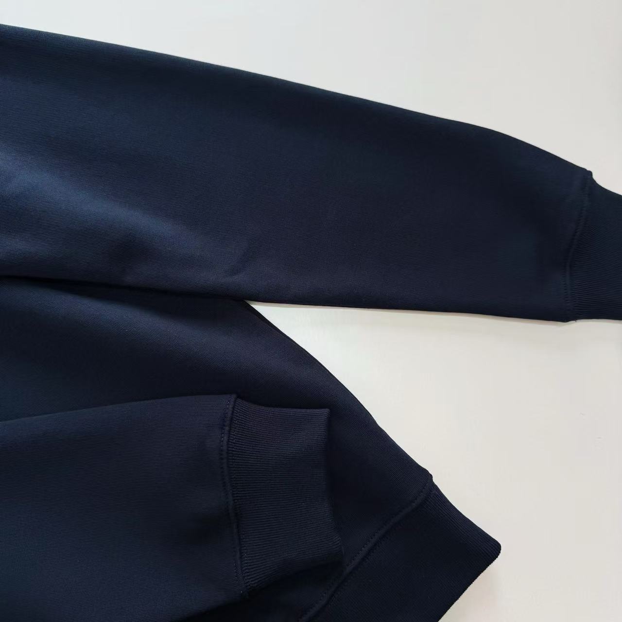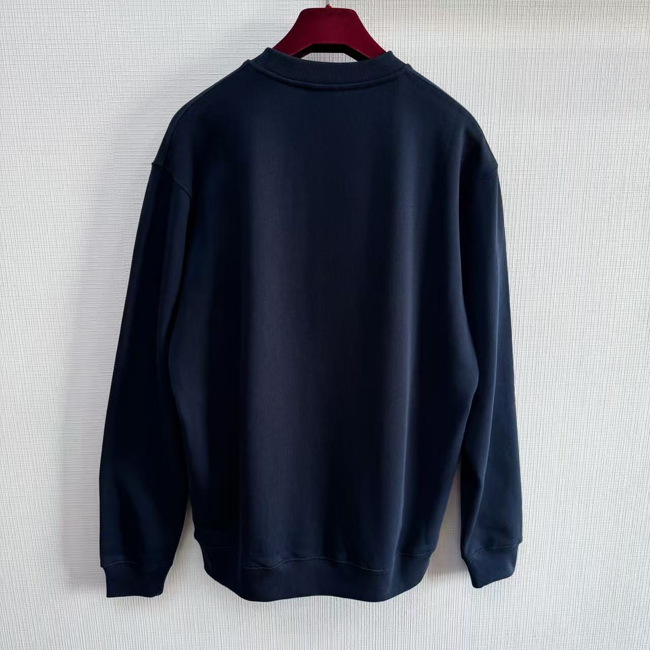 這款圓領衛衣採用了 380g重磅海軍藍針織棉衛衣材料。