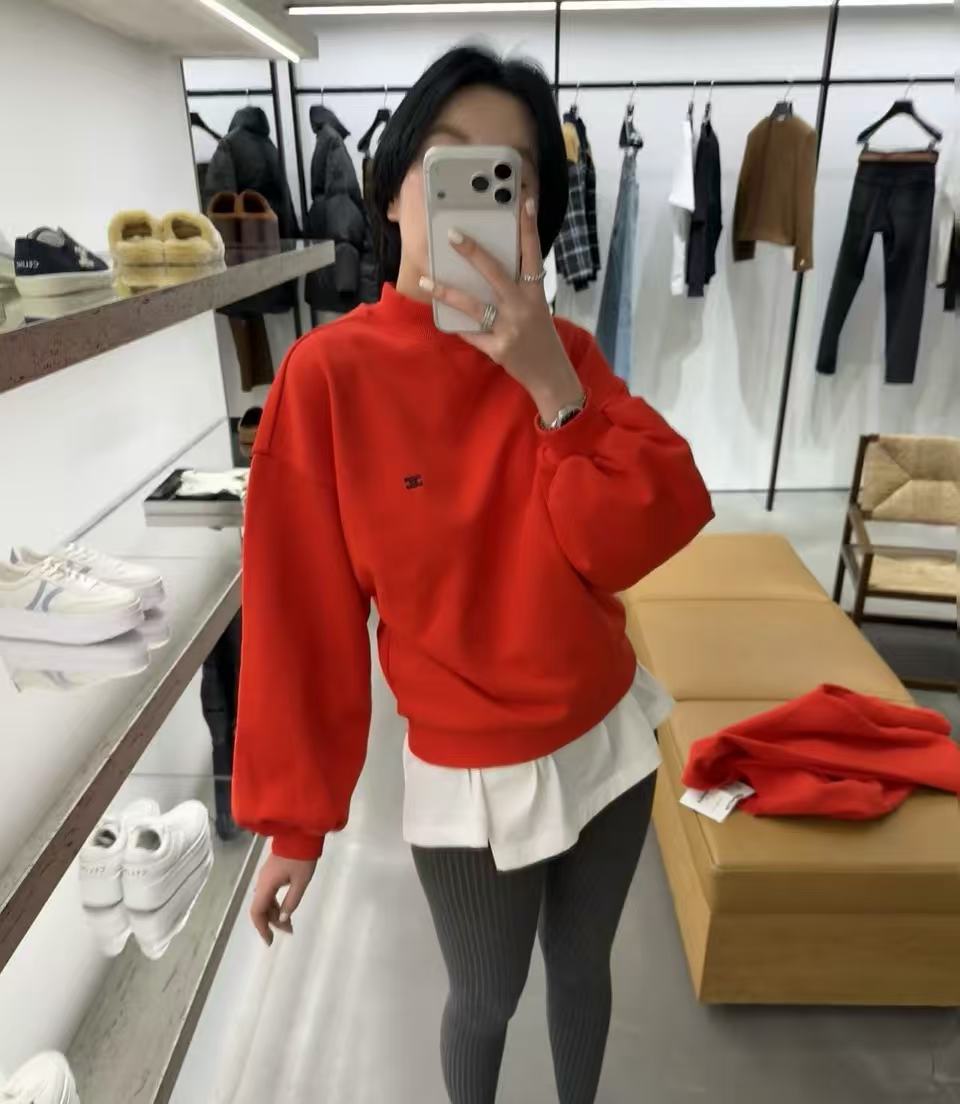 2026早春 CE家 凱旋門刺繡立領紅色衛衣