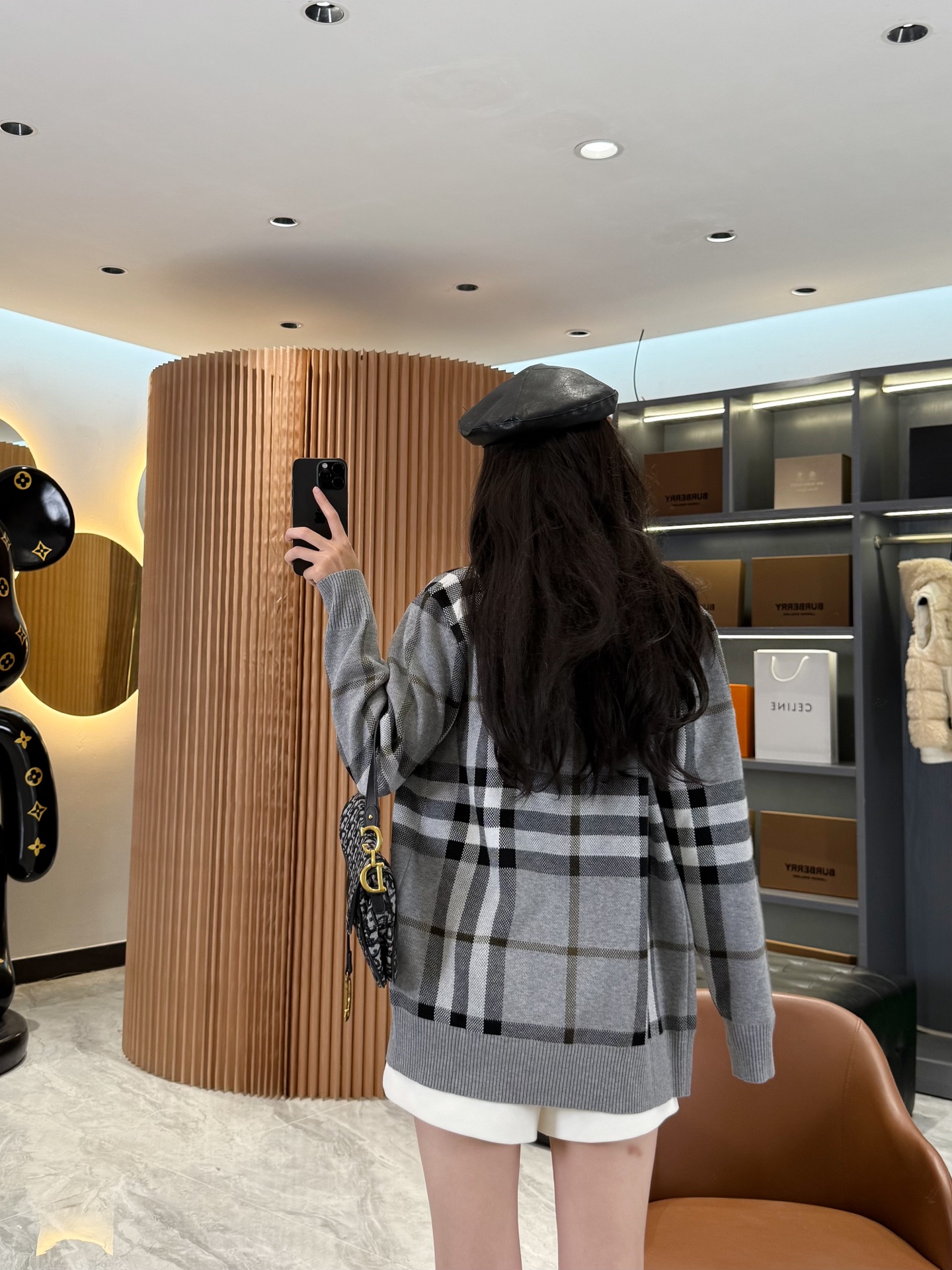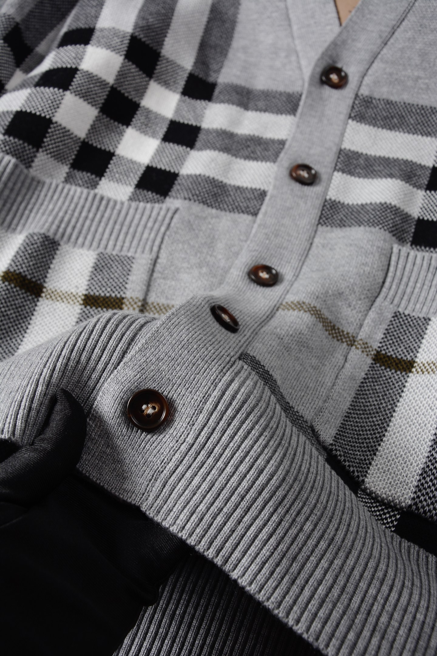 2025秋冬新品 BUR家 灰色格紋羊毛混紡提花開衫