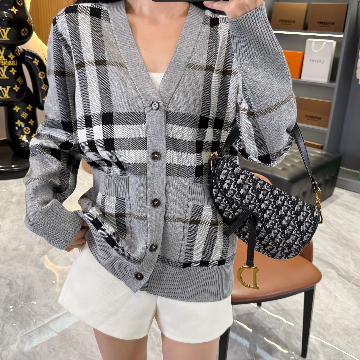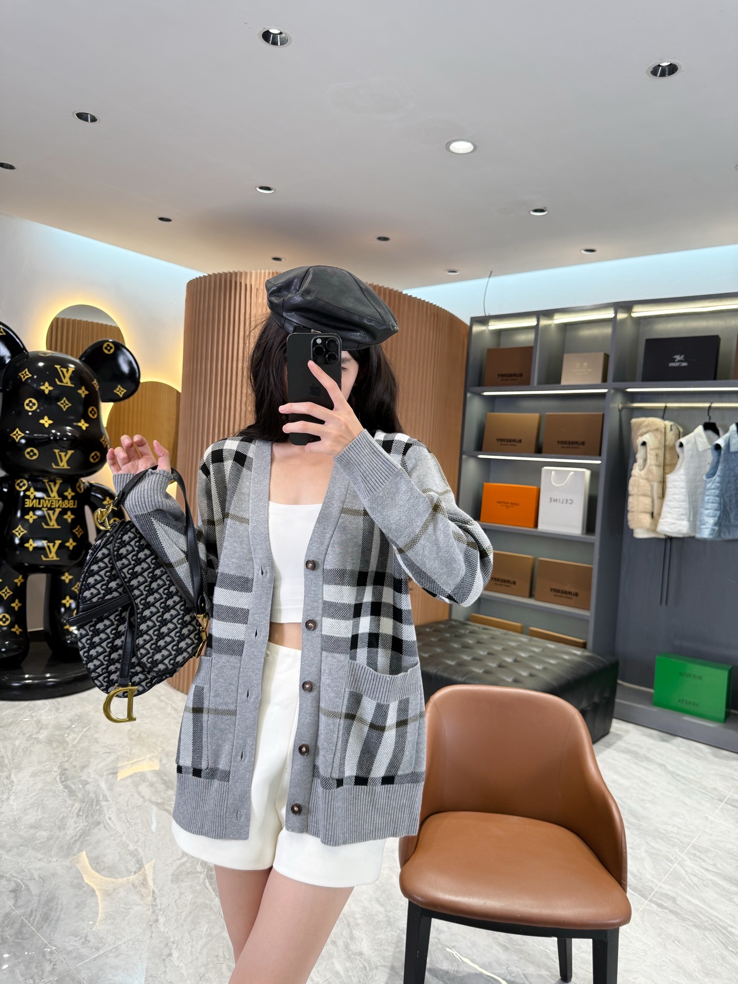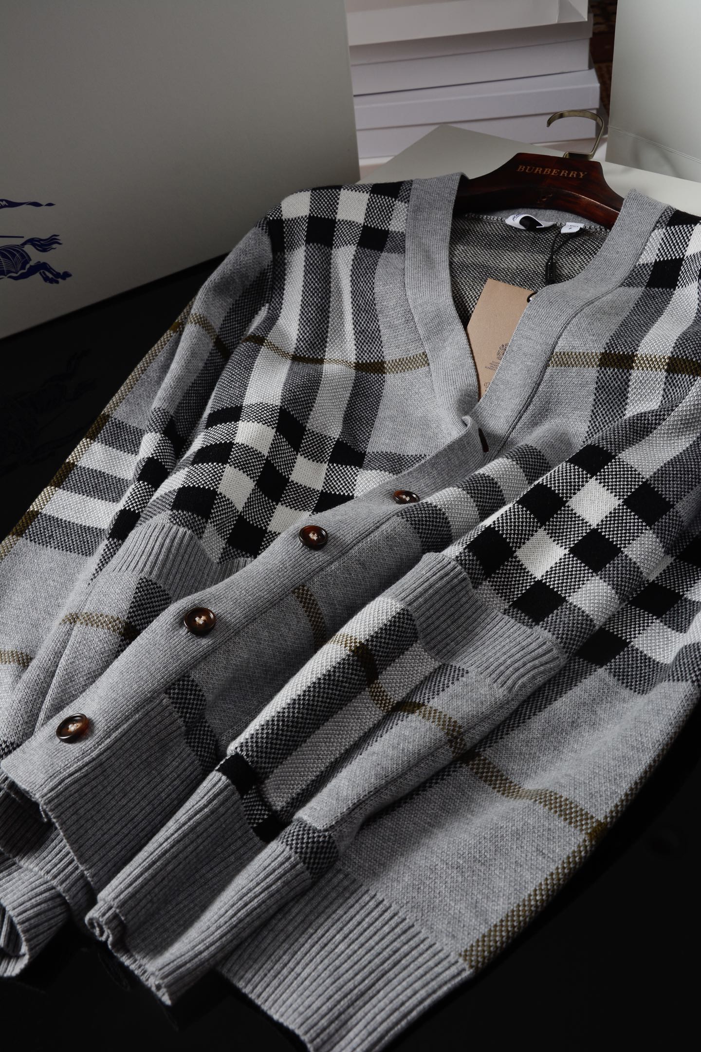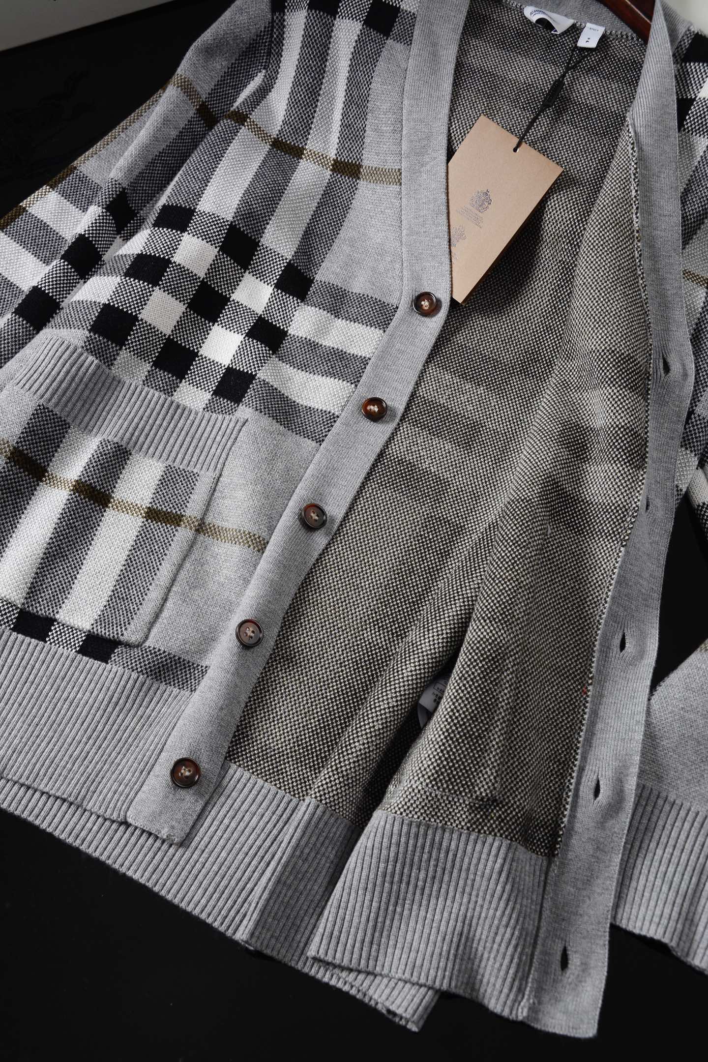 這件灰色格紋羊毛混紡提花開衫,完美體現了 BUR 一貫的經典理念,把格紋與時尚緊密結合。