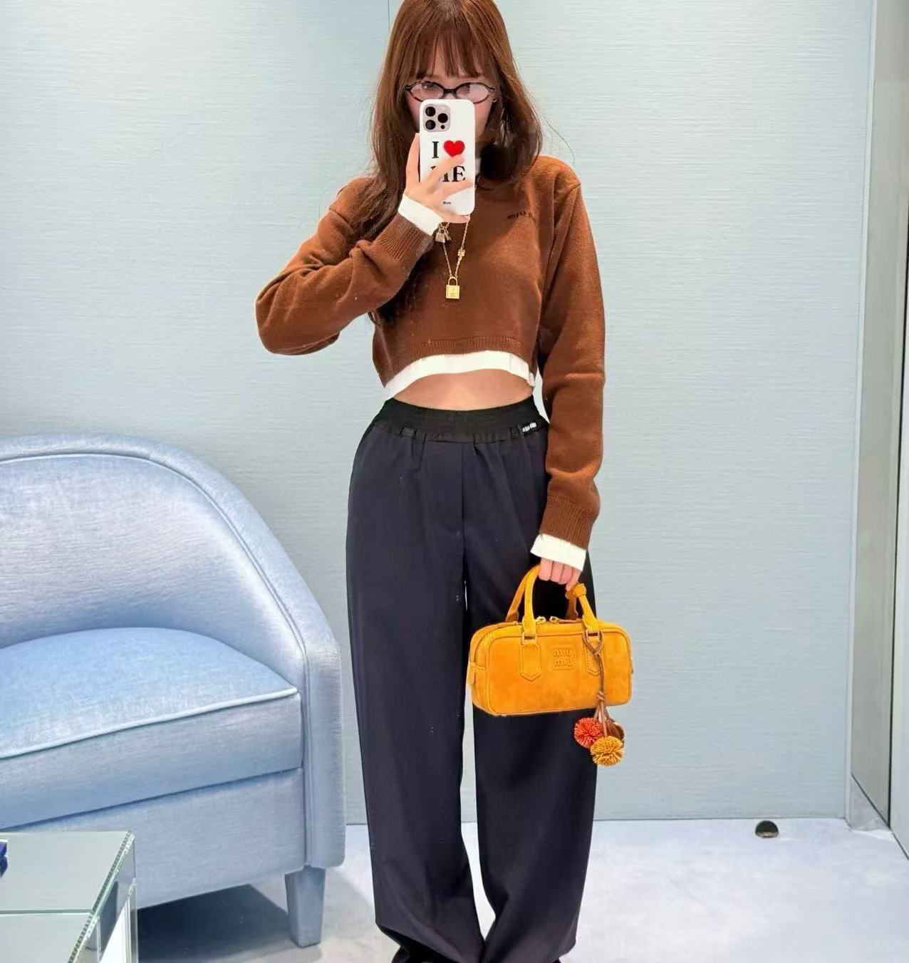 褲子上的微標設計低調精緻,完美體現Miu 的品牌標識,增添辨識度而不顯誇張。腰部的運動風細節,