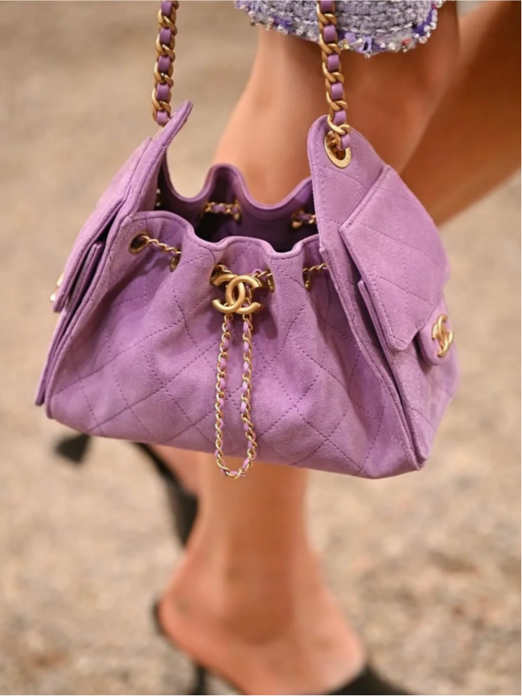 採用高質感麂皮材質,觸感細膩柔軟,視覺上自帶溫潤光澤。麂皮讓包款多了一份慵懶與高級感,也更能呼應早春與春夏季節的輕盈氛圍。