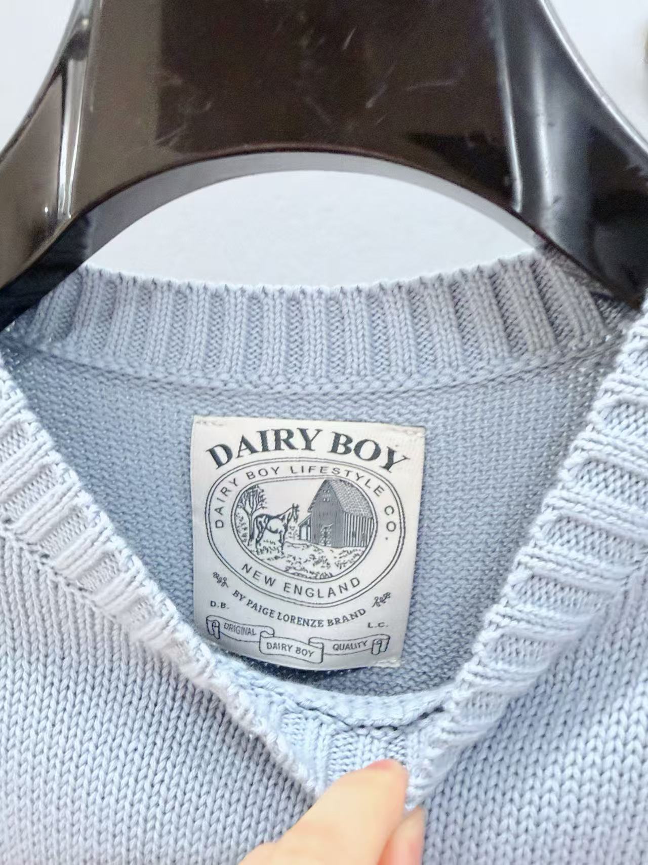 這件毛衣真的很特別!顏色像被海鹽輕輕柔化的松綠,或像海洋浸染的藍色,低調卻充滿詩意。