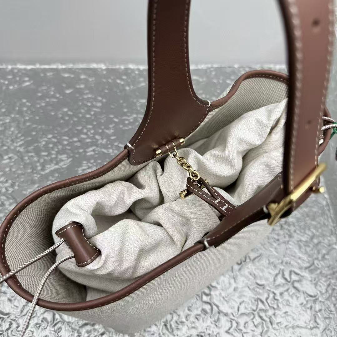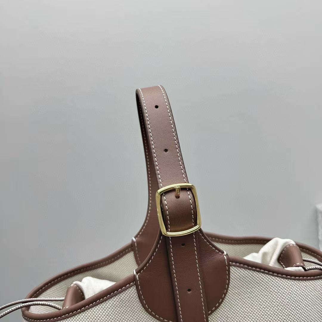 包身採用高質感帆布製成,質地挺括卻不厚重;手柄部分選用細緻皮革打造,並可自由調節長度。