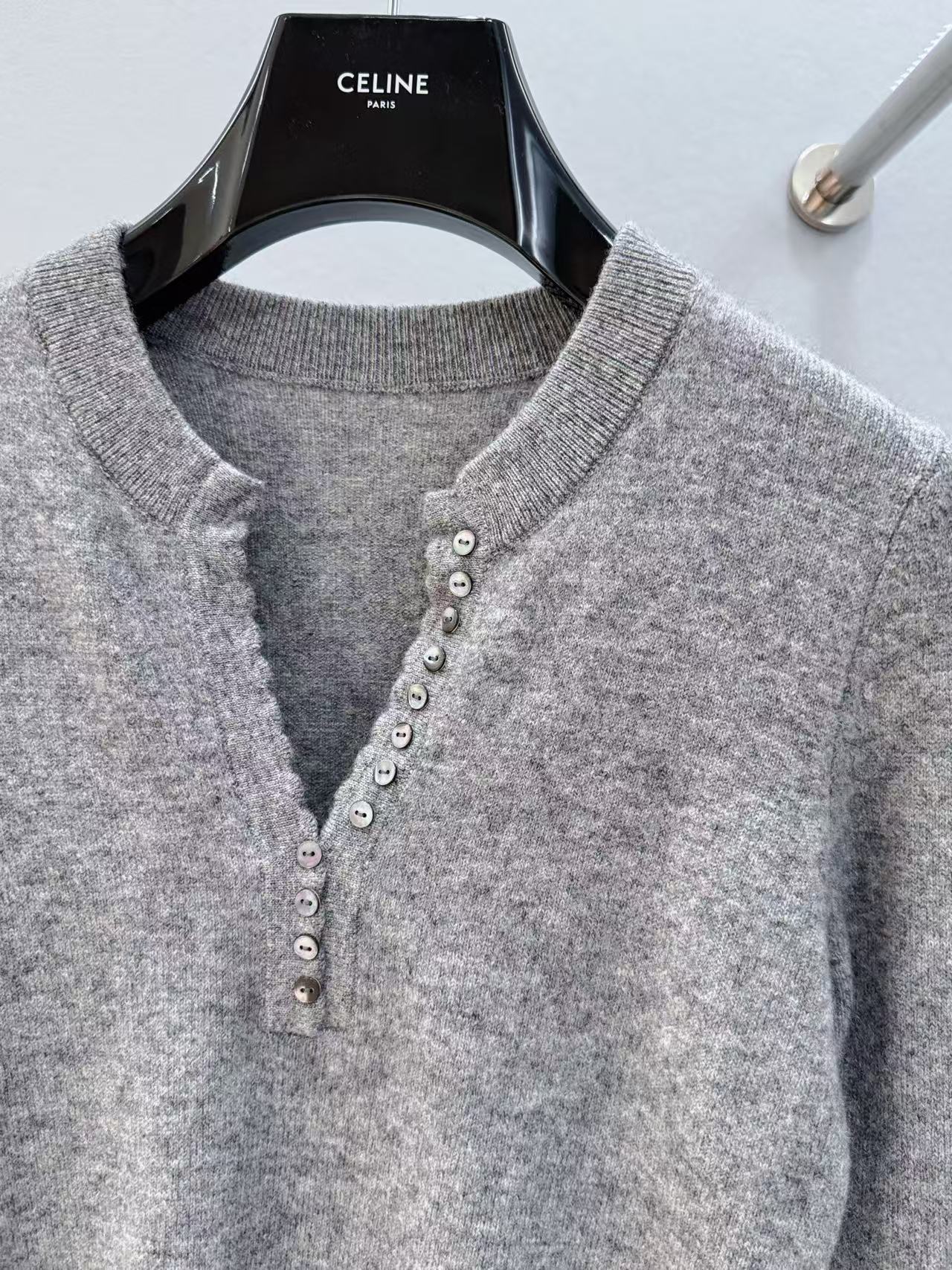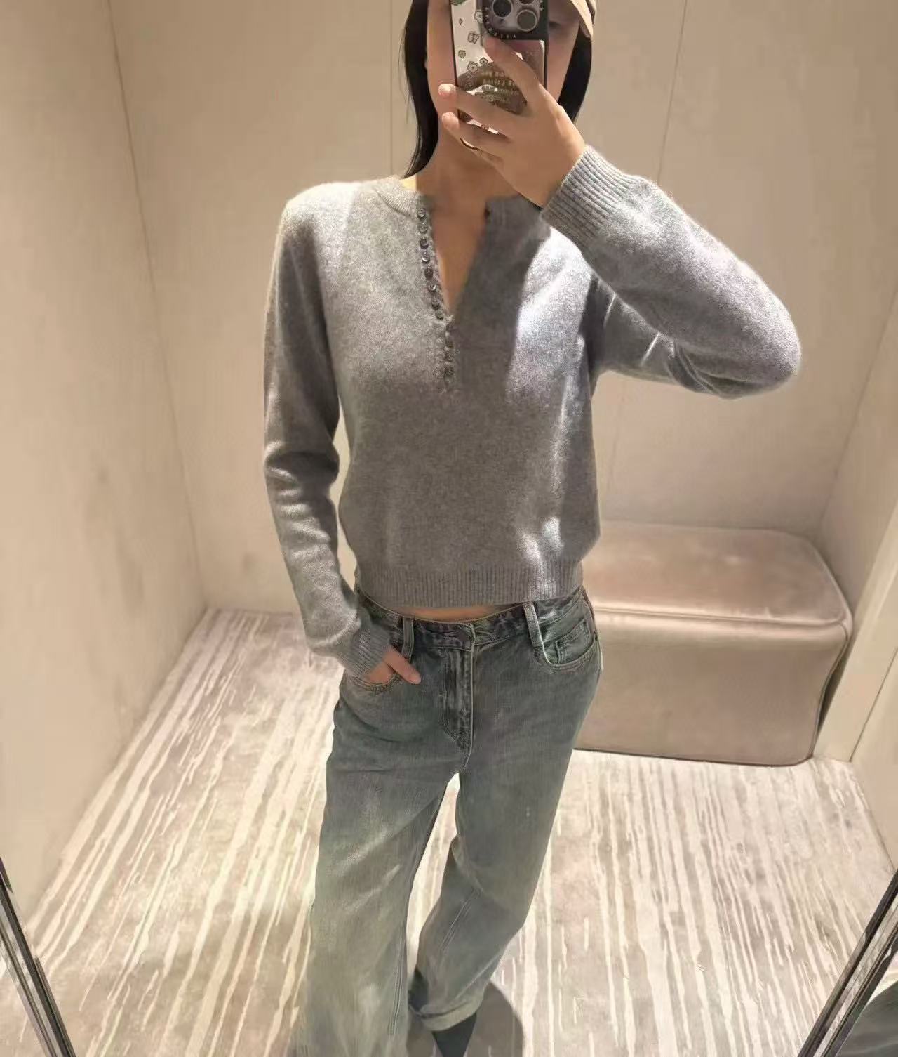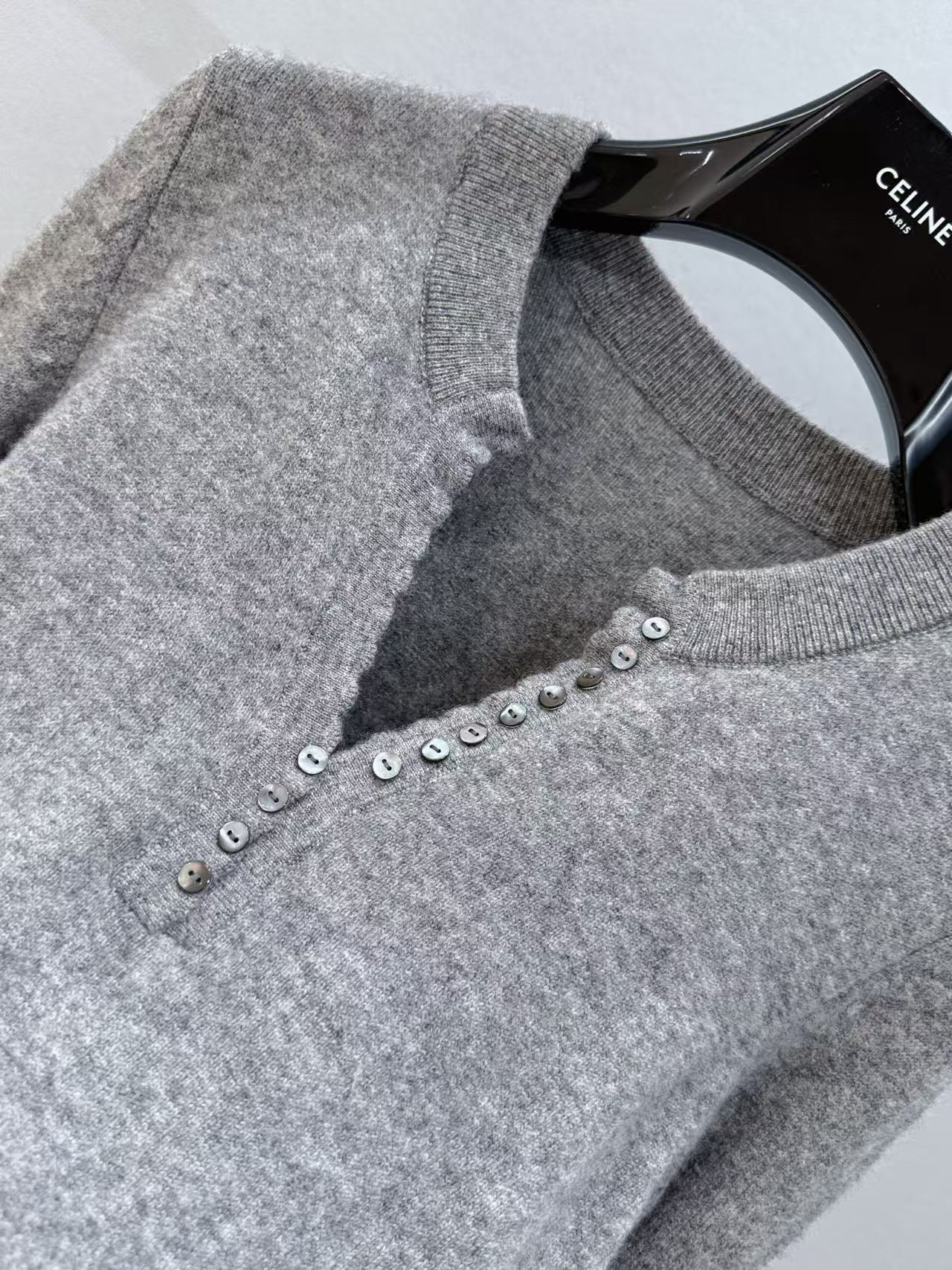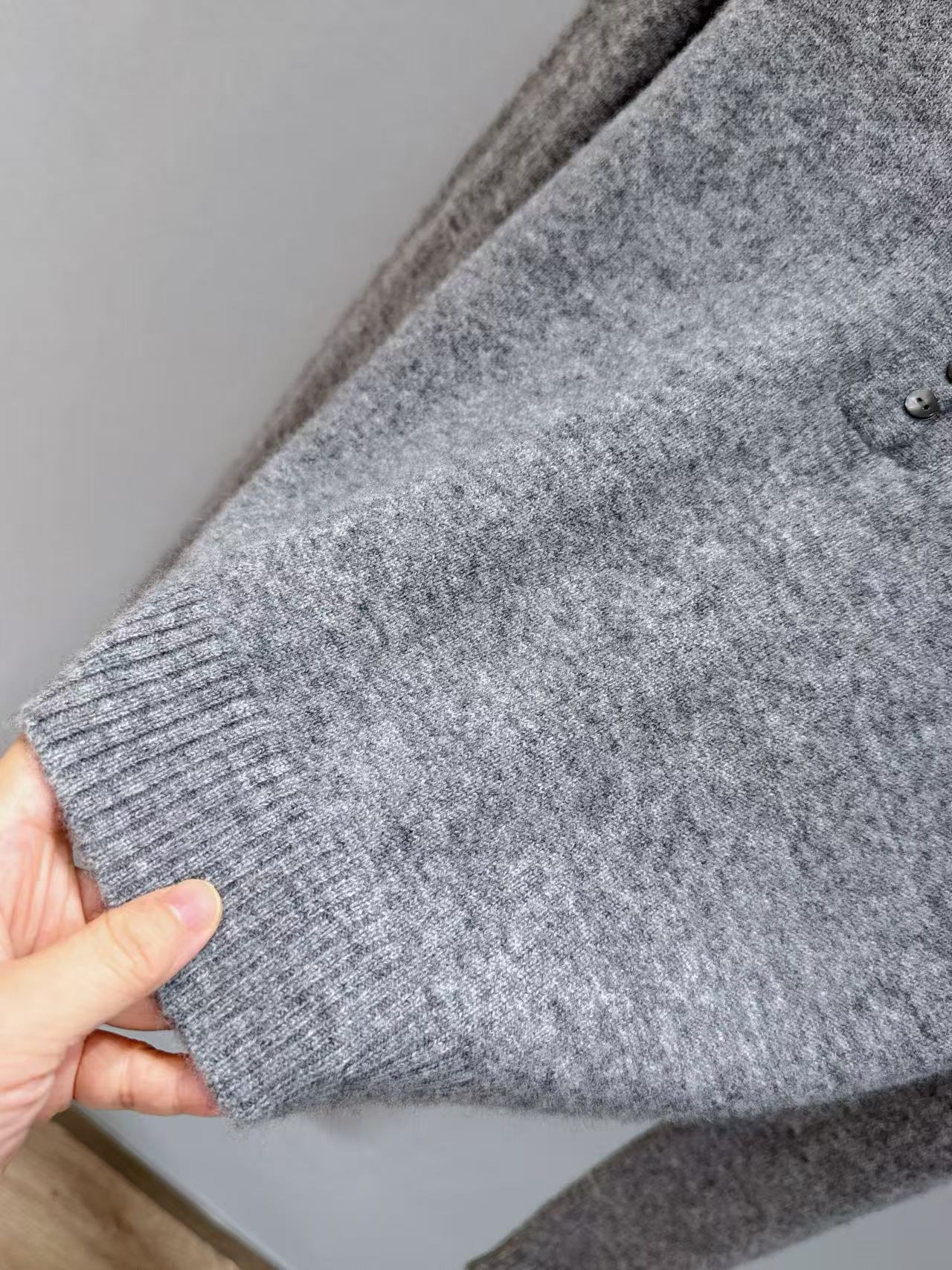 採用山羊絨混紡紗線,柔軟親膚、保暖輕盈。觸感滑順,兼具羊絨的細緻與毛衣的彈性,是秋冬日常穿搭的理想材質。