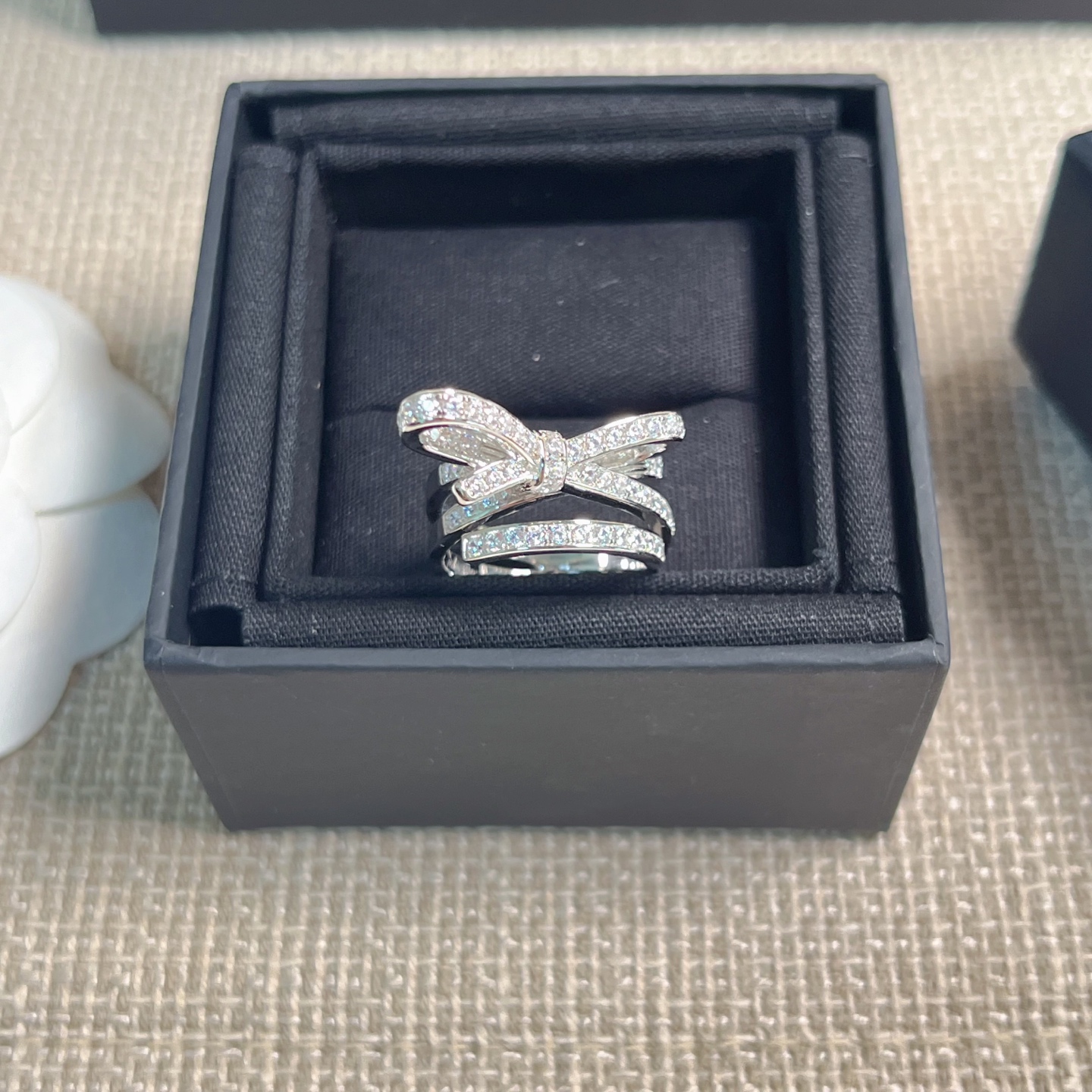 2025春夏新品 C家 風格滿鑽多層立體蝴蝶結戒指