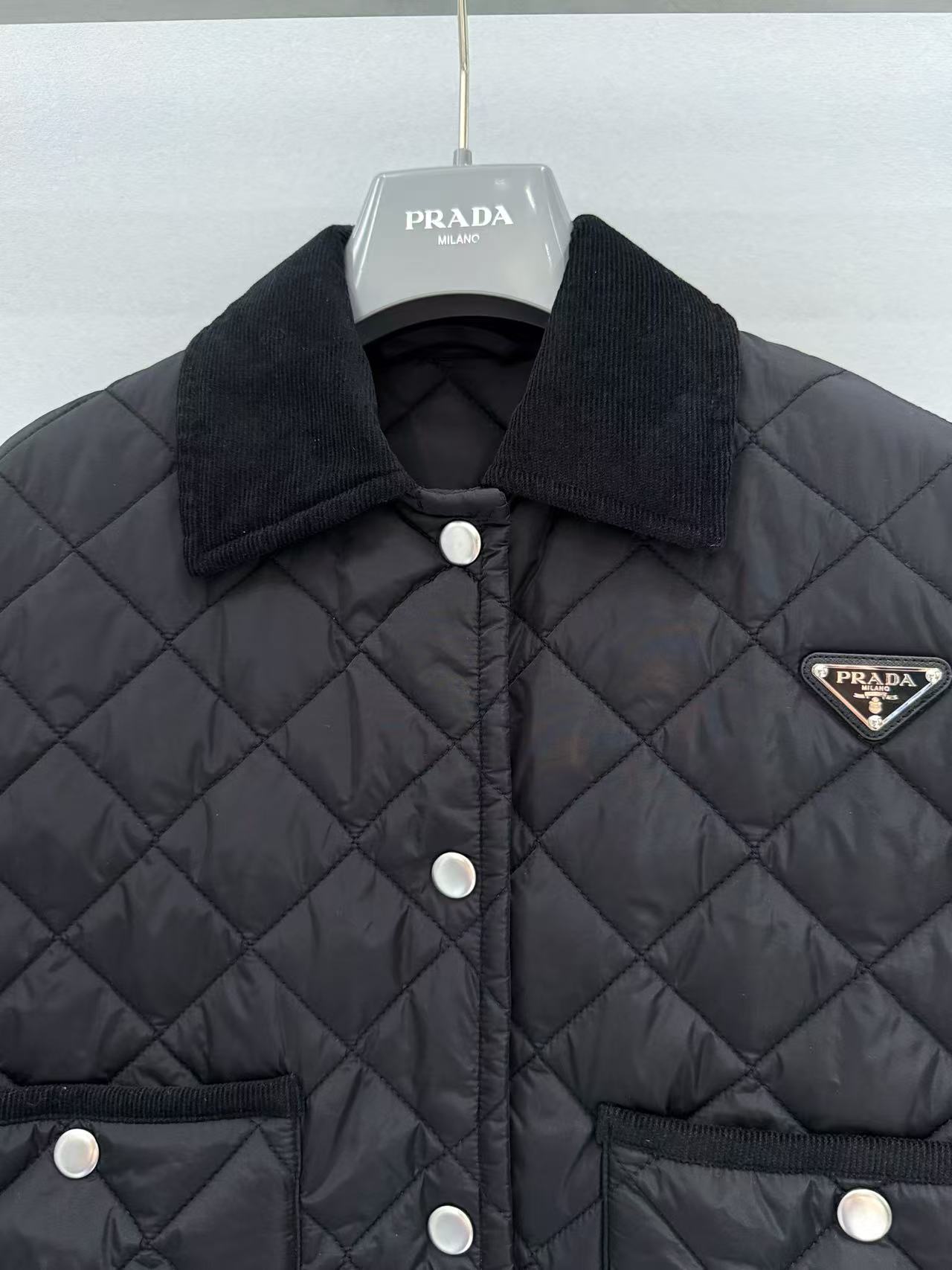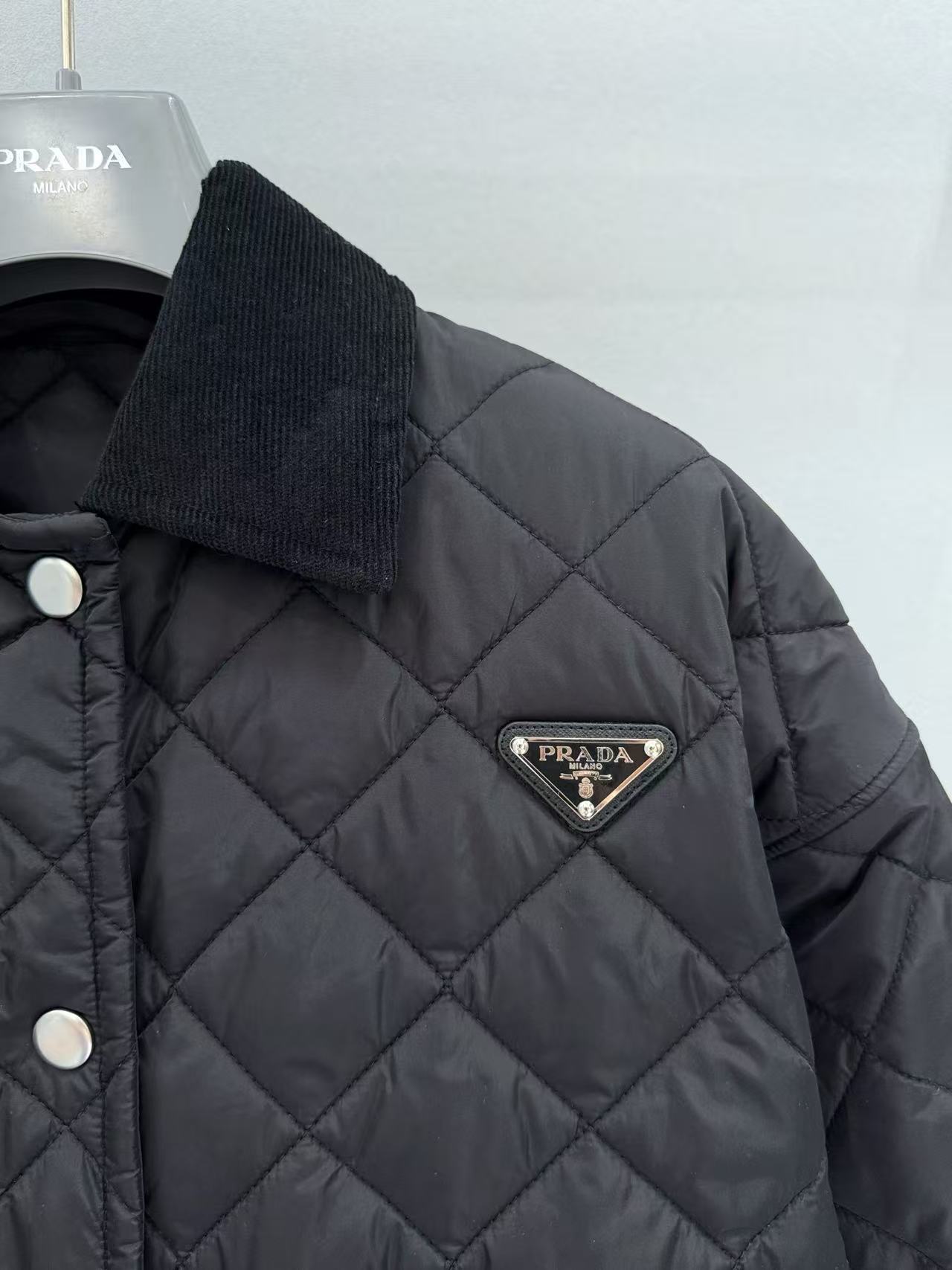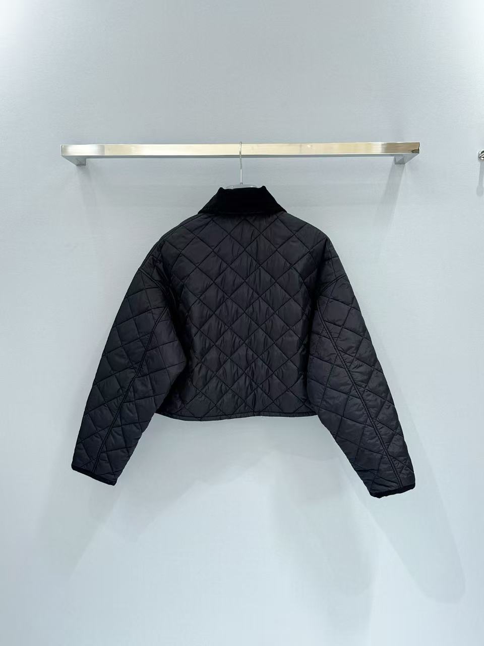 屬於輕薄型棉服,穿上身完全不會有厚重或臃腫感。經典高腰版型,長度剛好能拉長腿部比例,讓整體線條看起來更俐落。搭配燈芯絨翻領拼接,復古中帶點細節感。
