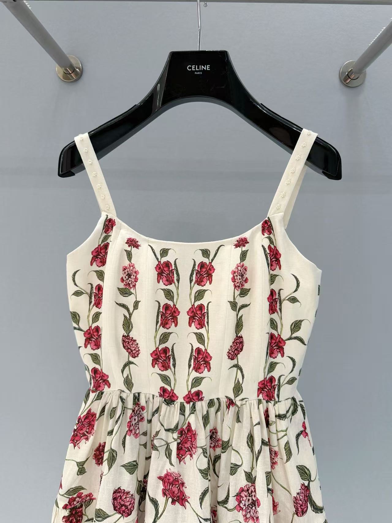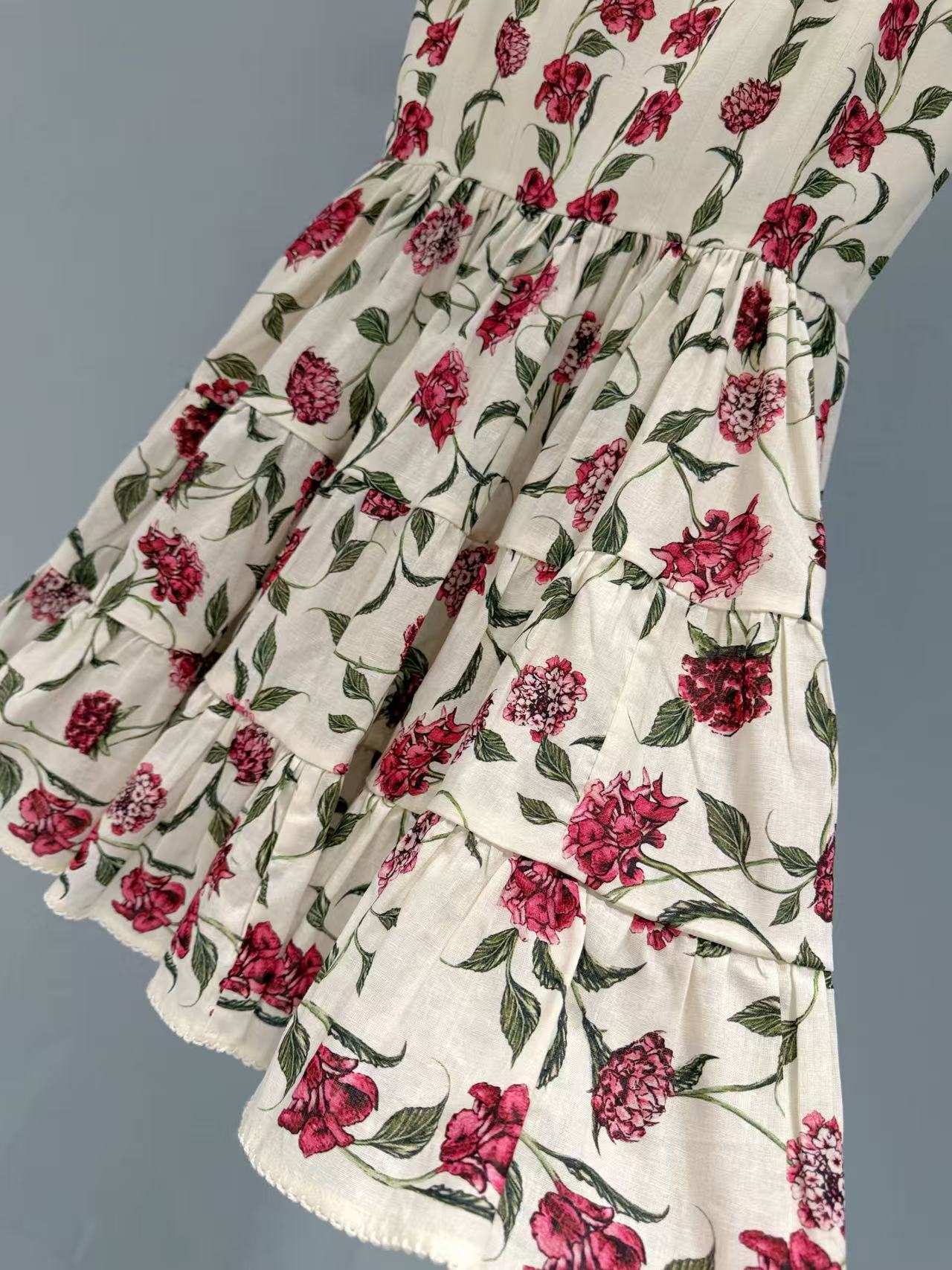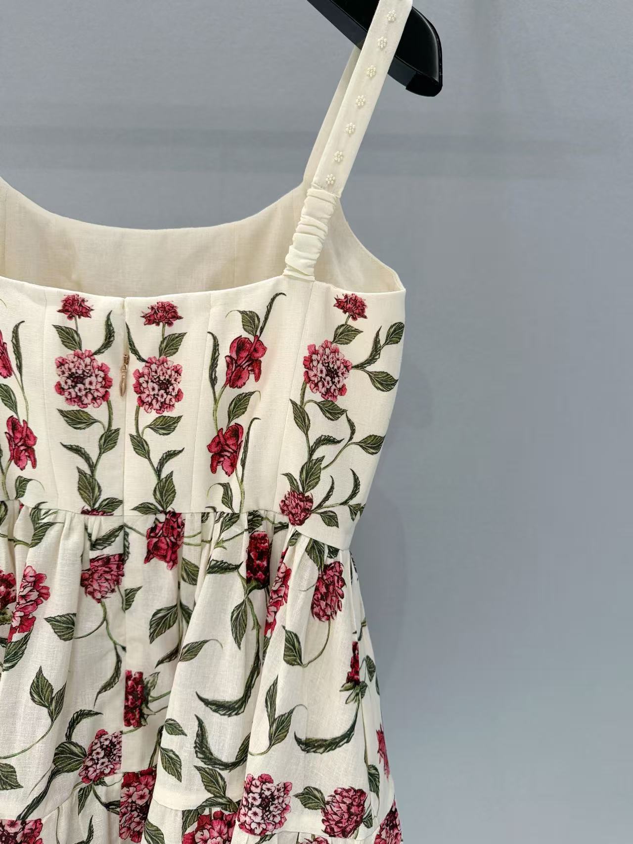 整件裙裝滿載南美風情的亞麻印花,方領設計優雅地修飾頸部線條,最精緻的莫過於肩膀上的釘珠點綴,讓視覺焦點瞬間提升。這款不僅是為了度假而生,更是為了打造女神般的迷人輪廓,穿上它就像把一整個春天的花園穿在身上,質感與仙氣並存。