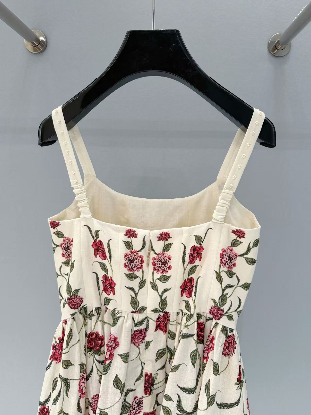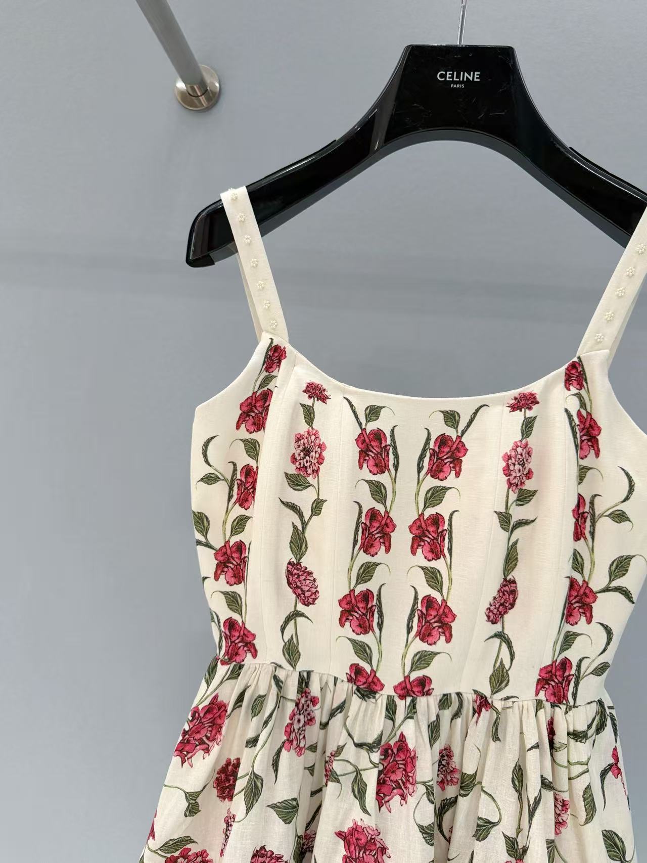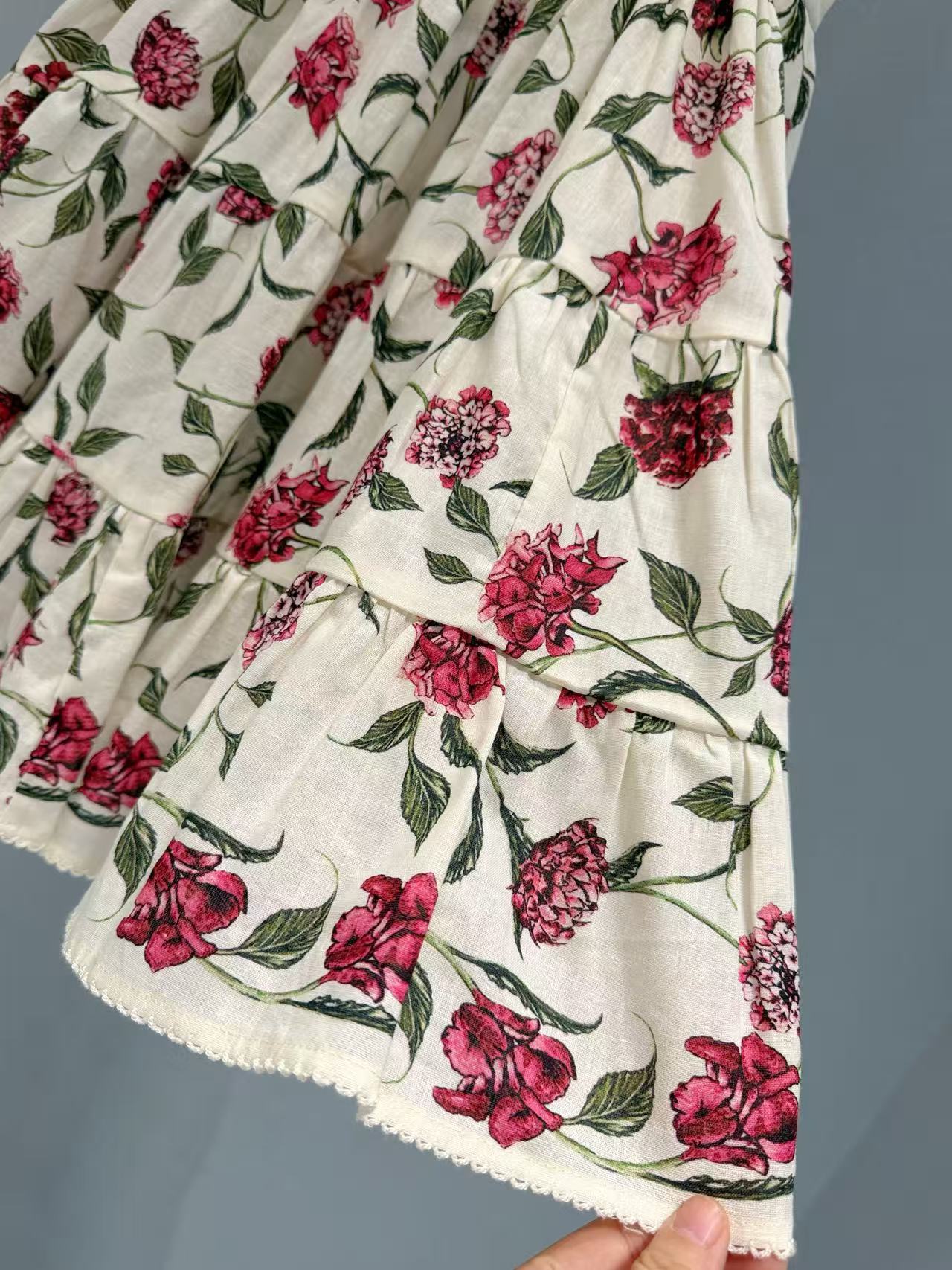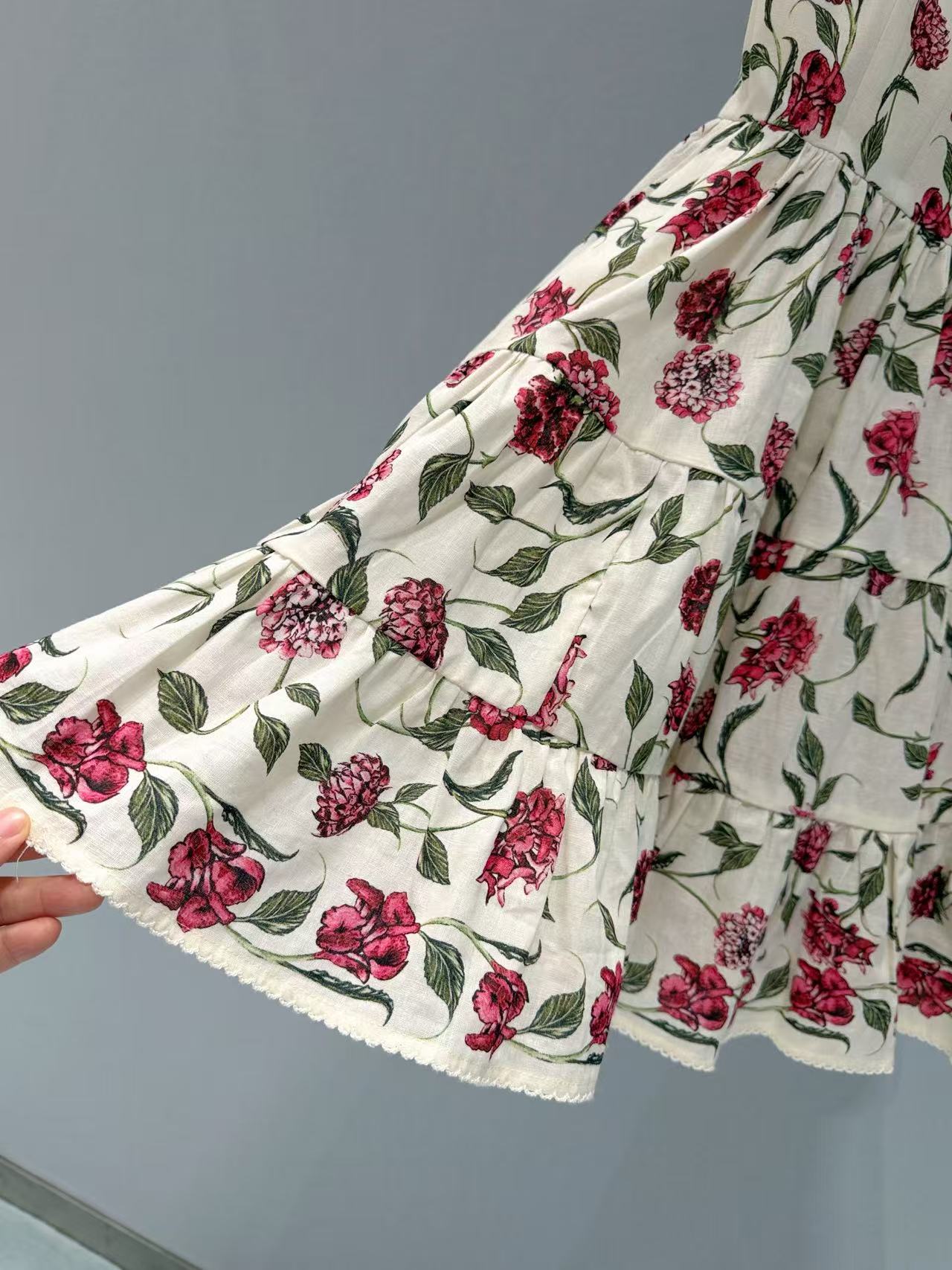 整件裙裝滿載南美風情的亞麻印花,方領設計優雅地修飾頸部線條,最精緻的莫過於肩膀上的釘珠點綴,讓視覺焦點瞬間提升。這款不僅是為了度假而生,更是為了打造女神般的迷人輪廓,穿上它就像把一整個春天的花園穿在身上,質感與仙氣並存。