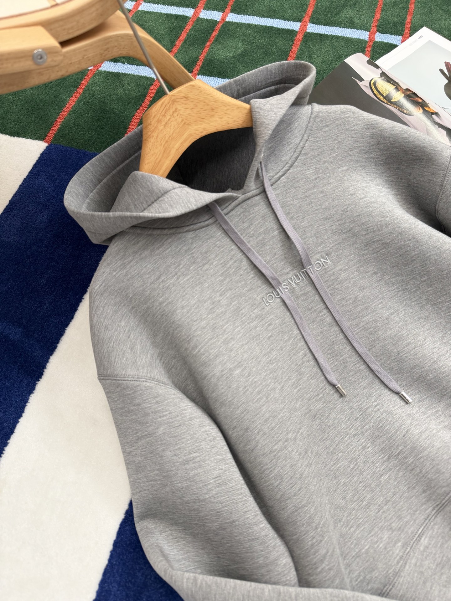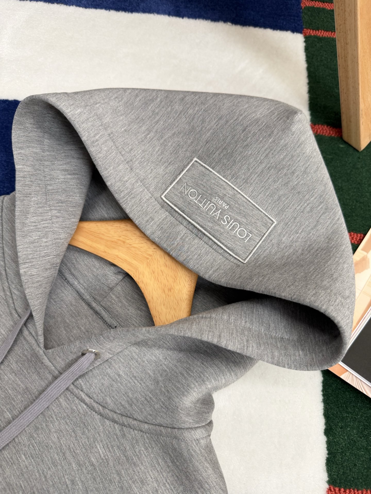胸前以同色系刺繡點綴,低調卻很有層次感,刺繡一路延伸到抽繩設計,視覺上自然拉出線條感,讓整件帽T看起來更有立體度。