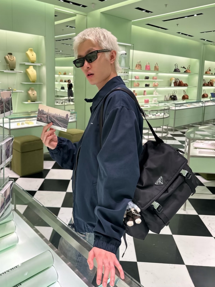 選用標誌性的再生尼龍,兼具輕盈與耐磨特性,非常適合日常高頻率使用。搭配細膩的皮革元素,讓整體質感更顯高級,也呼應永續時尚的理念。