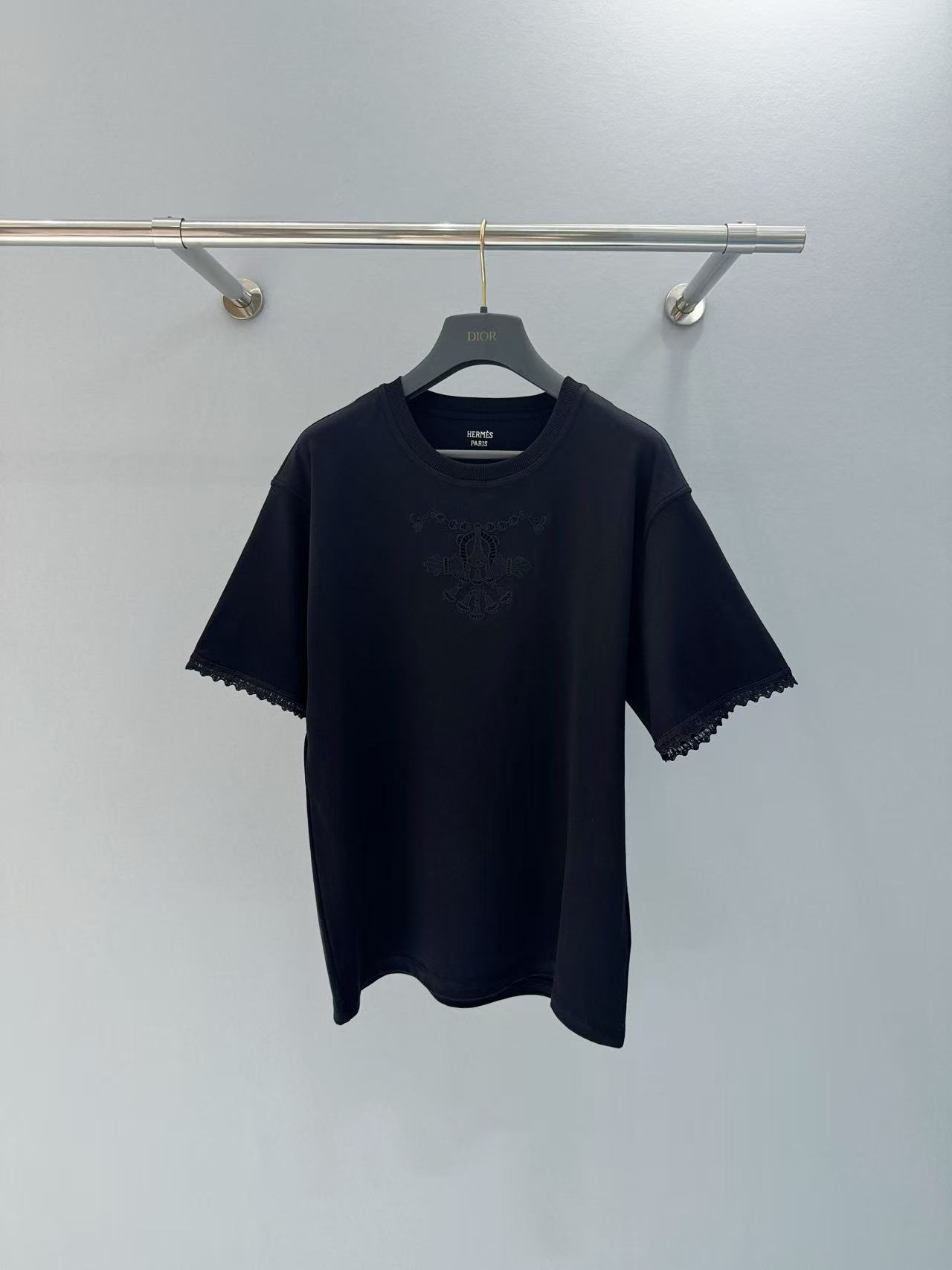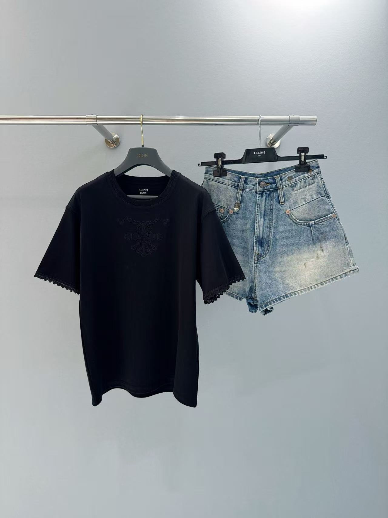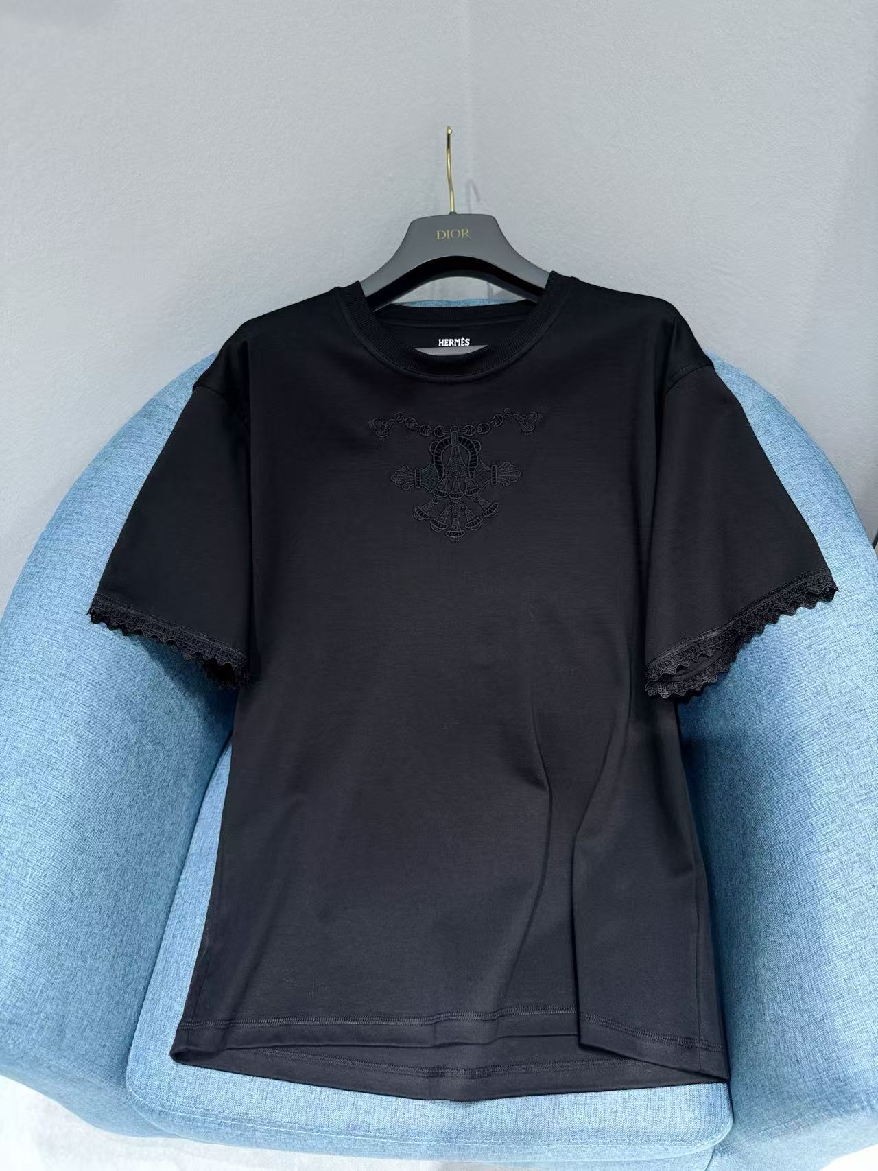 2025春夏 H家 刺繡蕾絲拼接短袖
