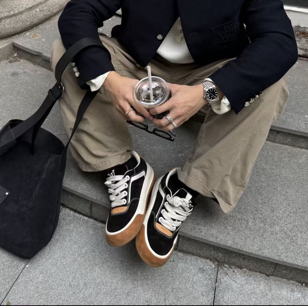 寬幅比例視覺: 透過加寬織物鞋帶與厚實大底,重現 Y2K 年代的滑板鞋輪廓,修飾腳型且份量感十足。